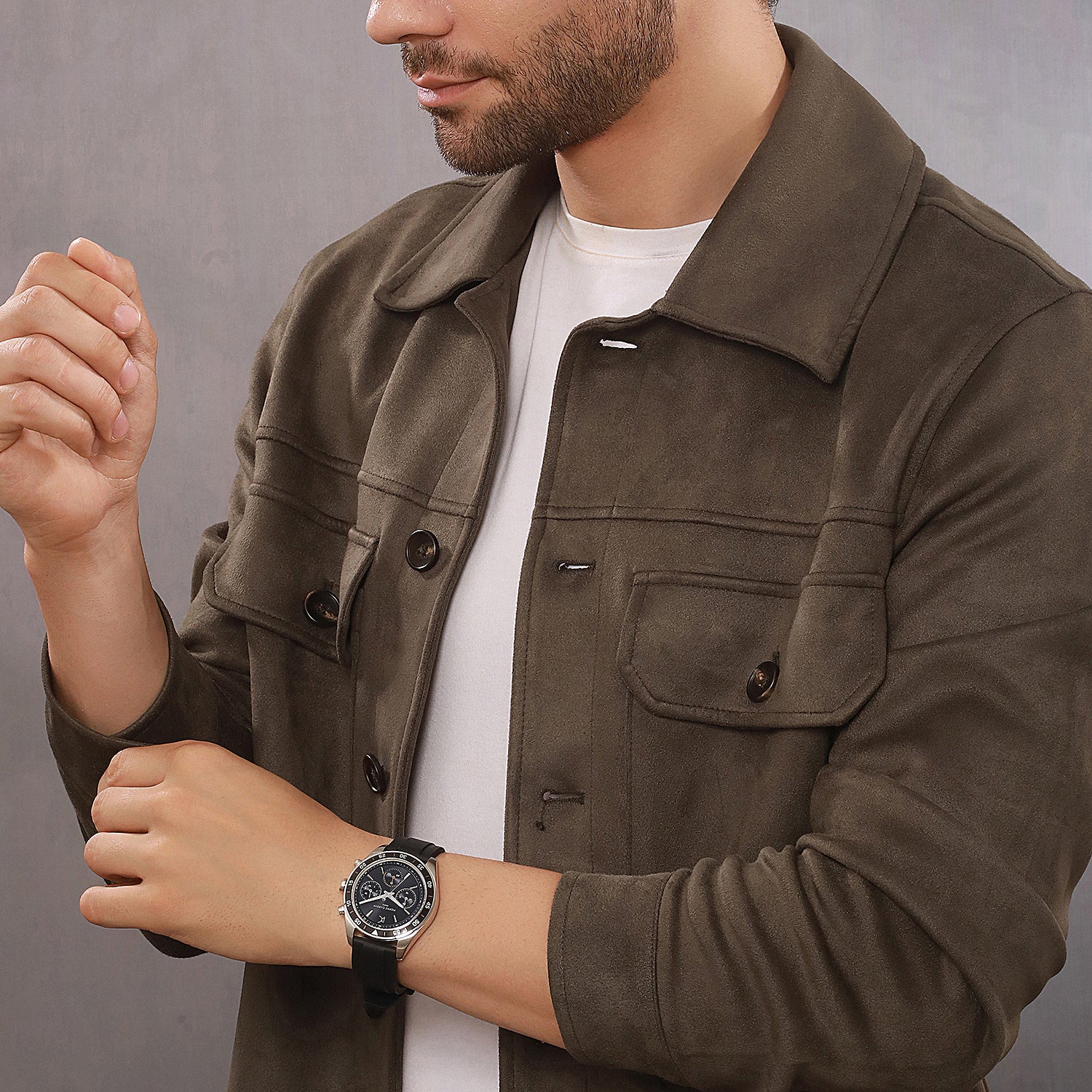 The Nation Cristal men’s watch is a perfect fusion of style and functionality, featuring a 42mm silver case, sleek black dial, and bold black bezel. Designed with a durable black silicone strap, this timepiece offers both comfort and versatility. Equipped with a multifunction movement, it includes day, date, and 24-hour sub-dials for added practicality. Ideal for the modern man, the Nation Cristal watch combines quality craftsmanship with a contemporary look, making it perfect for any occasion.