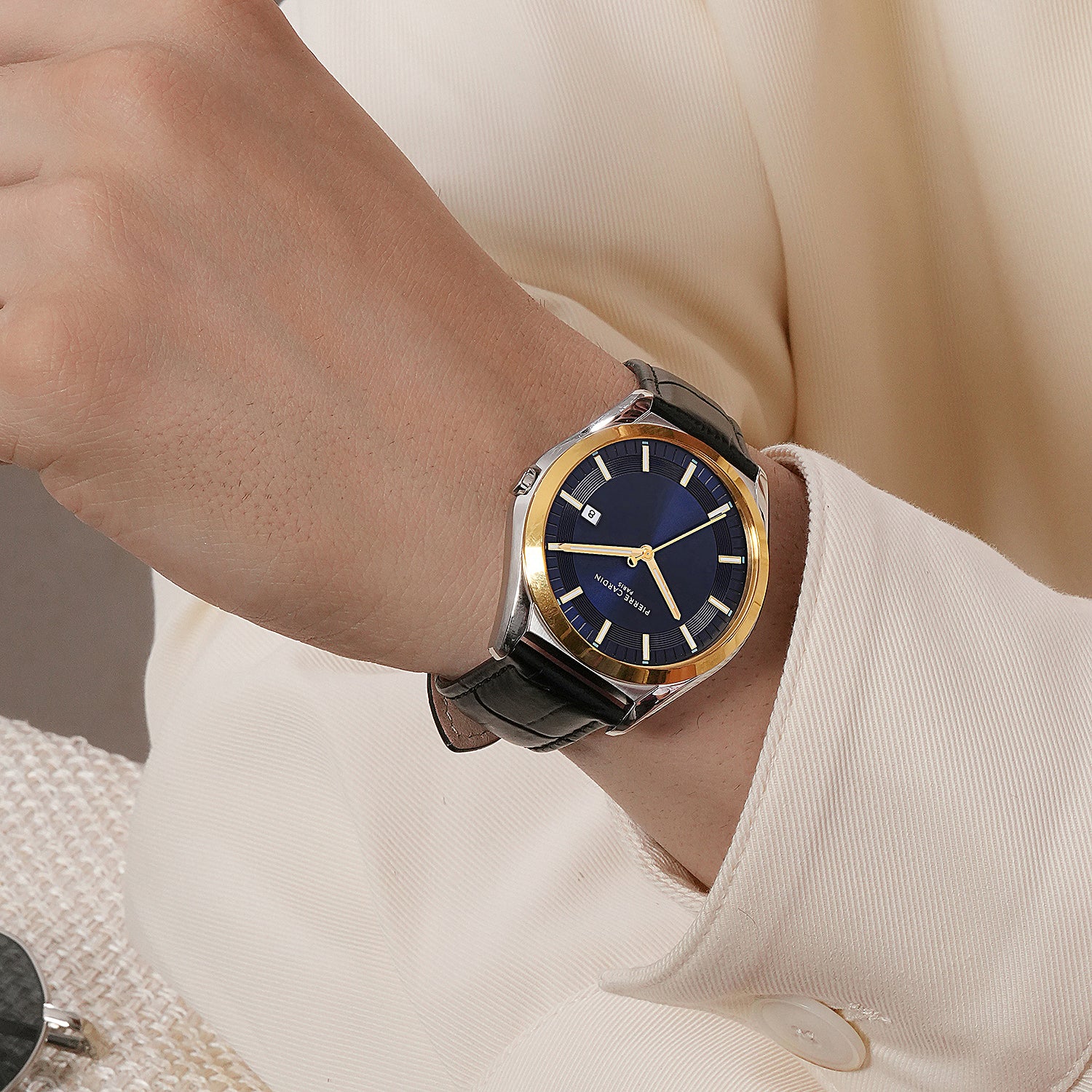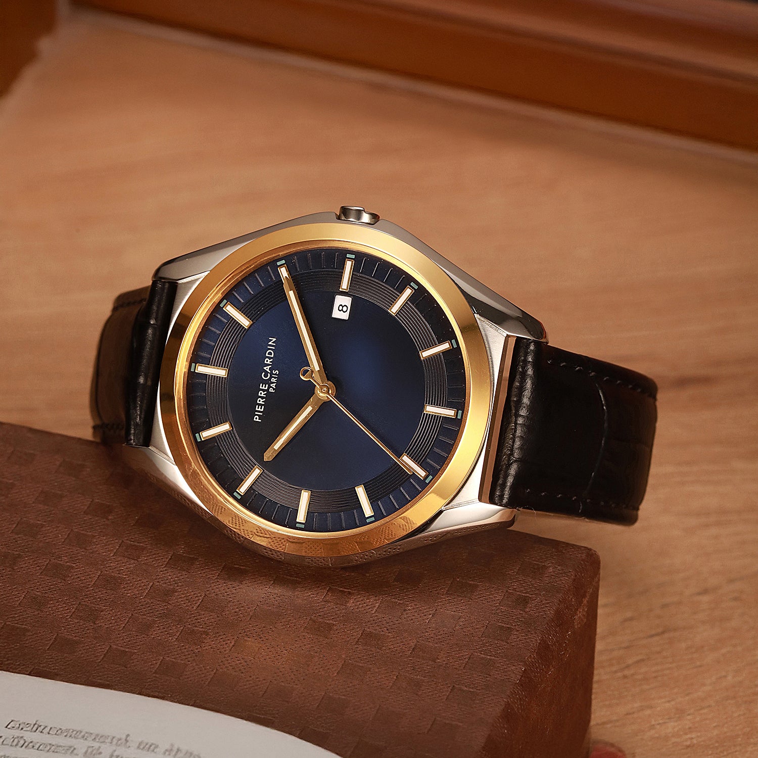 The Vaugirard Aréne men’s watch by Pierre Cardin is a striking blend of classic and contemporary style, featuring a sophisticated two-tone case in gold and silver with a deep blue dial. Paired with a premium black leather strap, this 42mm timepiece is perfect for the modern gentleman who values elegance and quality craftsmanship. Designed to suit any occasion, the Vaugirard Aréne watch combines timeless appeal with Pierre Cardin’s signature touch of Parisian refinement.