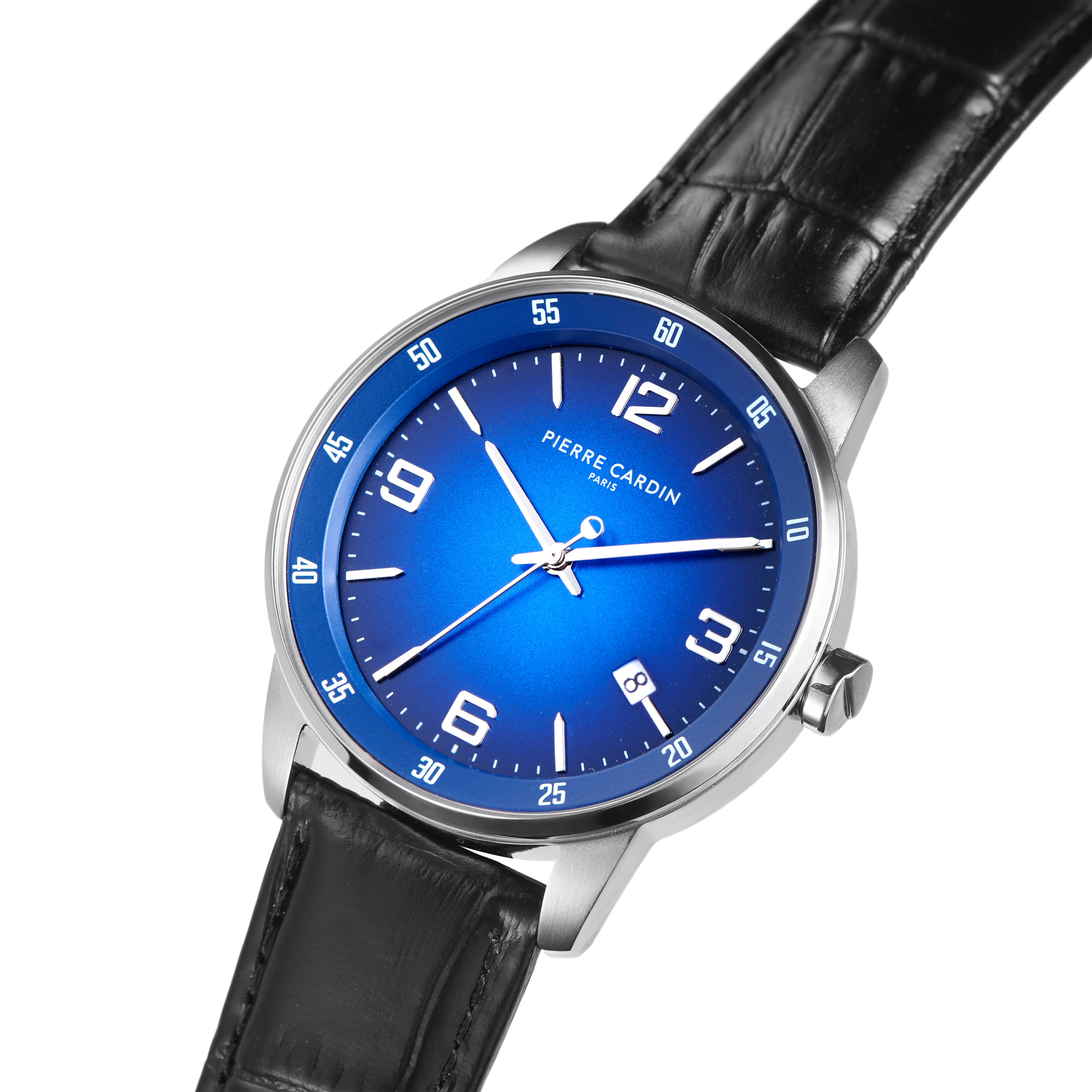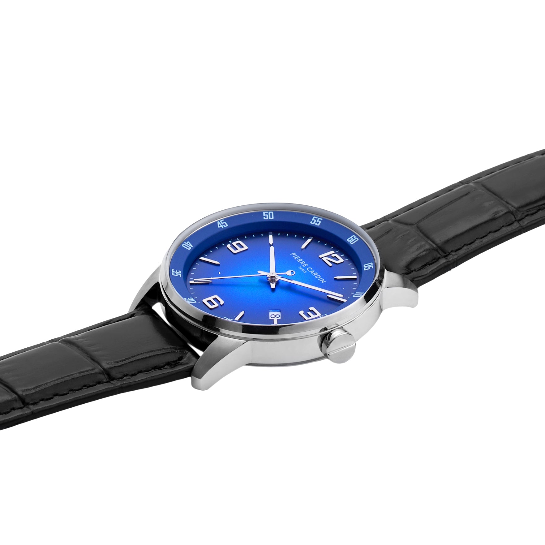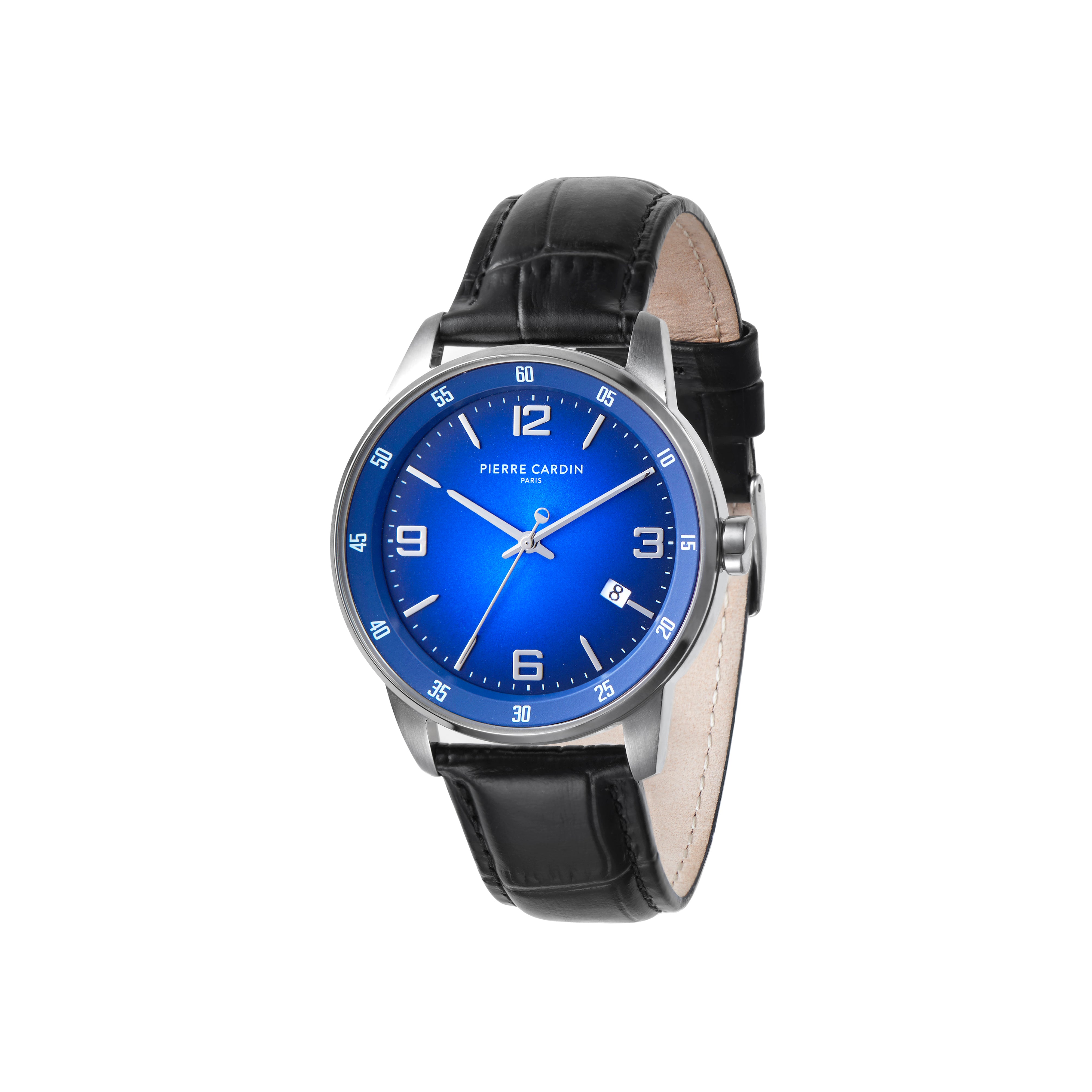 The Montrouge Opulent leather watch for men is a statement piece that stays close to Pierre Cardin’s iconic design inspired by the cosmopolitan style of the Montrouge district. The dial features minimal silver hands and a date feature, The polished silver stainless steel watch case offers a touch of contrast to complement a classic black leather strap, a fine addition to all your outfits night or day.