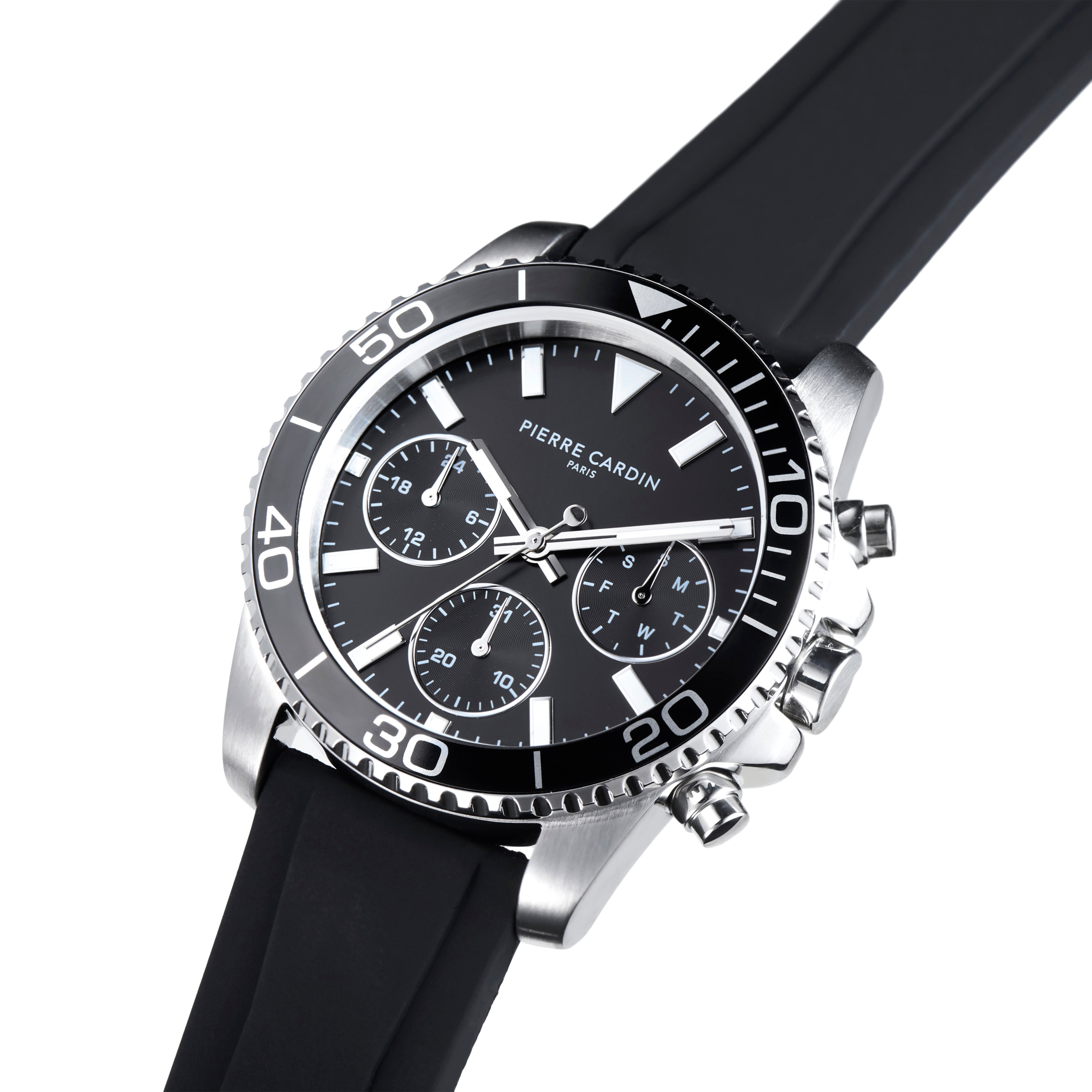 Stay on time in style with the Pierre Cardin Nation Posh Multifunction watch. Featuring a stainless steel case and a sporty black rubber strap, this multifunction watch provides all the features you need for everyday wear. With its sleek, modern design, you can look good and stay punctual.