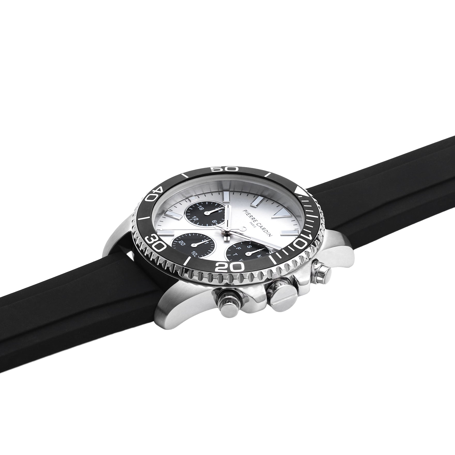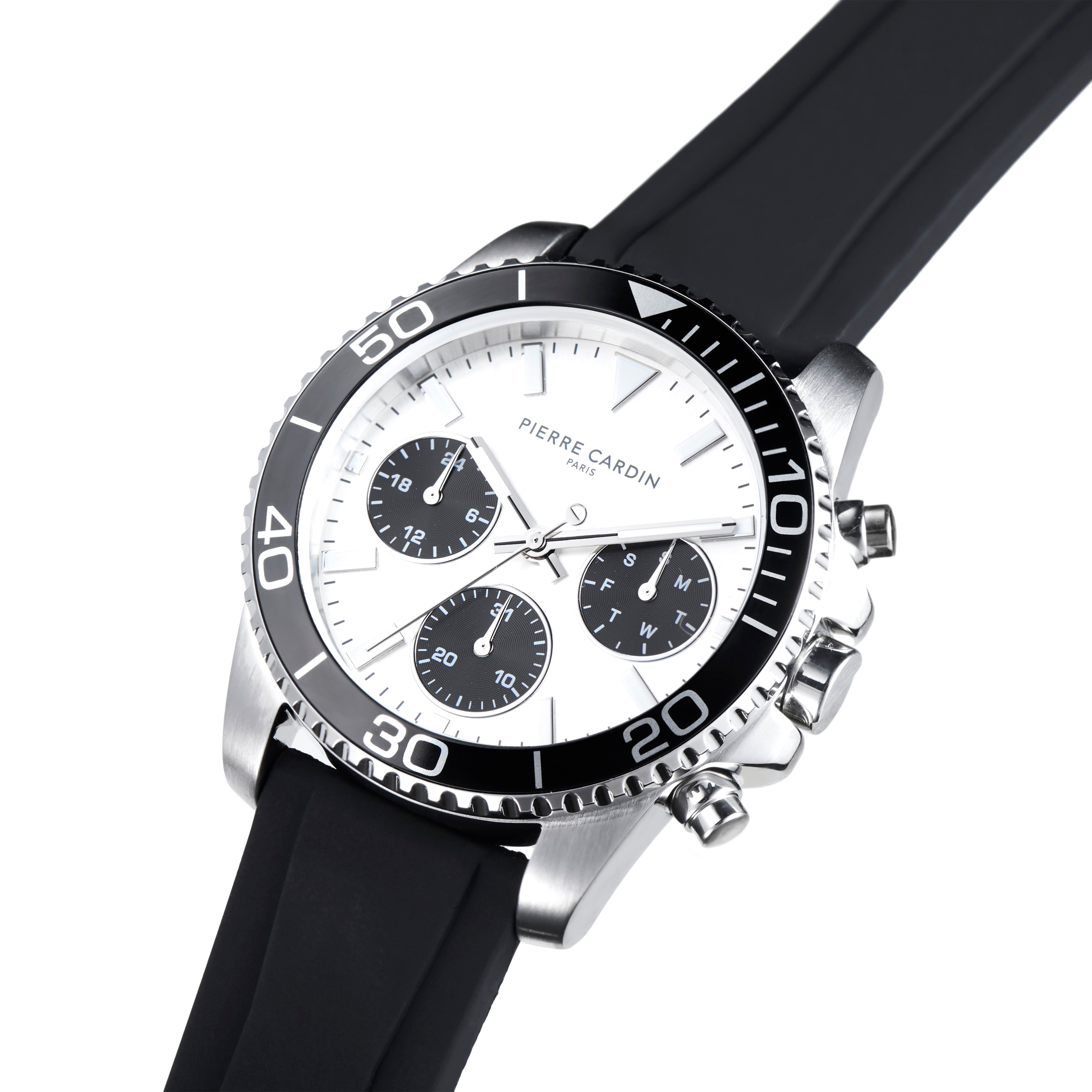 Stay on time in style with the Pierre Cardin Nation Posh Multifunction watch. Featuring a stainless steel case and a sporty black rubber strap, this multifunction watch provides all the features you need for everyday wear. With its sleek, modern design, you can look good and stay punctual.
