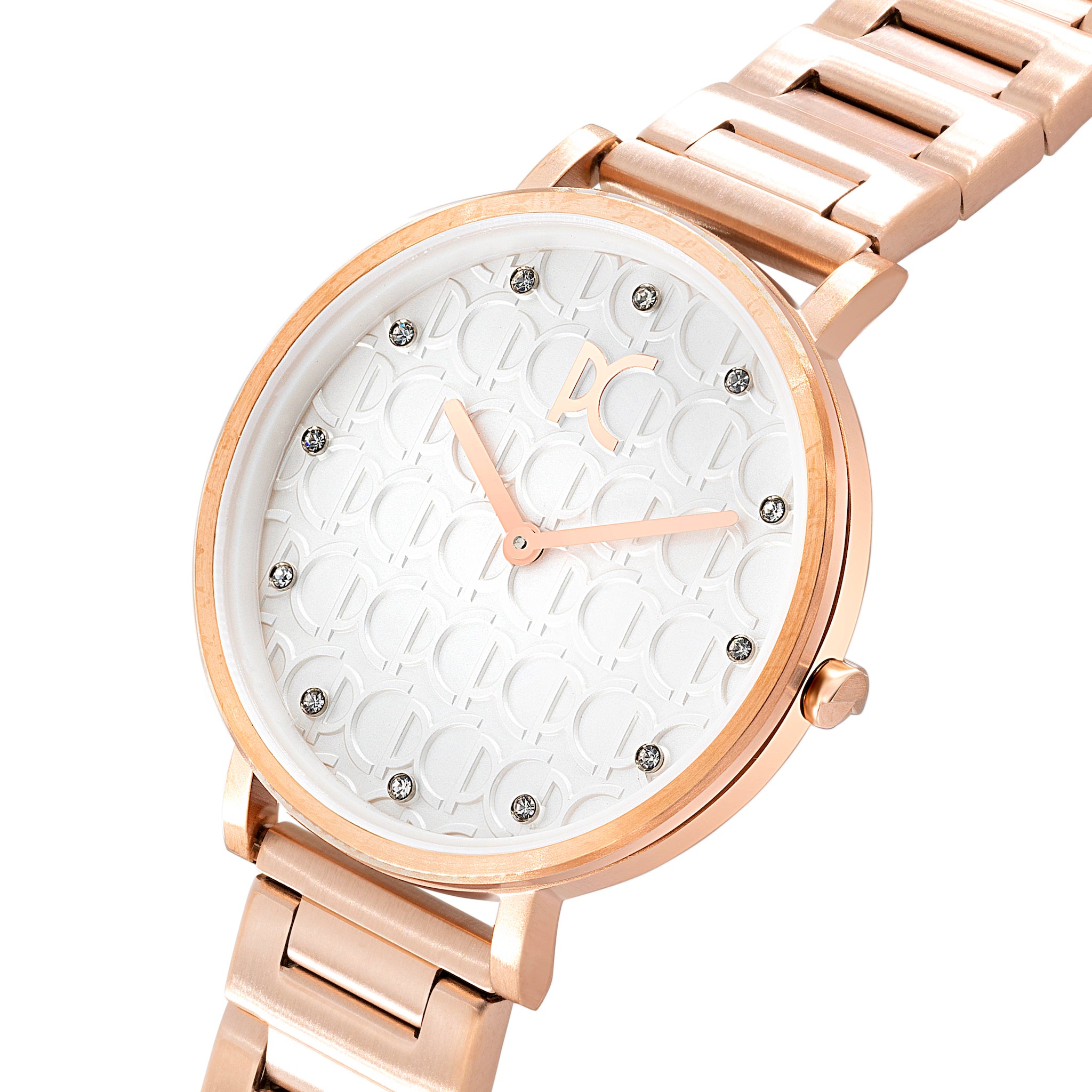 The Bonne Nouvelle metal link watch for women's is a statement piece that stays close to Pierre Cardin’s iconic design inspired by the cosmopolitan style of the Bonne Nouvelle district. The dial features minimal rose gold hands, The polished rose gold steel watch case offers to complement a metal links strap, a fine addition to all your outfits night or day.