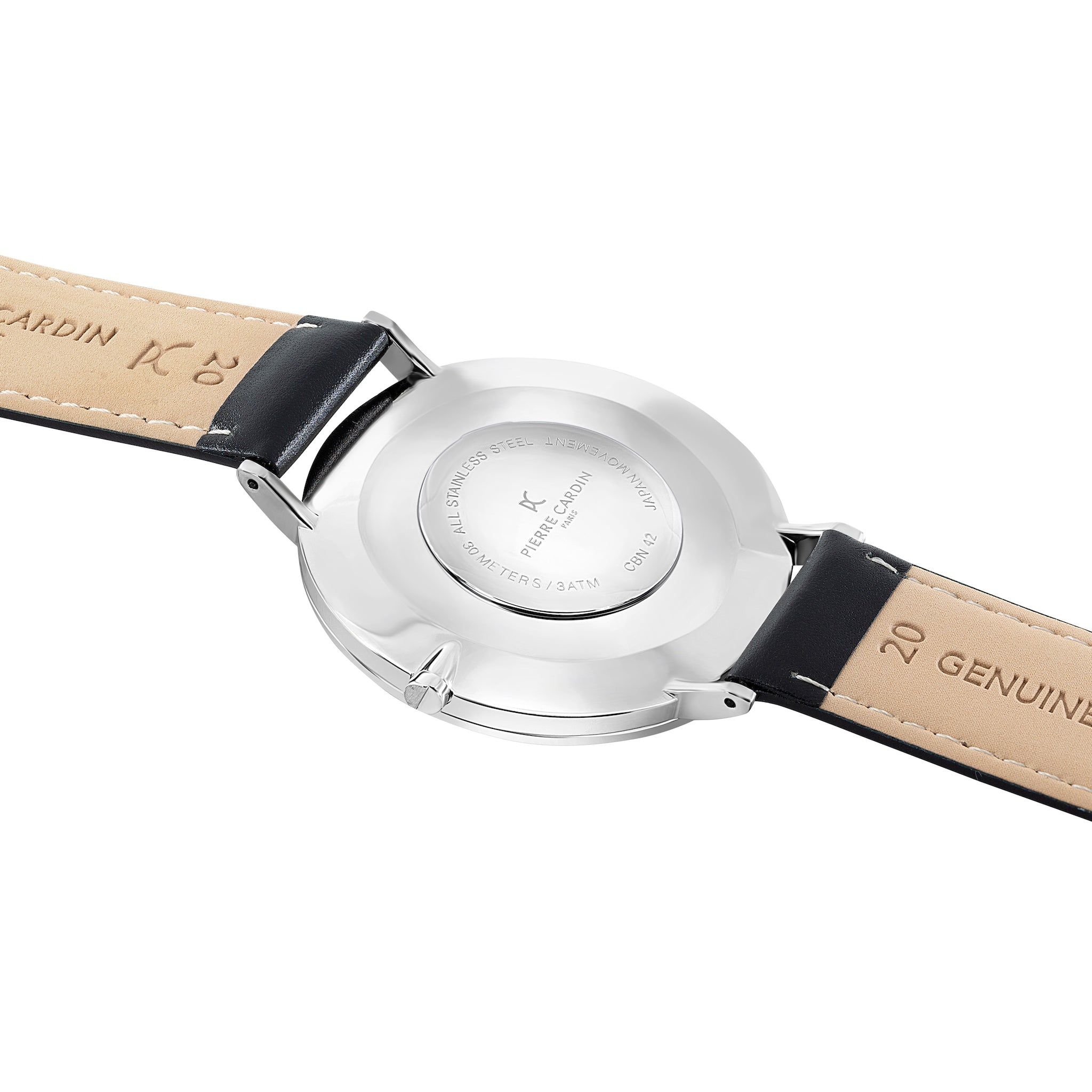 The Bonne Nouvelle leather watch for men is a statement piece that stays close to Pierre Cardin’s iconic design inspired by the cosmopolitan style of the Bonne Nouvelle district. The dial features minimal silver hands, The polished silver stainless steel watch case offers a touch of contrast to complement a classic black leather strap, a fine addition to all your outfits night or day.