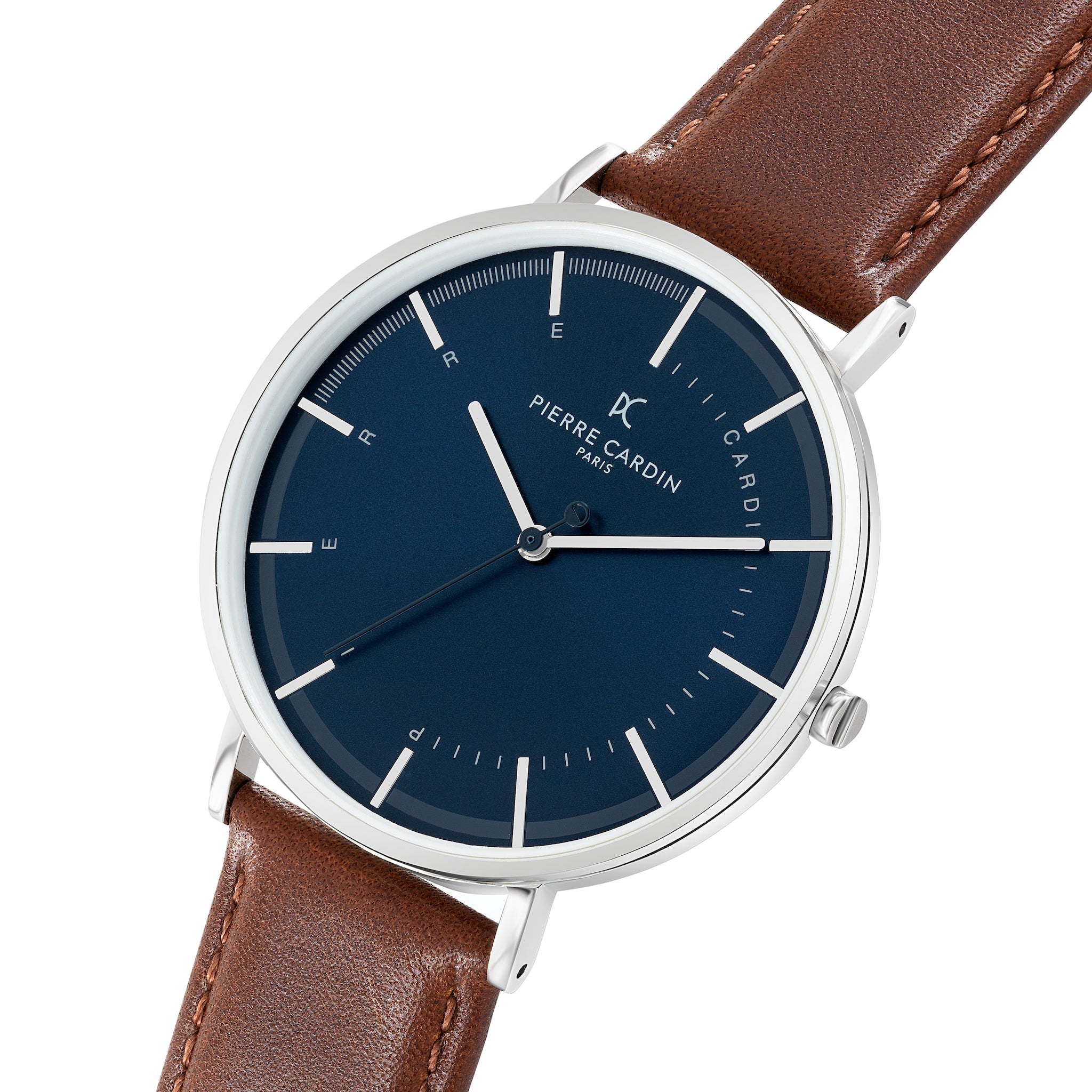 The Bonne Nouvelle leather watch for men is a statement piece that stays close to Pierre Cardin’s iconic design inspired by the cosmopolitan style of the Bonne Nouvelle district. The dial features minimal silver hands, The polished Silver Stainless steel watch case offers a touch of contrast to complement a classic brown leather strap, a fine addition to all your outfits night or day.