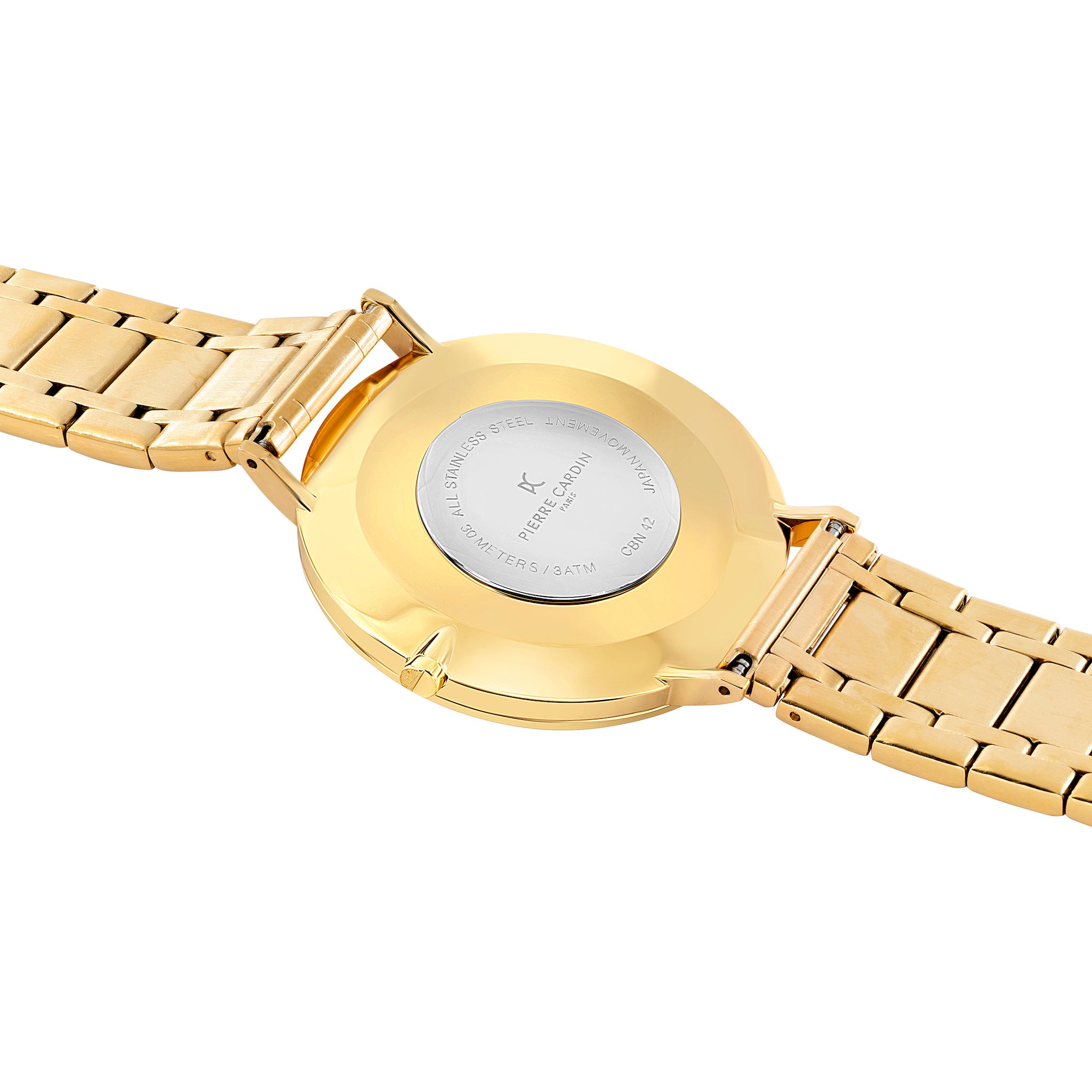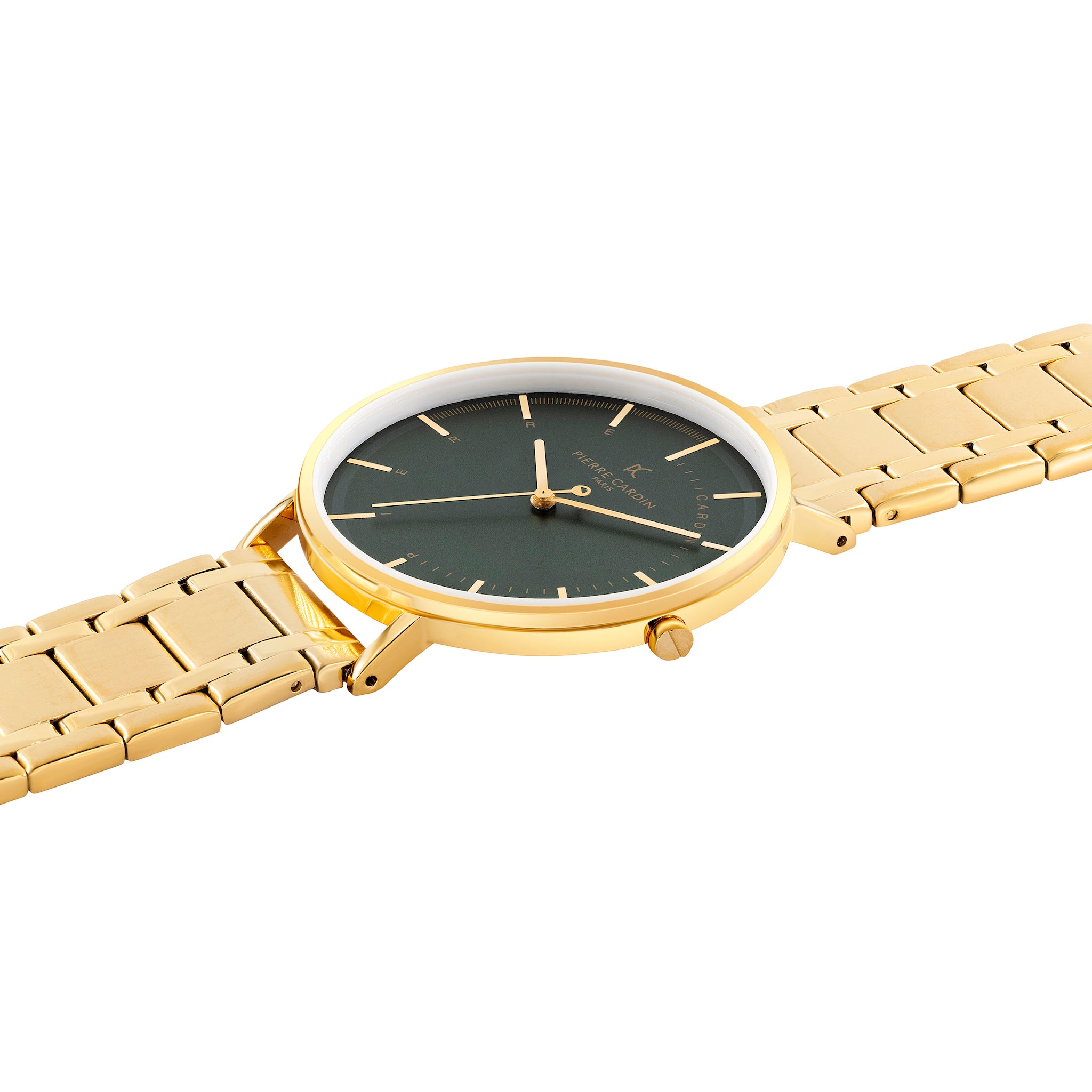 The Bonne Nouvelle metal link watch for men is a statement piece that stays close to Pierre Cardin’s iconic design inspired by the cosmopolitan style of the Bonne Nouvelle district. The dial features minimal gold hands, The polished Gold watch case offers a touch of contrast to complement a metal links strap, a fine addition to all your outfits night or day.
