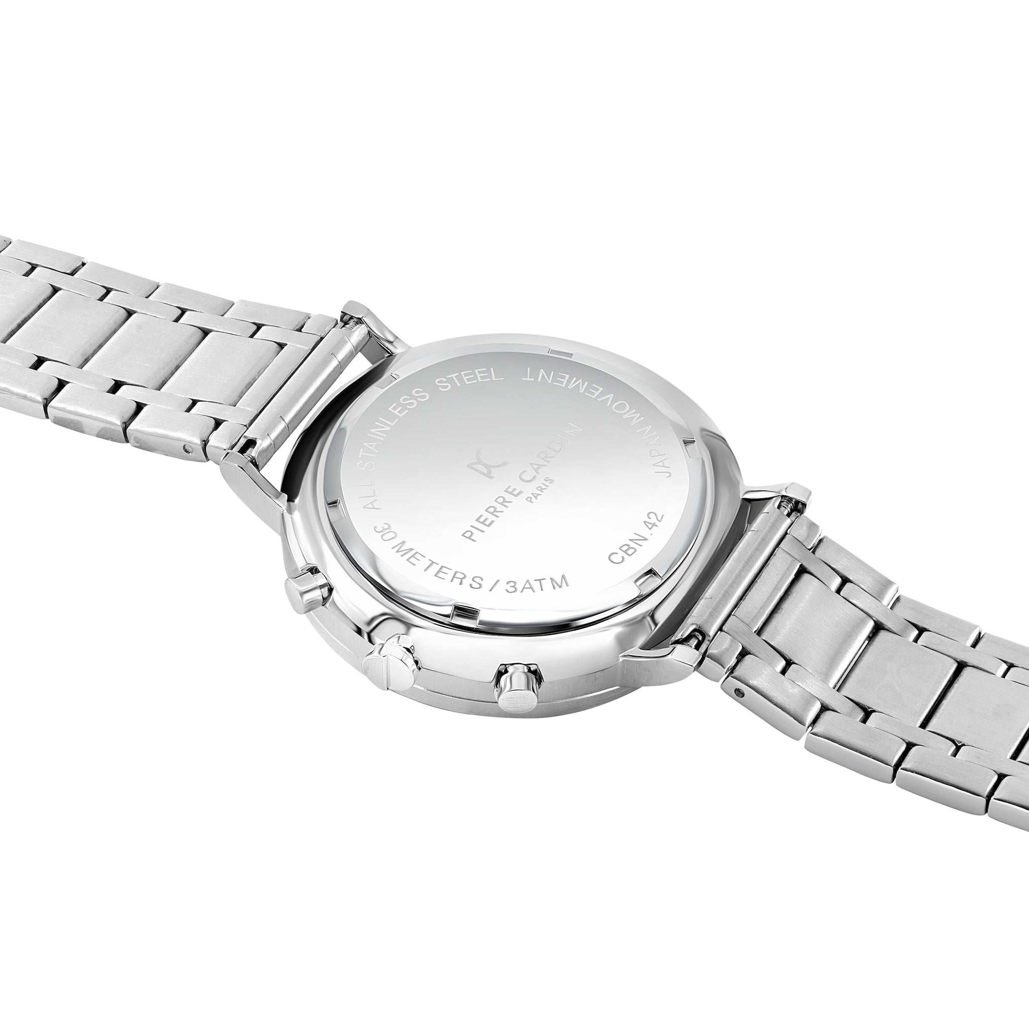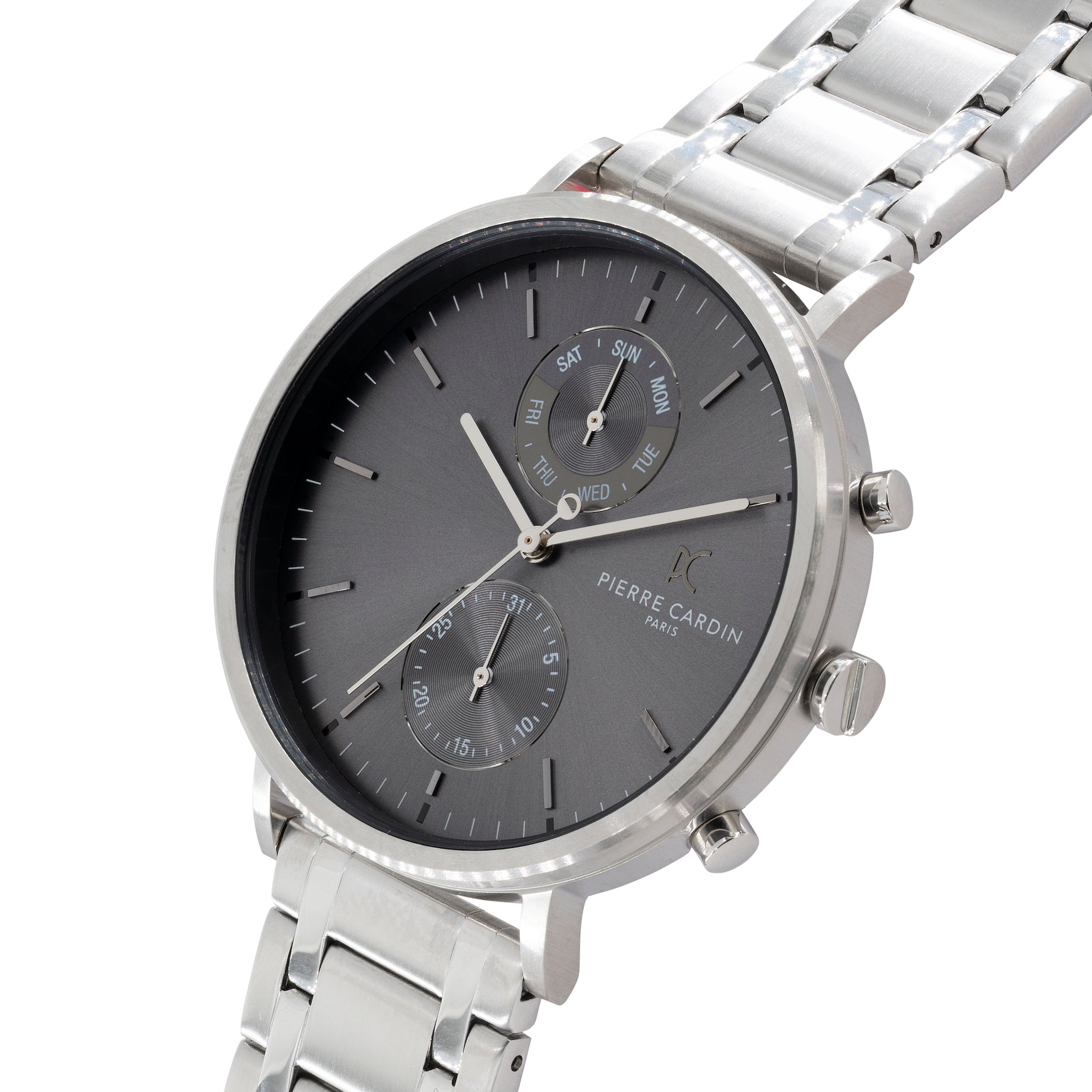 The Bonne Nouvelle metal link watch for men is a statement piece that stays close to Pierre Cardin’s iconic design inspired by the cosmopolitan style of the Bonne Nouvelle district. The dial features minimal silver hands, The polished Silver Stainless steel watch case offers to complement a metal links strap, a fine addition to all your outfits night or day.