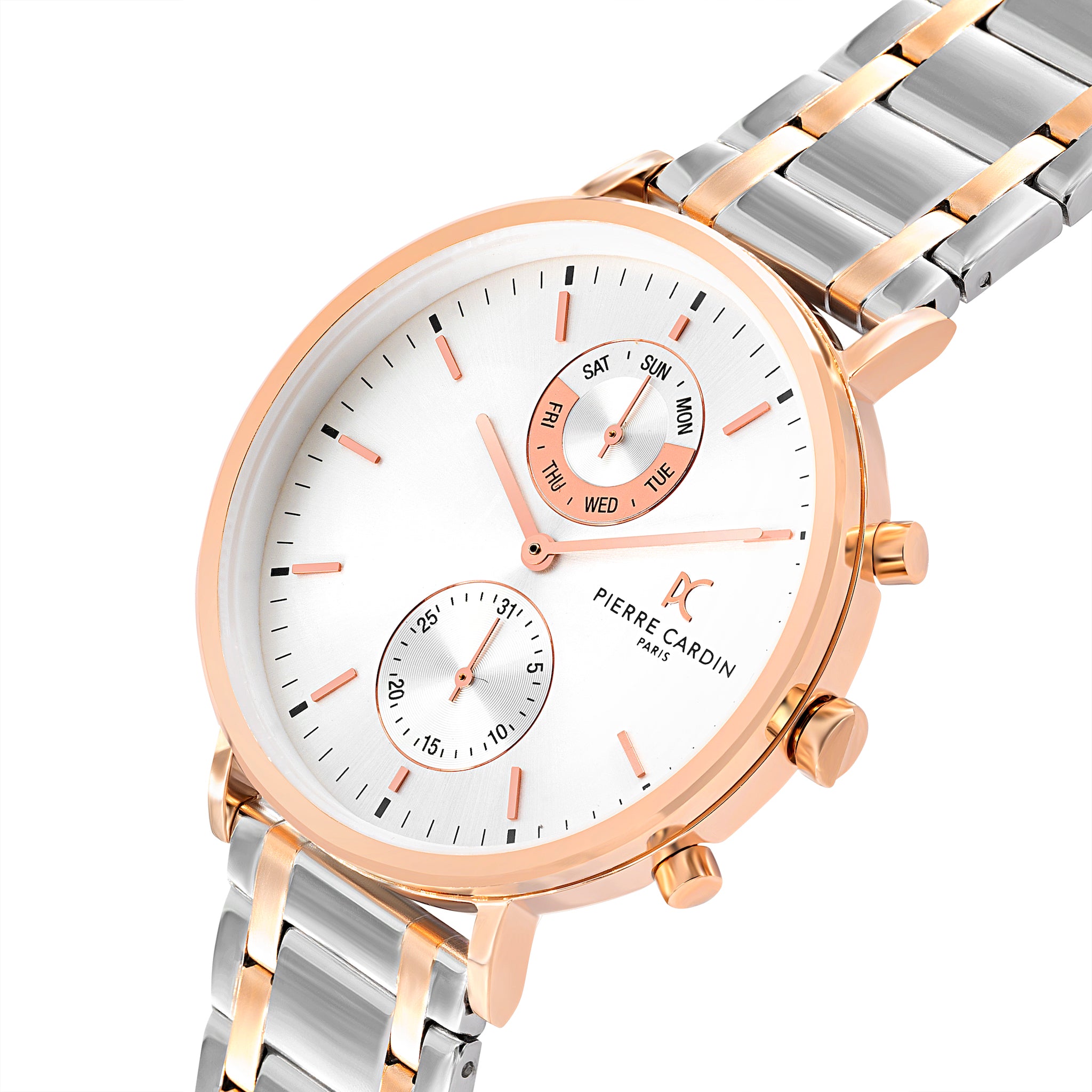 The Bonne Nouvelle metal link watch for men is a statement piece that stays close to Pierre Cardin’s iconic design inspired by the cosmopolitan style of the Bonne Nouvelle district. The dial features minimal rose gold hands, The polished rose gold watch case offers to complement a two tone rose gold and stainless steel metal links strap, a fine addition to all your outfits night or day.