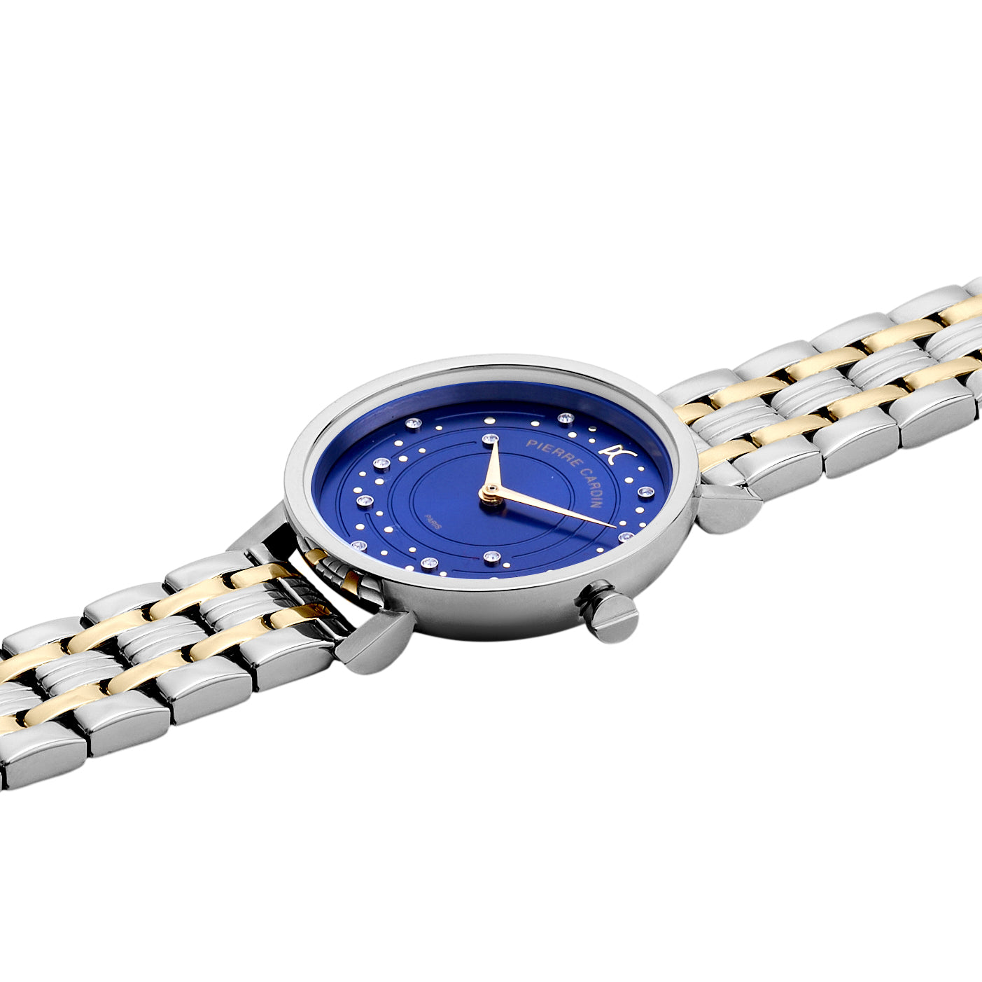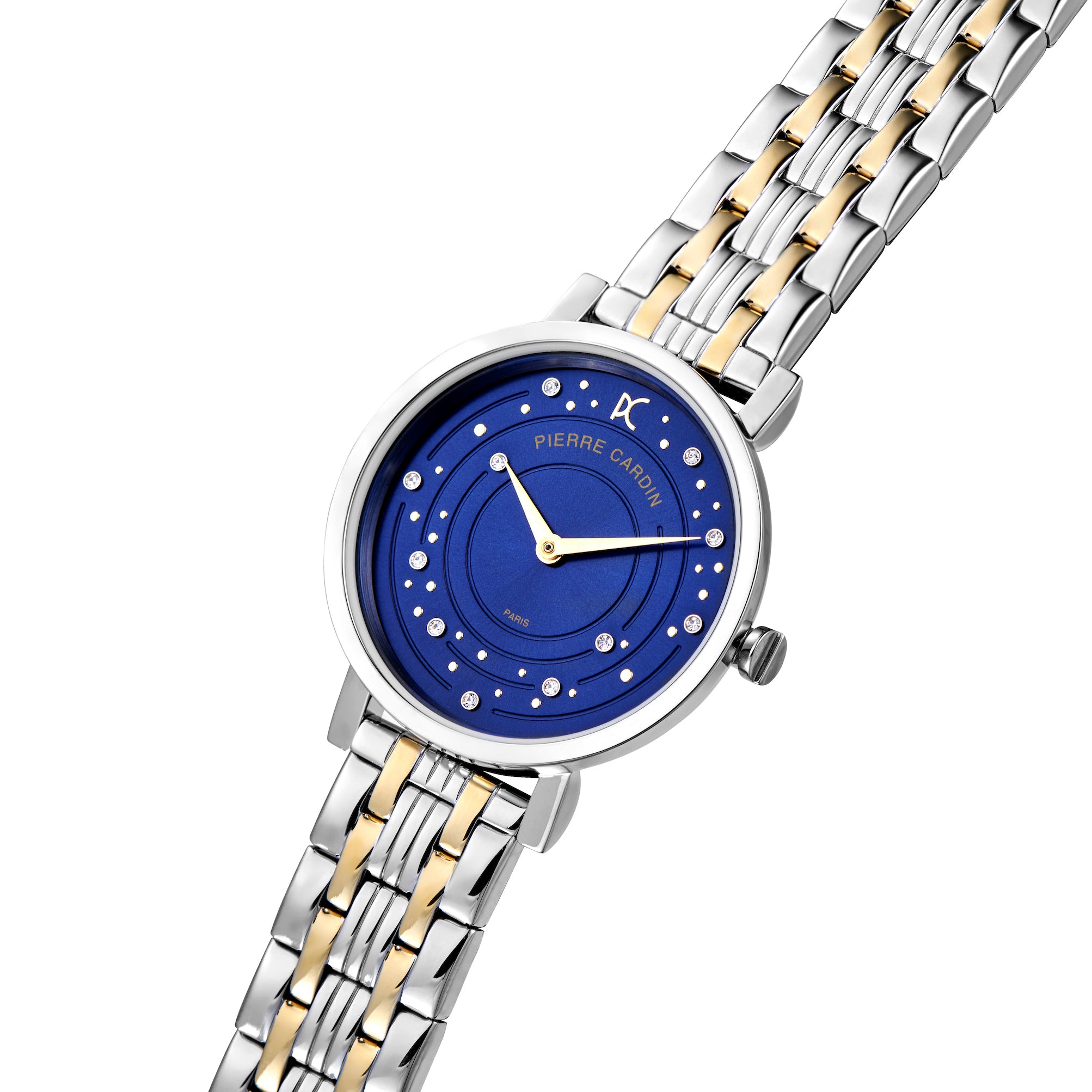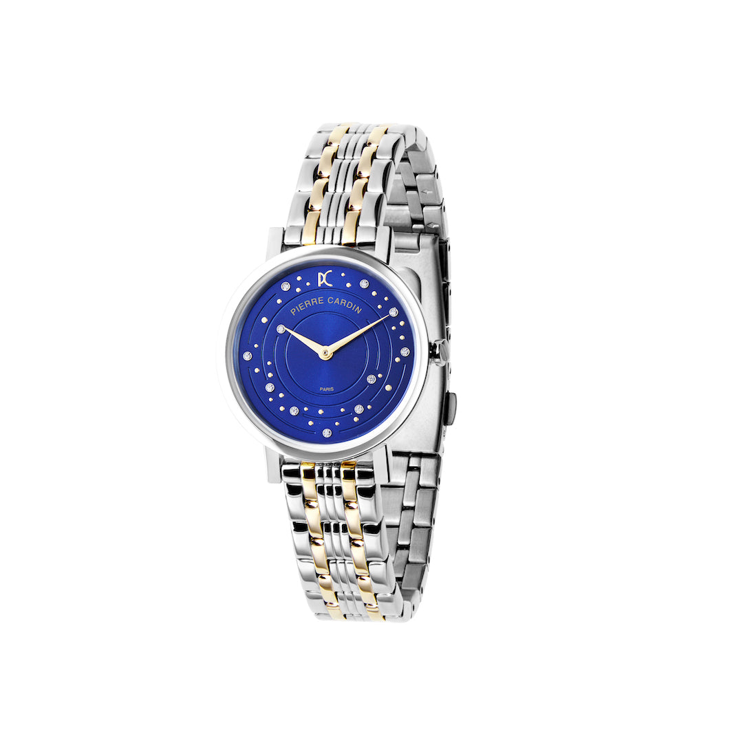 Canal St Martin Circles Two Tone Gold and Steel Watch with Crystals and Blue Dial