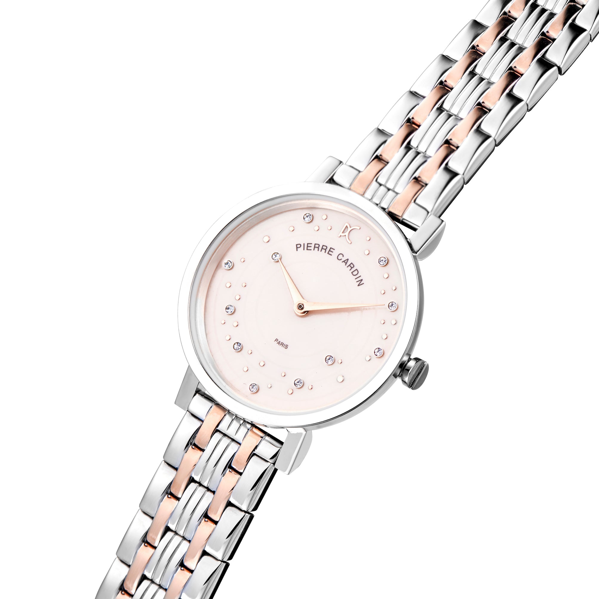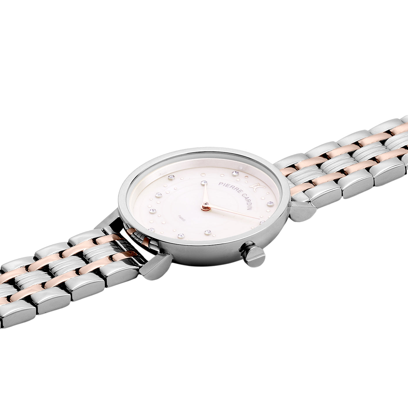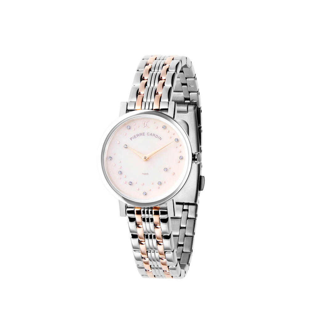 Canal St Martin Circles Two Tone Rose Gold and Steel Watch with Crystals and Pink Dial