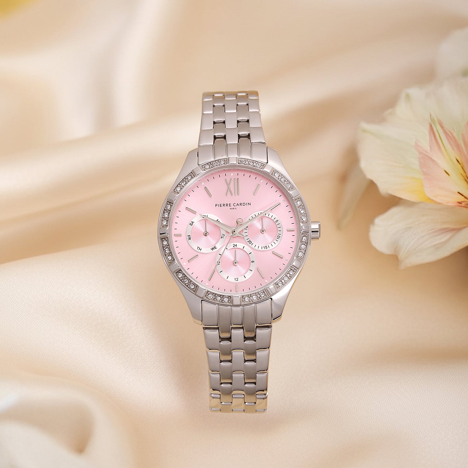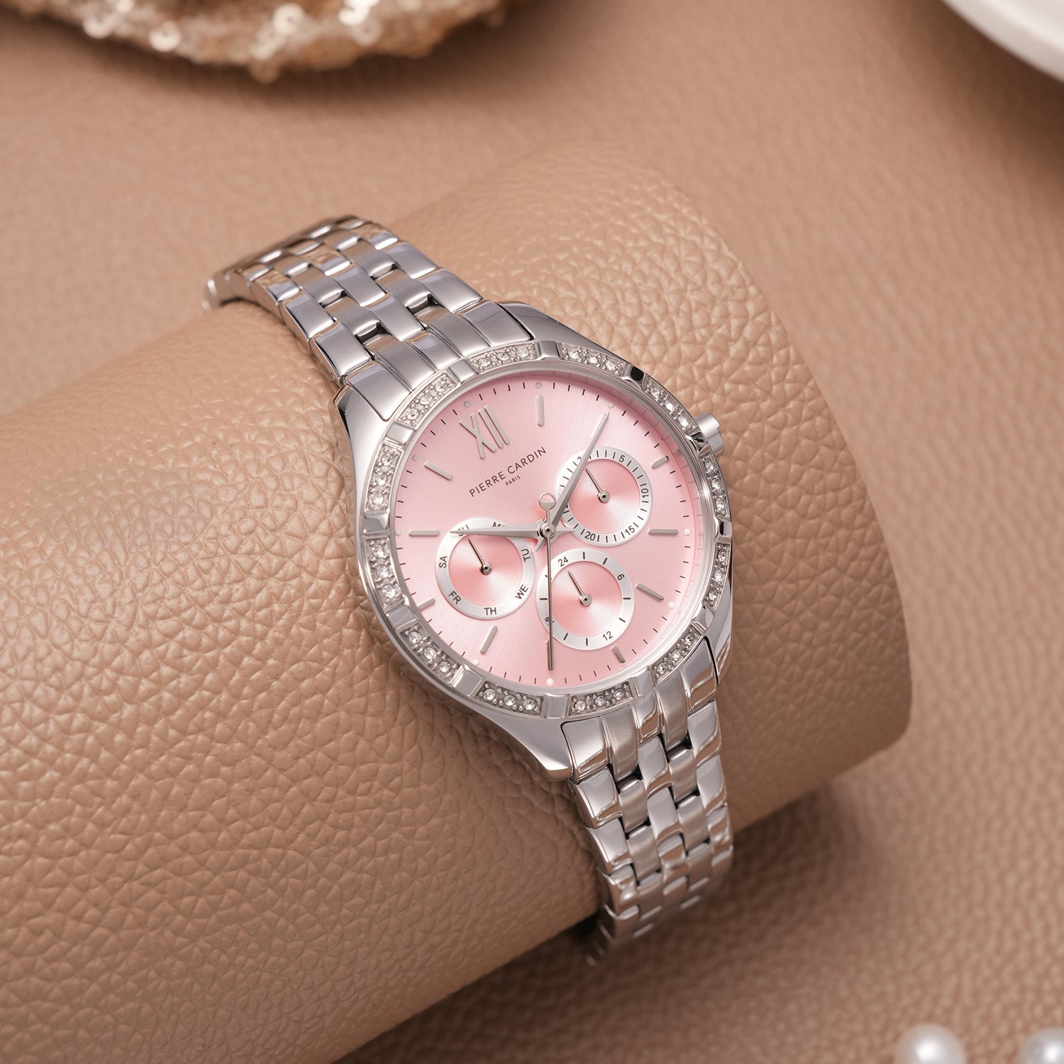 Éclat Luxe Lady 35mm - Stainless Steel Silver with Stainless Steel Silver Strap offers a distinct design identity and refined detailing tailored for its signature look. This 35mm timepiece features a Pink dial powered by a Quartz movement from Japan. Encased in Stainless Steel Silver with a Stainless Steel Silver Strap, it blends durability with refined elegance. Perfect for those who appreciate craftsmanship and everyday versatility, this watch is a modern statement piece that balances functionality and timeless appeal.