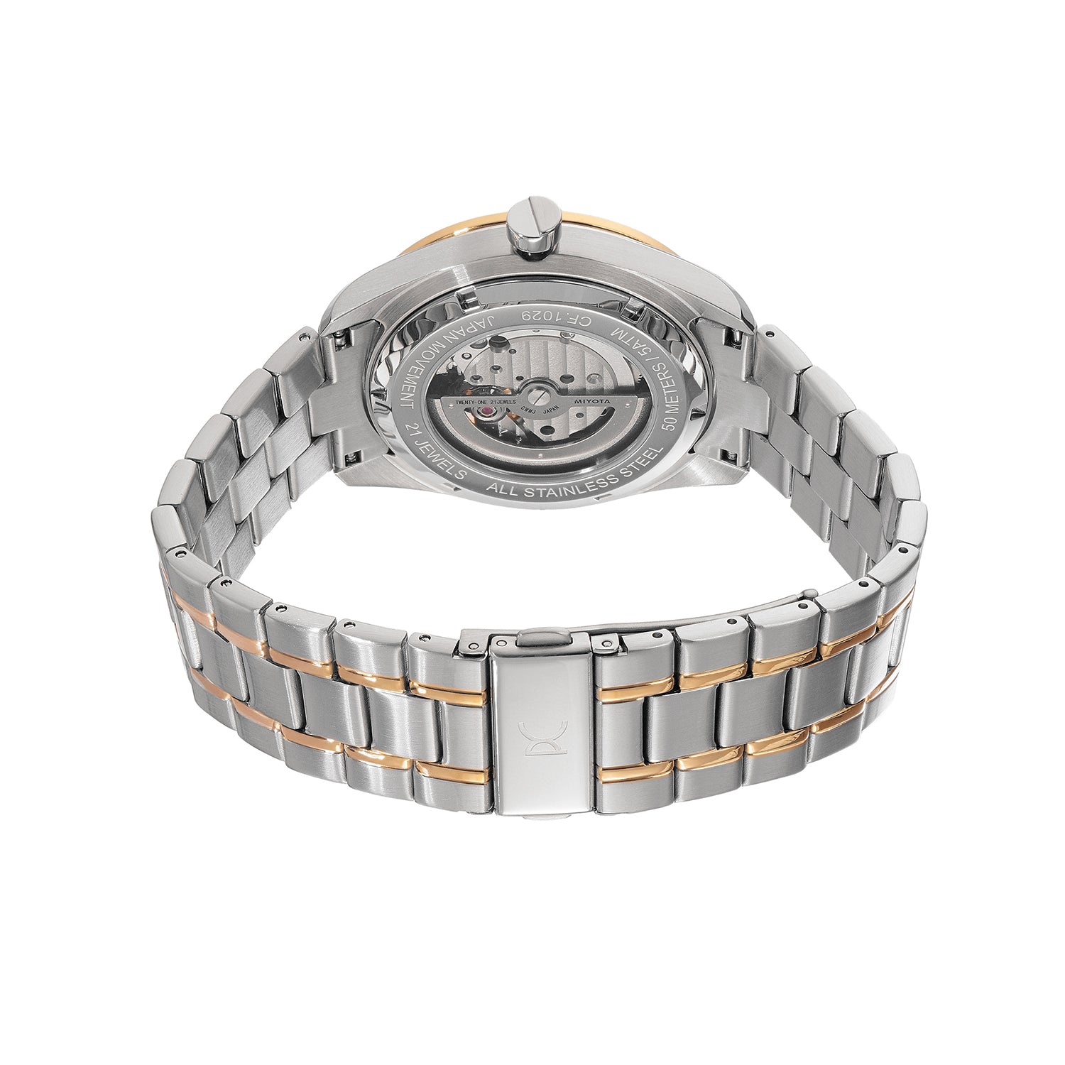 Strap: Twotone stainless steel and IP gold metal band (22mm width)