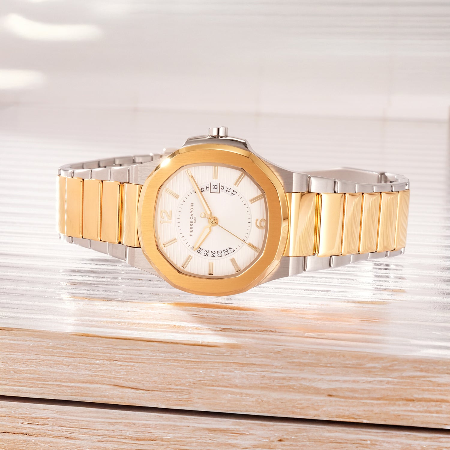 Elegance Supreme Mens 42mm - Twotone Gold and Silver with Twotone Gold and Silver Metal Strap offers a distinct design identity and refined detailing tailored for its signature look. This 42mm timepiece features a Silver white dial powered by a Quartz movement from Japan. Encased in Twotone Gold and Silver with a Twotone Gold and Silver Metal Strap, it blends durability with refined elegance. Perfect for those who appreciate craftsmanship and everyday versatility, this watch is a modern statement piece that balances functionality and timeless appeal.
