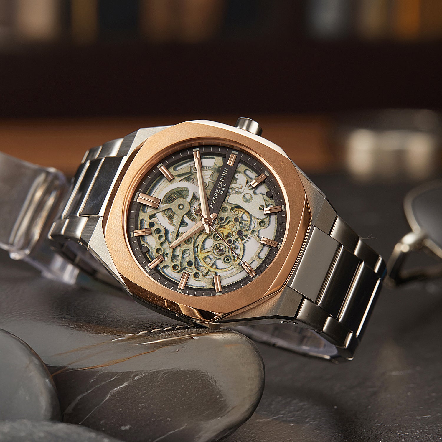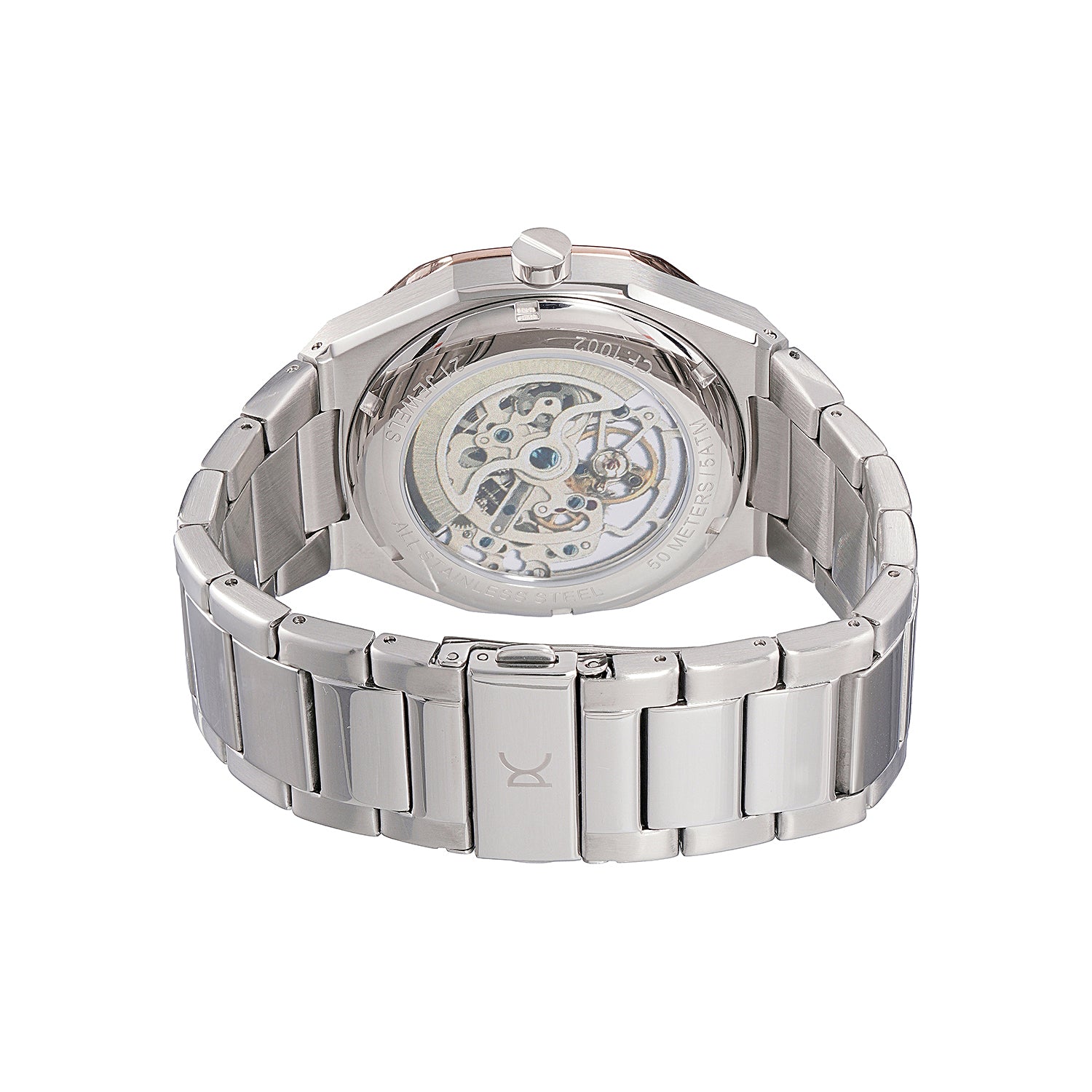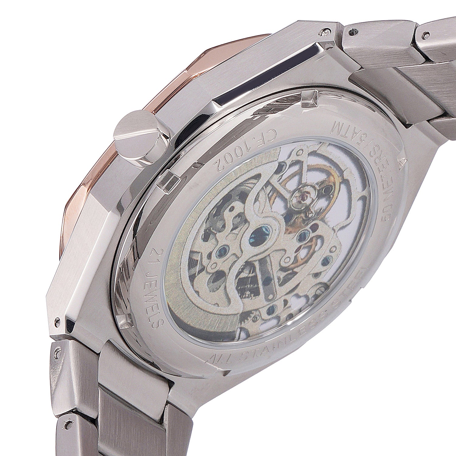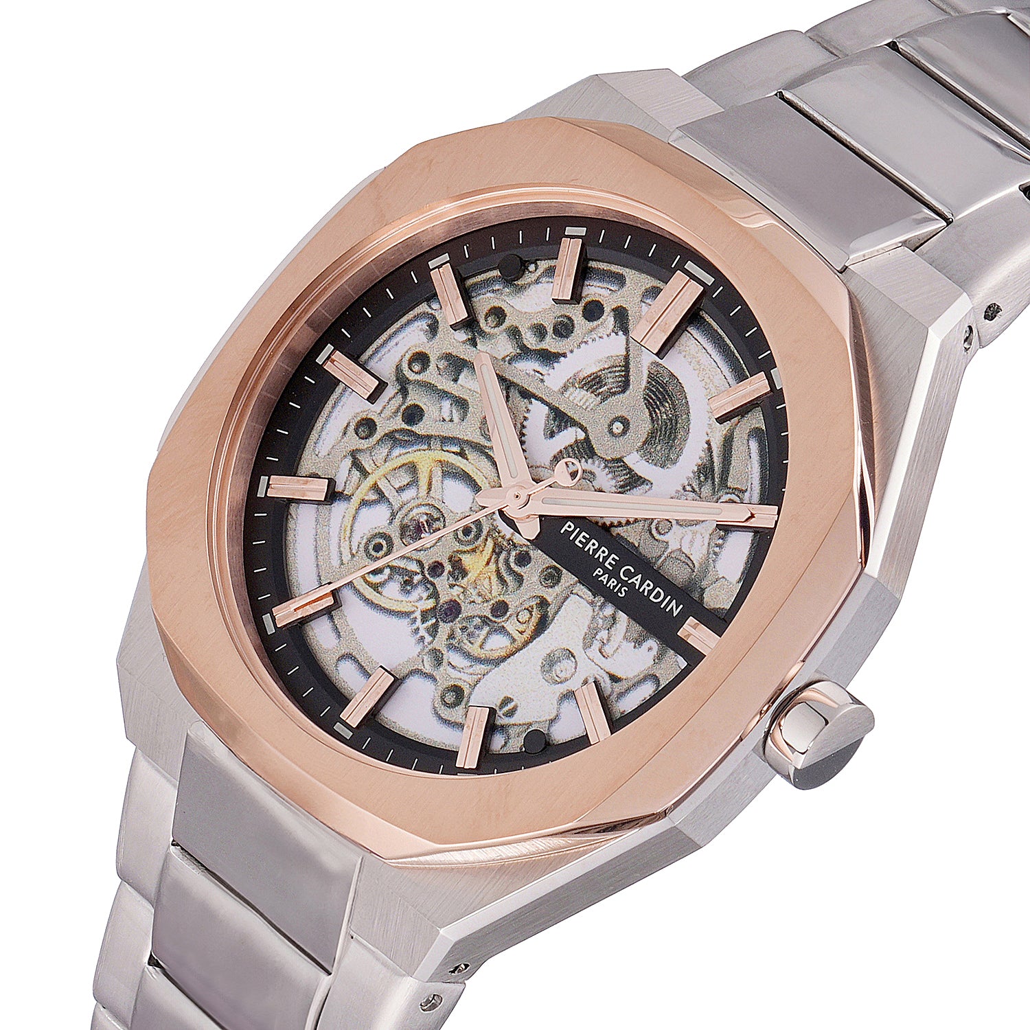 Élysée Automatique Men’s 42mm Skeleton Watch - Two-Tone Rose Gold & Silver Case with Silver Metal Strap
