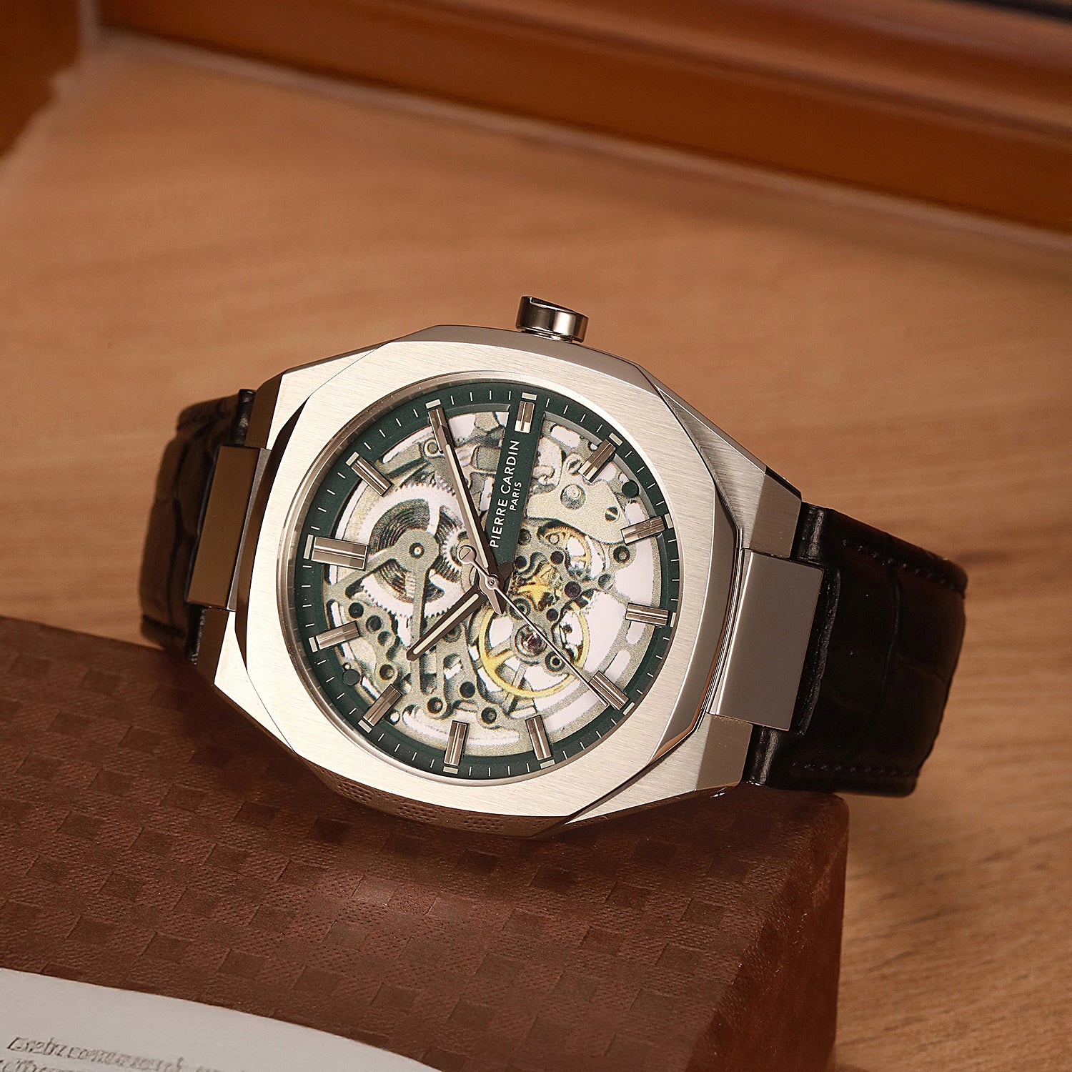 Élysée Automatique Men’s 42mm Stainless Steel Watch - Green Dial with Black Leather Strap