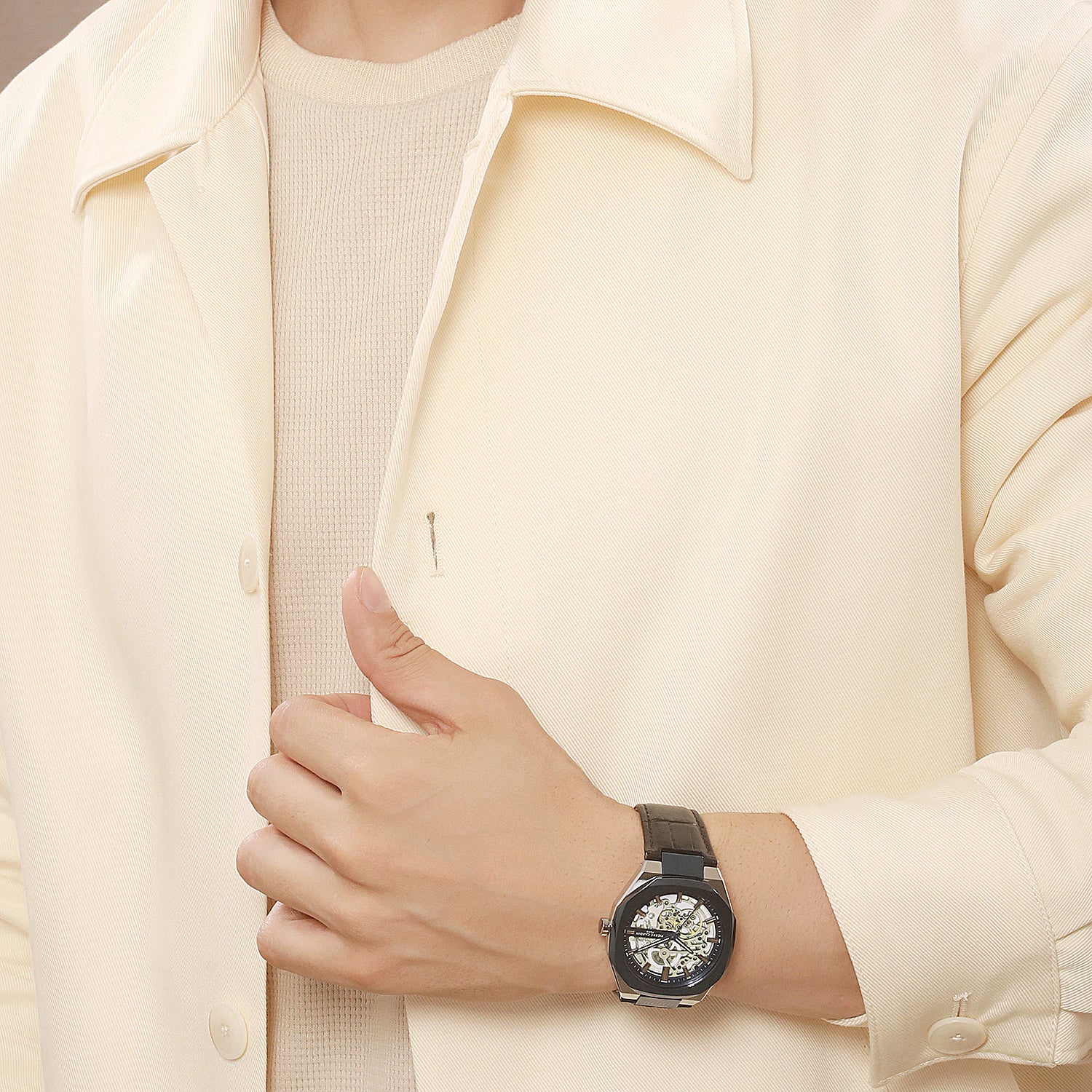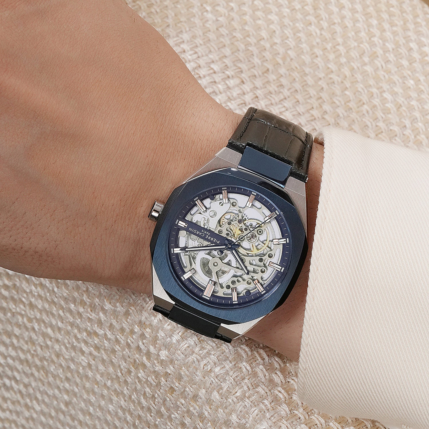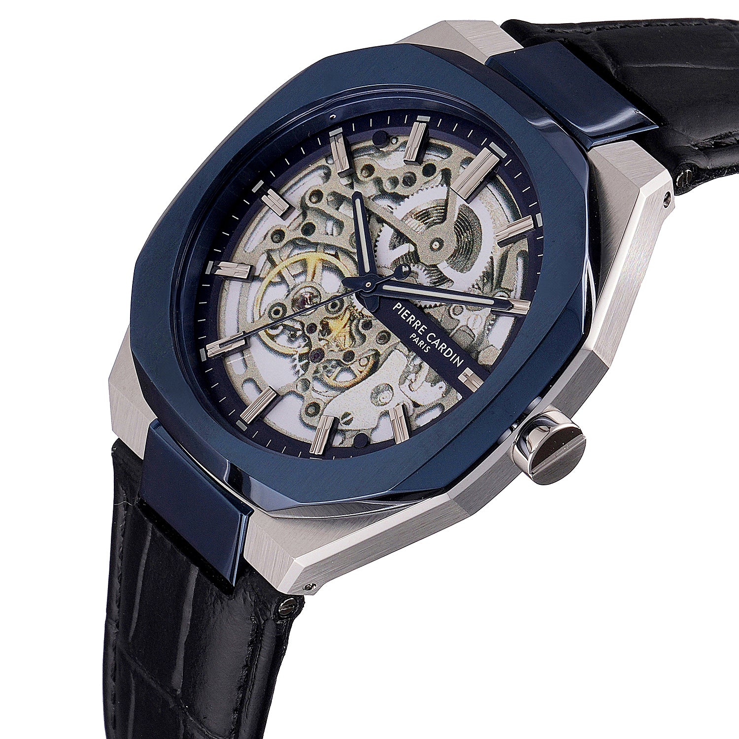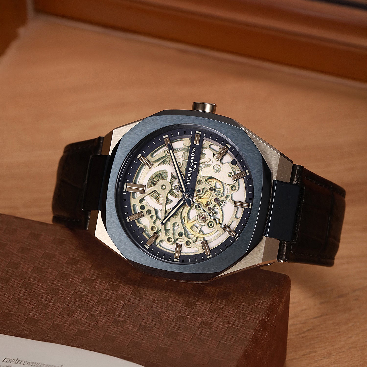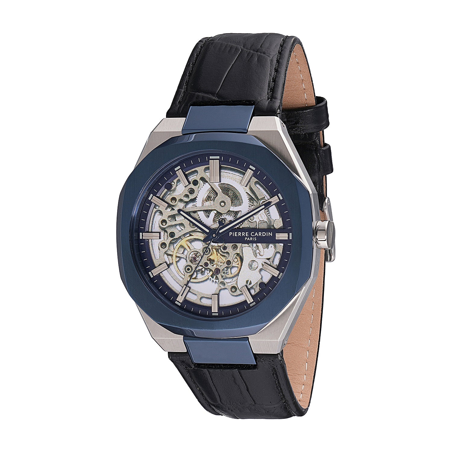 The Élysée Automatique men’s watch blends contemporary elegance with a bold design, featuring a 42mm two-tone case in blue and silver, complemented by a striking blue dial. This timepiece highlights the beauty of its automatic movement, framed within the refined stainless steel case. Paired with a classic black leather strap, the Élysée Automatique is ideal for the modern man who appreciates both style and craftsmanship. Perfect for any occasion, this watch combines timeless sophistication with a touch of modern flair.