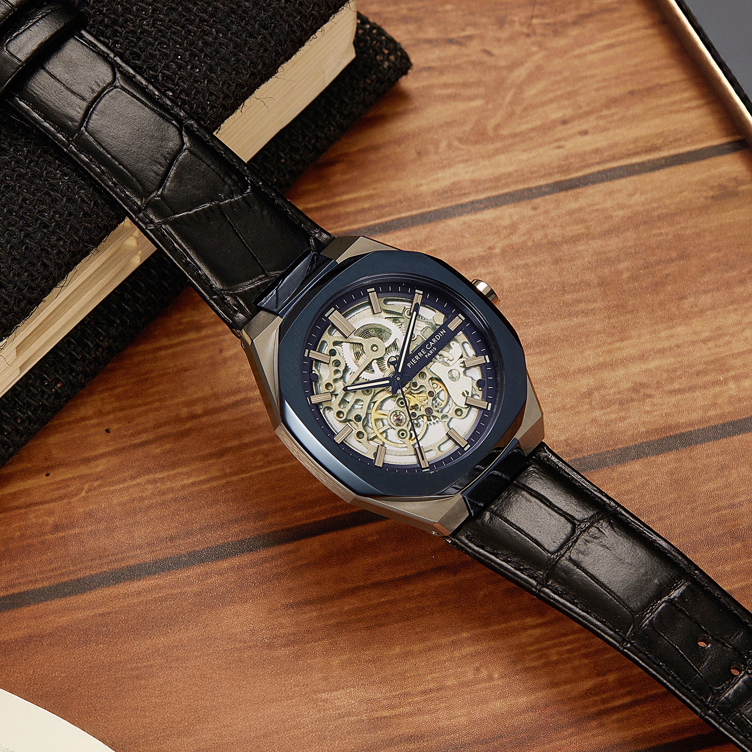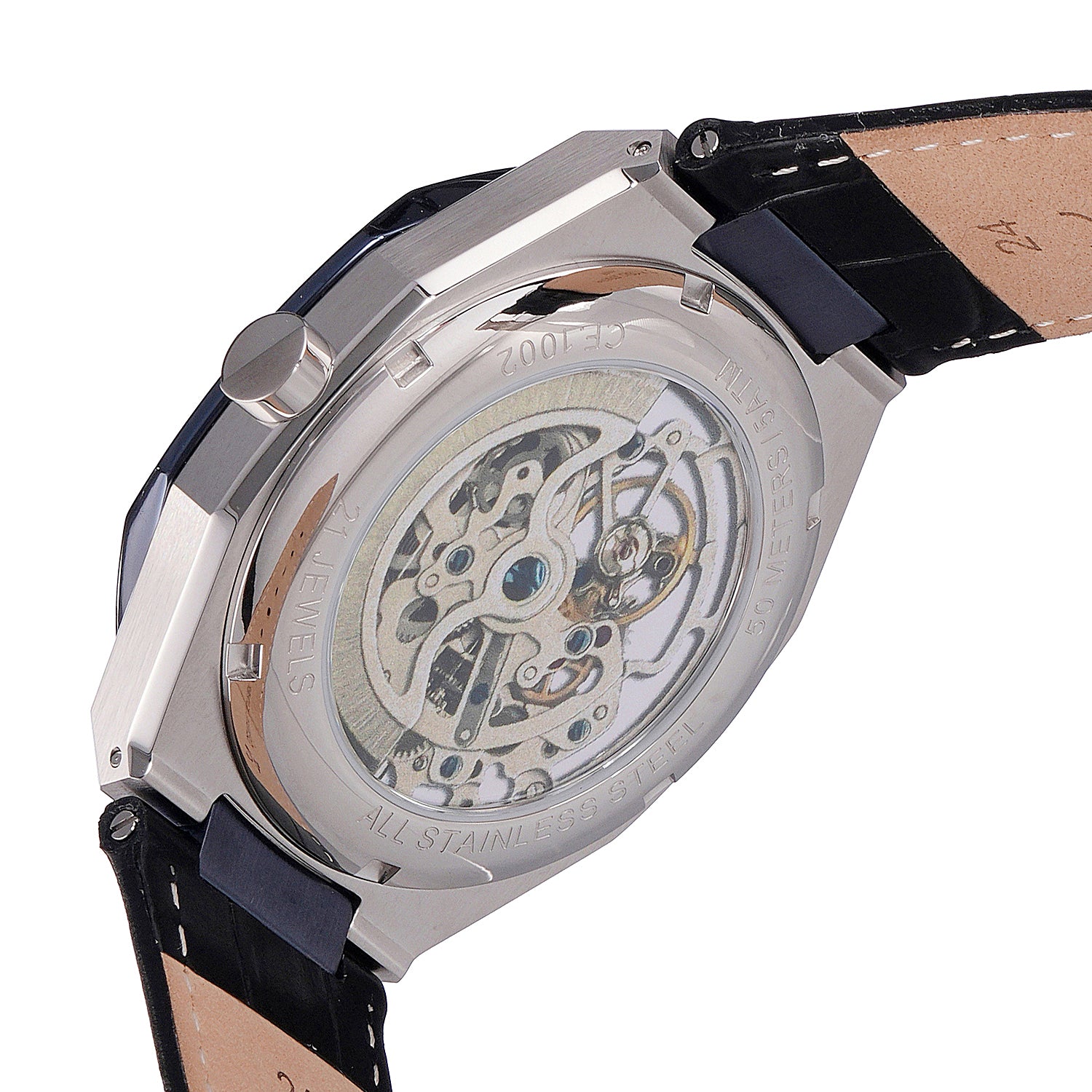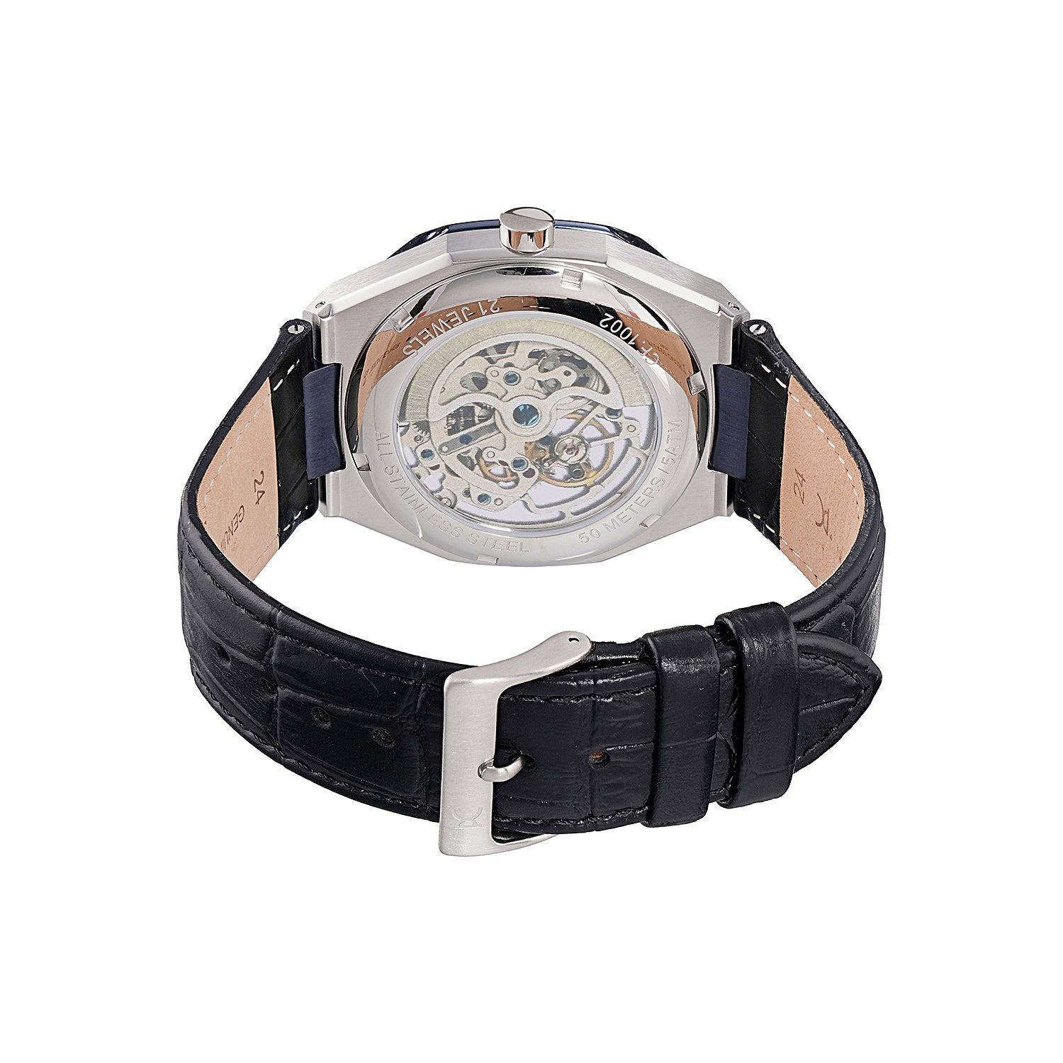Élysée Automatique Men’s 42mm Two-Tone Blue & Silver Watch - Blue Dial with Black Leather Strap