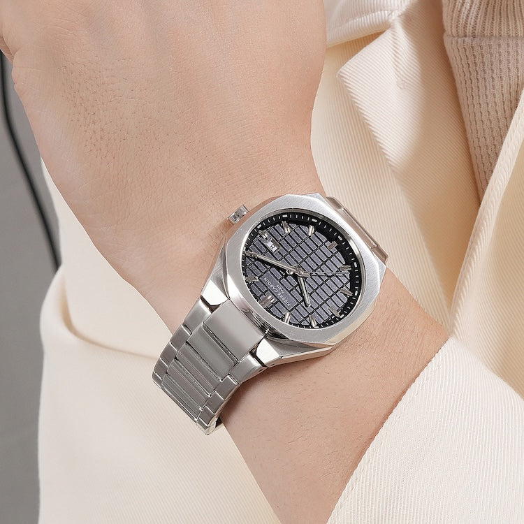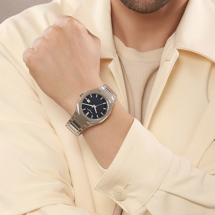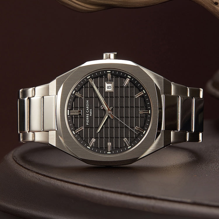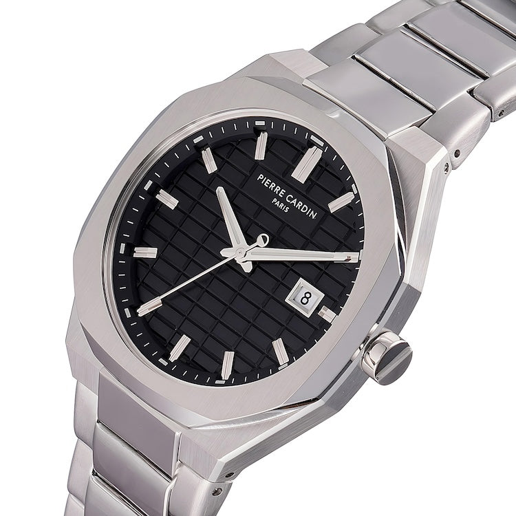 Elegant and bold, the Élysée Checkers Stainless Steel Watch by Pierre Cardin is designed for the modern man who values both style and substance. Featuring a striking black checkered dial, this 42mm men’s watch adds a unique texture that catches the eye. The robust stainless steel case and metal strap create a seamless, sophisticated look suitable for any occasion, whether formal or casual. With its timeless design and Pierre Cardin’s renowned craftsmanship, the Élysée Checkers watch is a luxurious addition to any collection, embodying quality and Parisian sophistication.