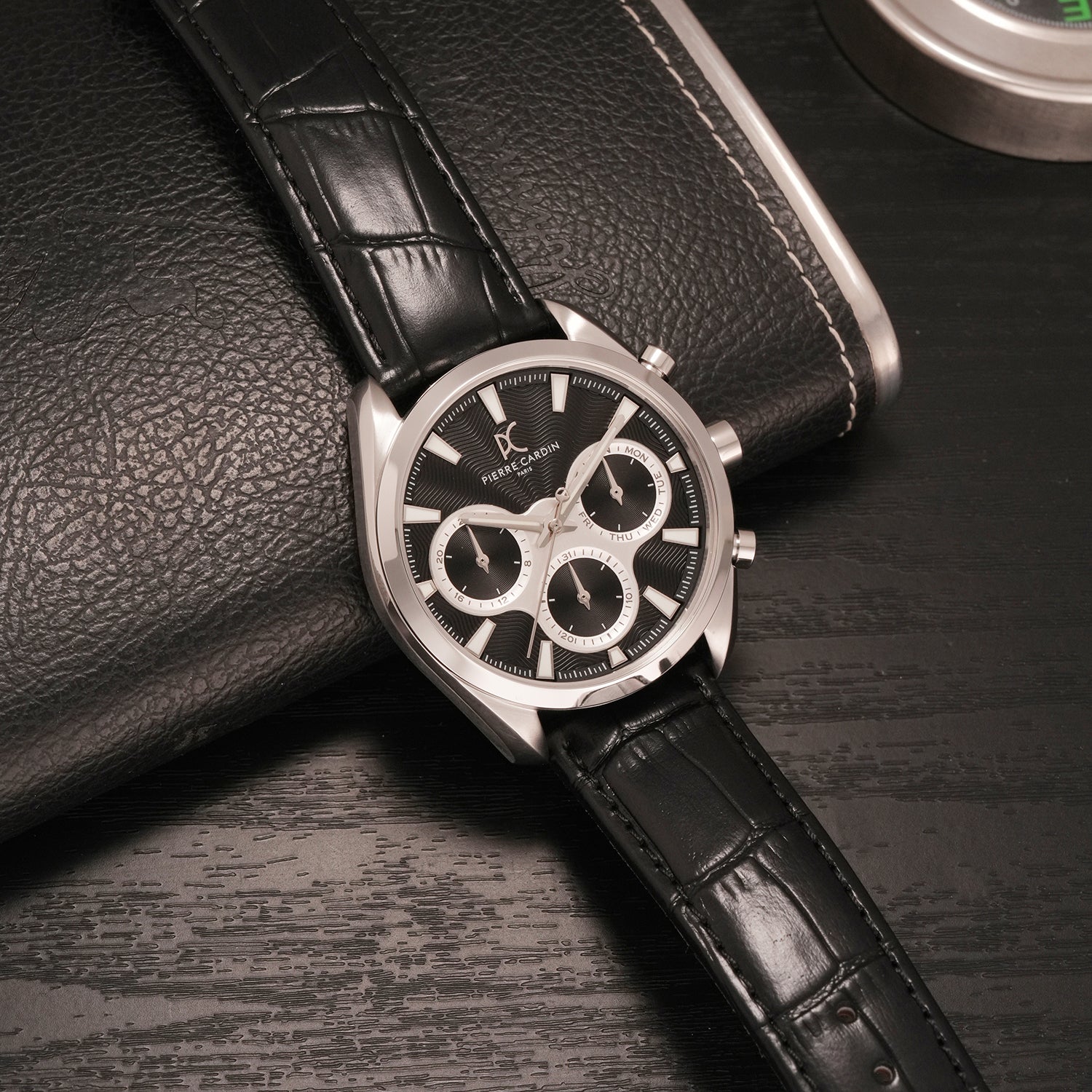 Imperium Astra Mens 40mm - Stainless Steel Silver with Black Leather Strap offers a distinct design identity and refined detailing tailored for its signature look. This 40mm timepiece features a Black/silver white dial powered by a Quartz movement from Japan. Encased in Stainless Steel Silver with a Black Leather Strap, it blends durability with refined elegance. Perfect for those who appreciate craftsmanship and everyday versatility, this watch is a modern statement piece that balances functionality and timeless appeal.