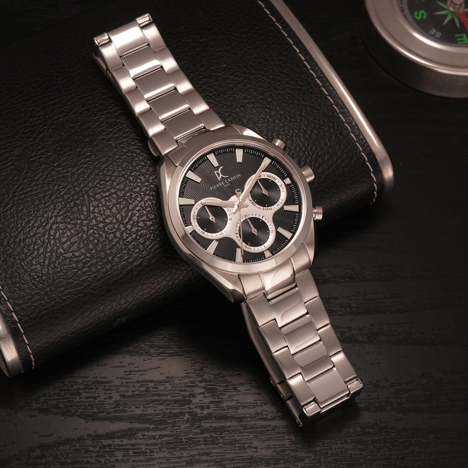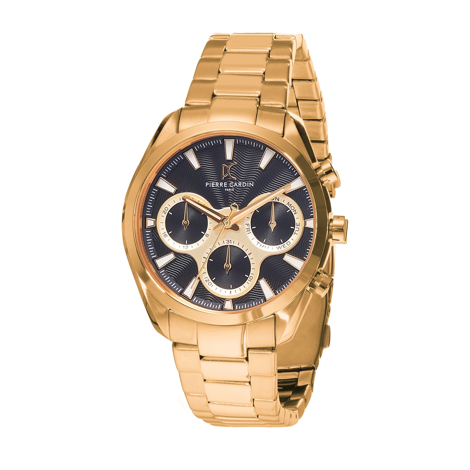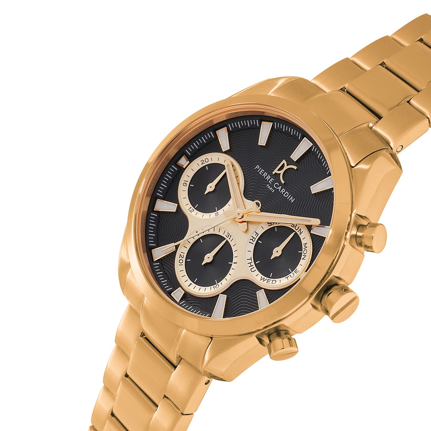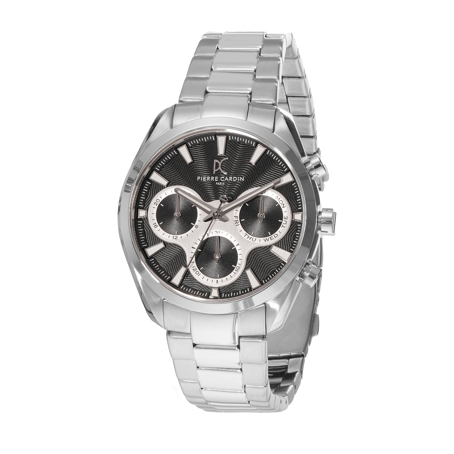 Imperium Astra is a statement-making men’s collection that combines bold Pierre Cardin design with practical multi-function timing. Defined by its strong round case, sculpted pushers and solid metal bracelet, each watch in the line has a confident, contemporary presence on the wrist. The dials play with depth and contrast through embossed textures, framed sub-dials and applied indexes, giving clear day, date and 24-hour indications at a glance. Offered in a range of metal and dial colour combinations, Imperium Astra is designed for men who want a watch that feels precise, powerful and ready for every part of their day.