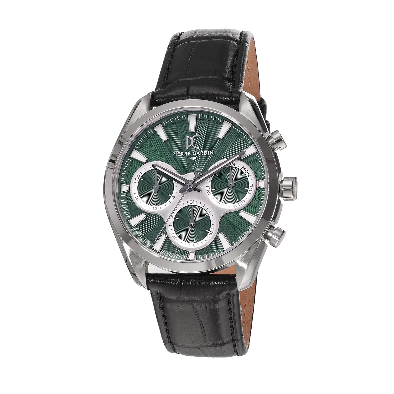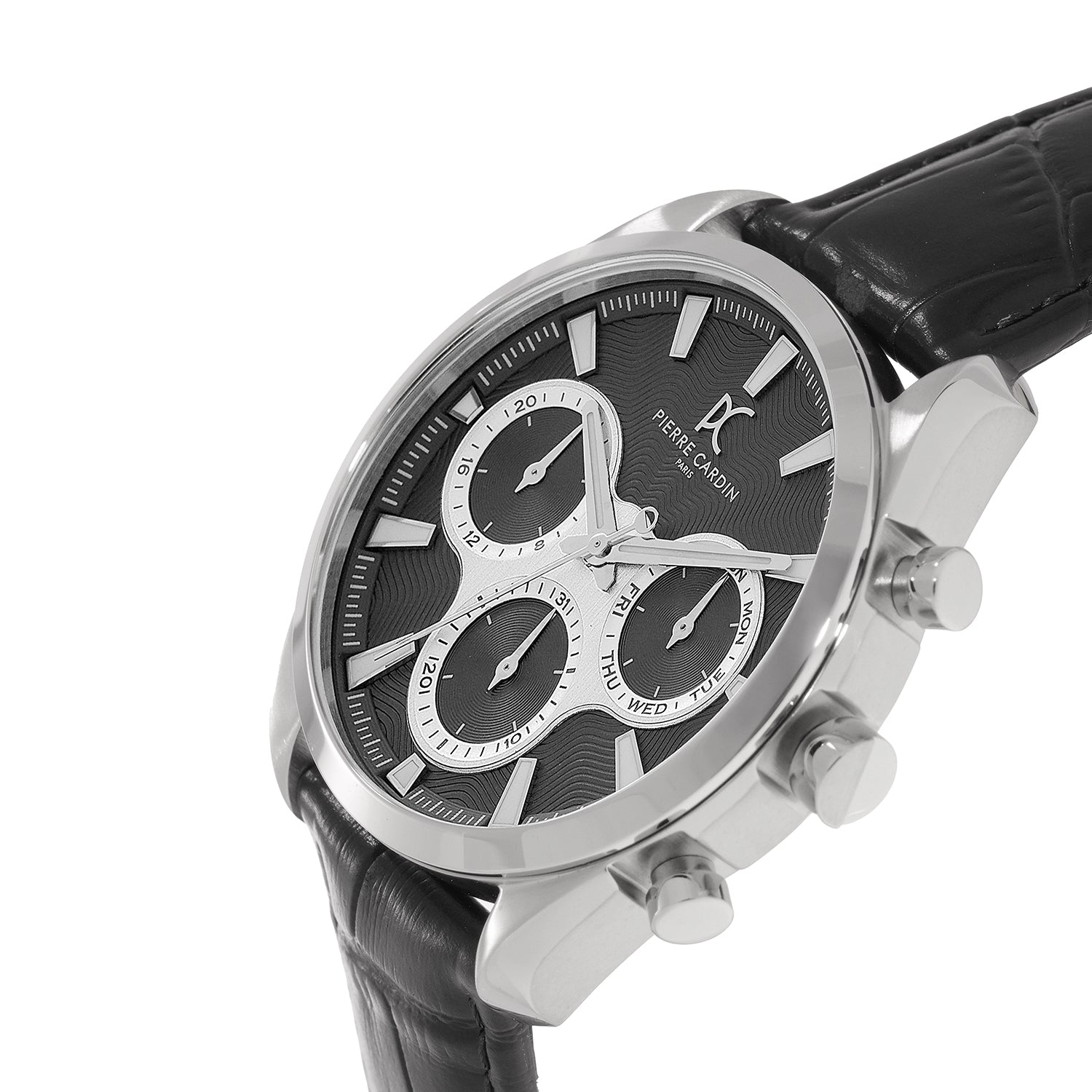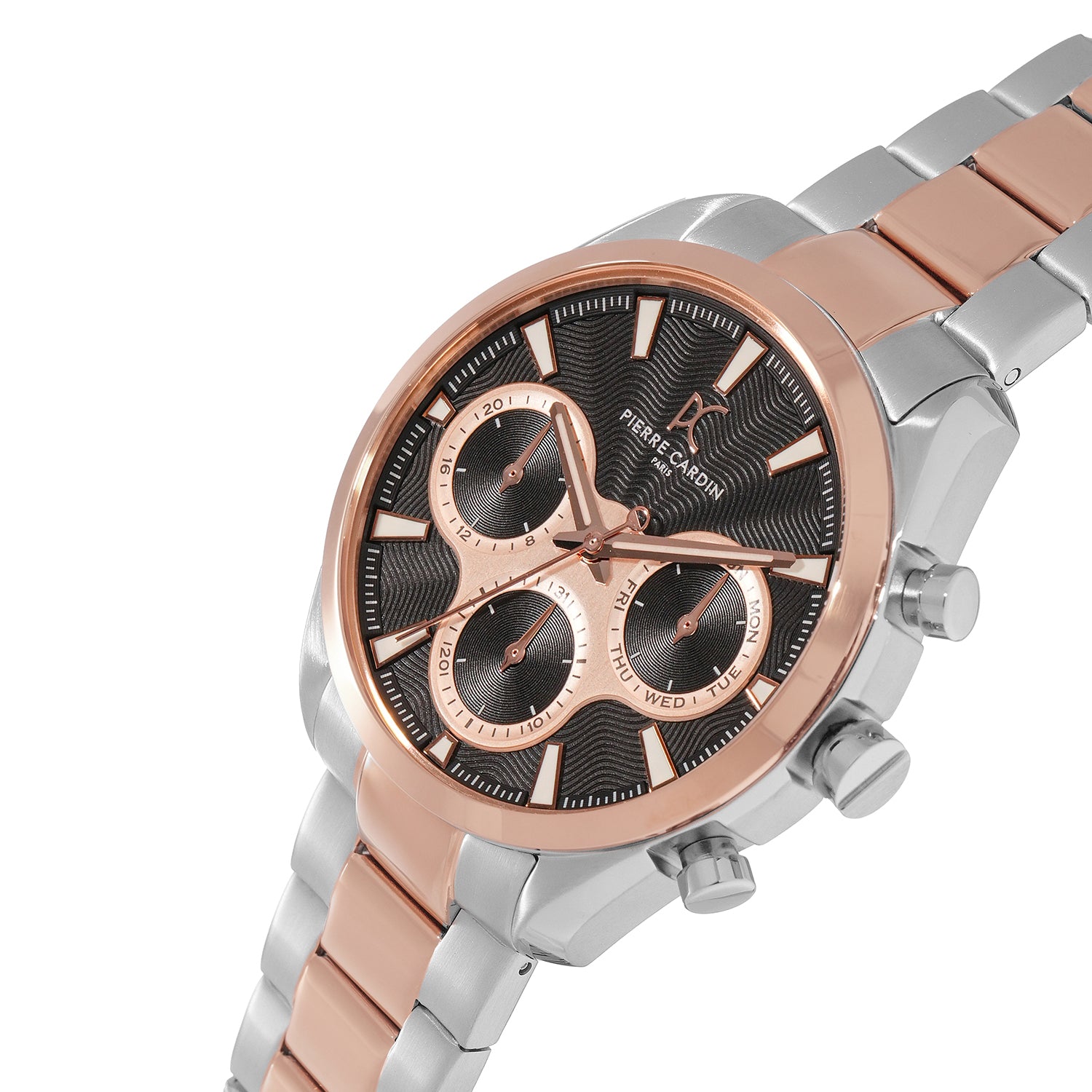 Imperium Astra is a statement-making men’s collection that combines bold Pierre Cardin design with practical multi-function timing. Defined by its strong round case, sculpted pushers and solid metal bracelet, each watch in the line has a confident, contemporary presence on the wrist. The dials play with depth and contrast through embossed textures, framed sub-dials and applied indexes, giving clear day, date and 24-hour indications at a glance. Offered in a range of metal and dial colour combinations, Imperium Astra is designed for men who want a watch that feels precise, powerful and ready for every part of their day.