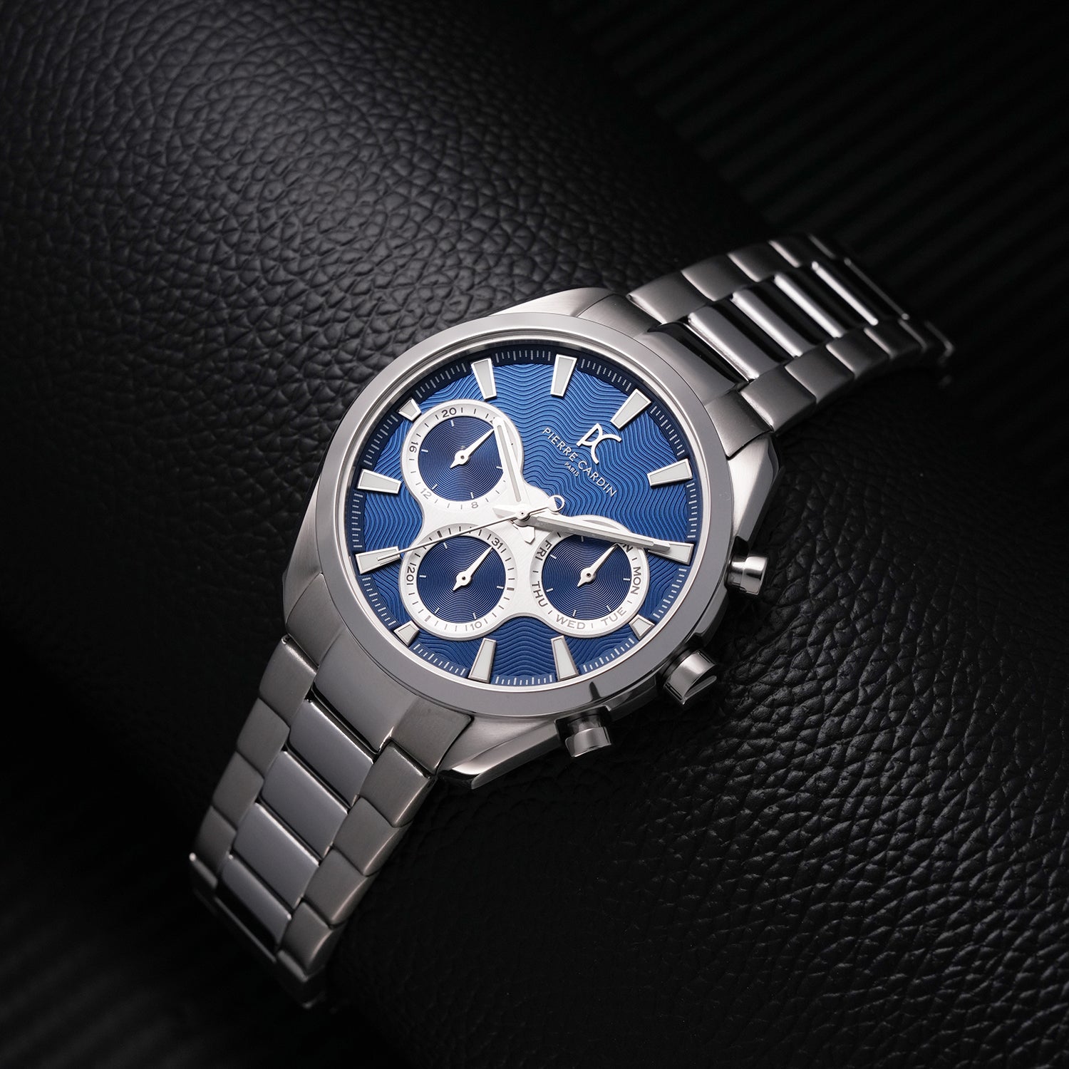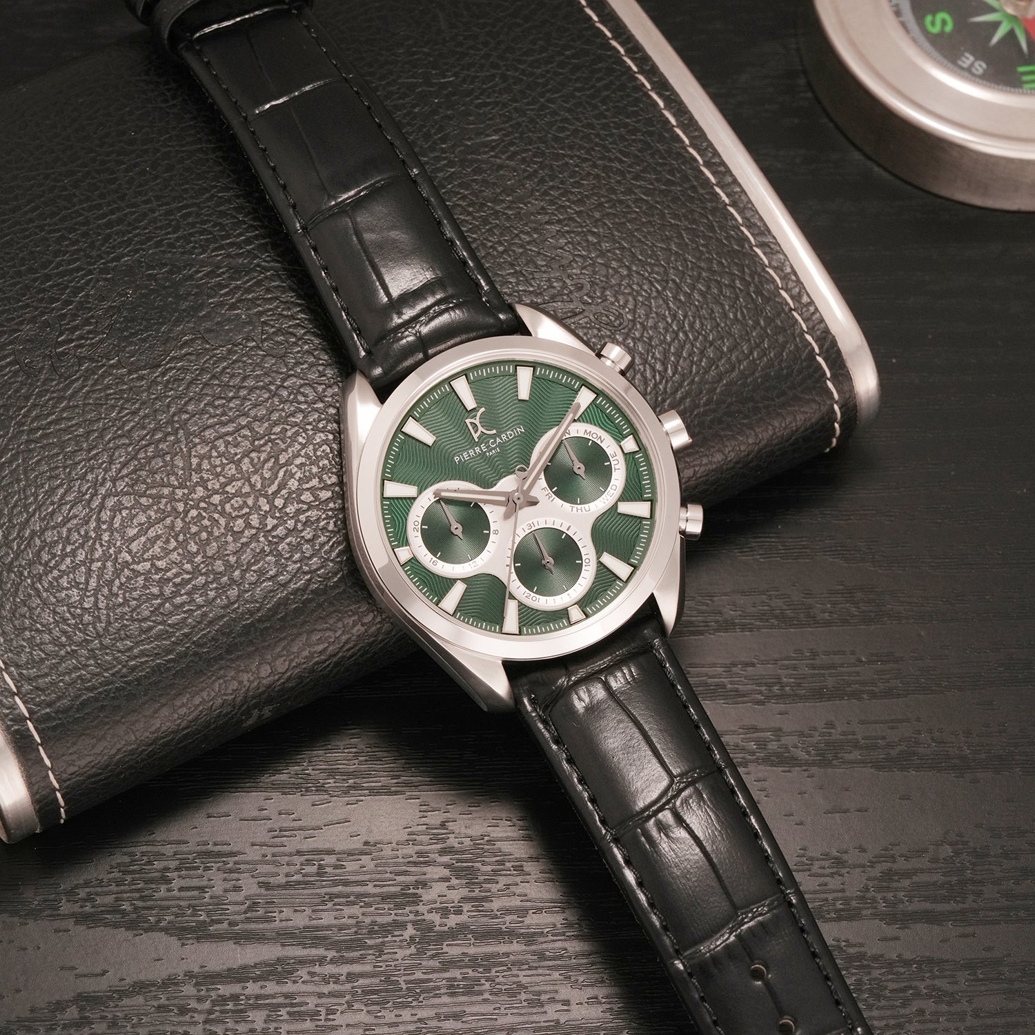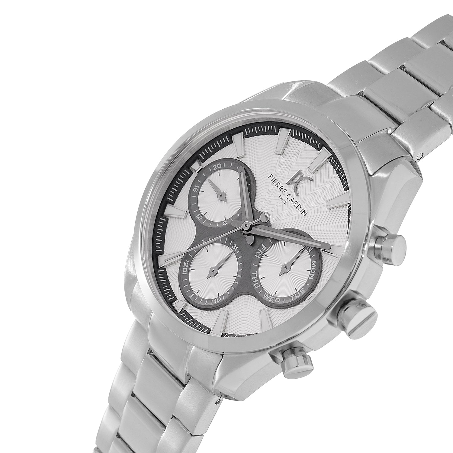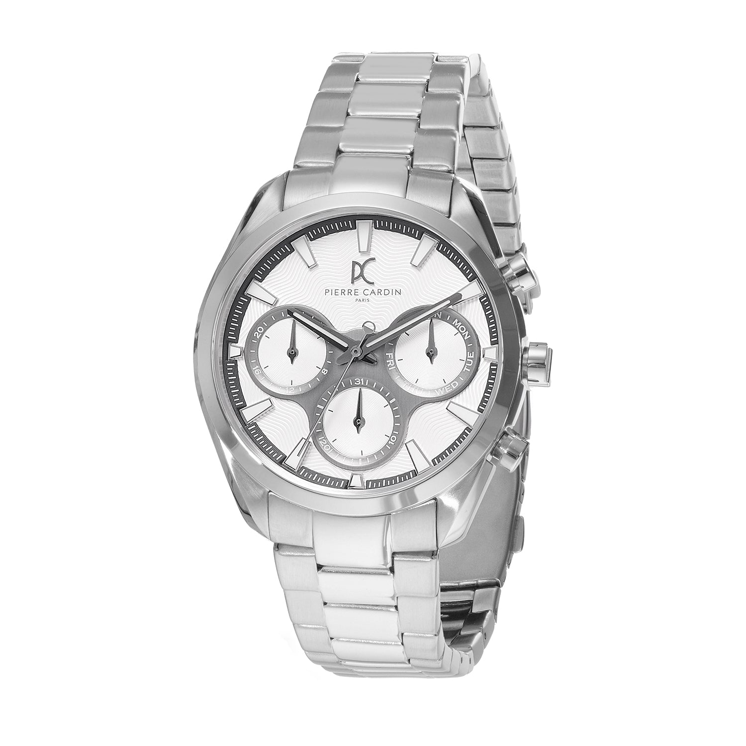 Imperium Astra is a statement-making men’s collection that combines bold Pierre Cardin design with practical multi-function timing. Defined by its strong round case, sculpted pushers and solid metal bracelet, each watch in the line has a confident, contemporary presence on the wrist. The dials play with depth and contrast through embossed textures, framed sub-dials and applied indexes, giving clear day, date and 24-hour indications at a glance. Offered in a range of metal and dial colour combinations, Imperium Astra is designed for men who want a watch that feels precise, powerful and ready for every part of their day.