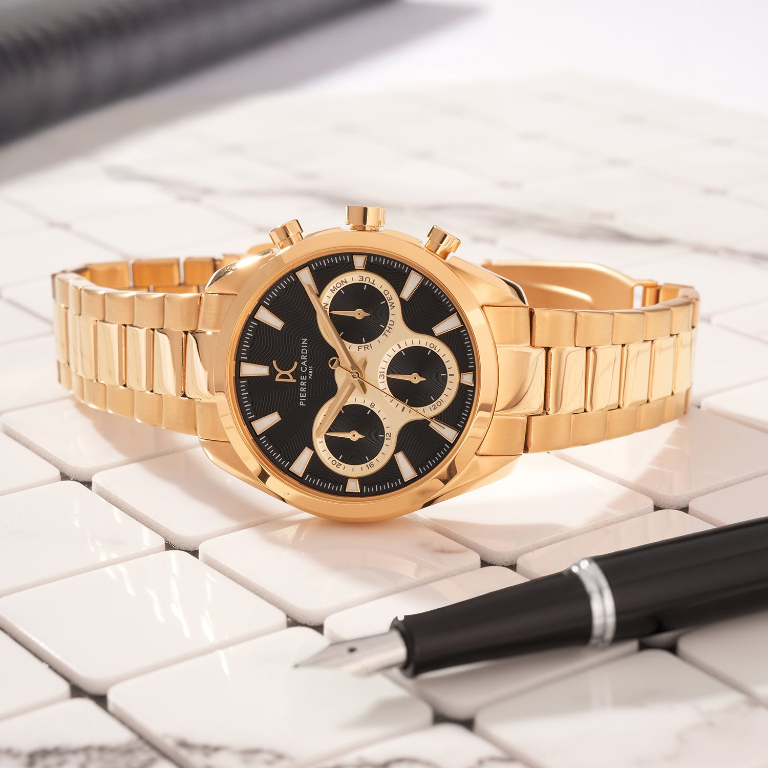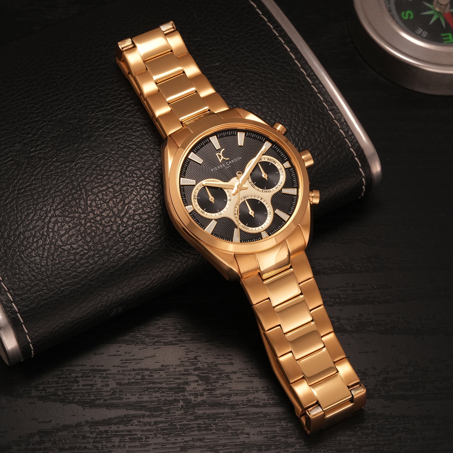 Imperium Astra Mens 40mm - Gold with Gold Metal Strap offers a distinct design identity and refined detailing tailored for its signature look. This 40mm timepiece features a BlackGold dial powered by a Quartz movement from Japan. Encased in Gold with a Gold Metal Strap, it blends durability with refined elegance. Perfect for those who appreciate craftsmanship and everyday versatility, this watch is a modern statement piece that balances functionality and timeless appeal.