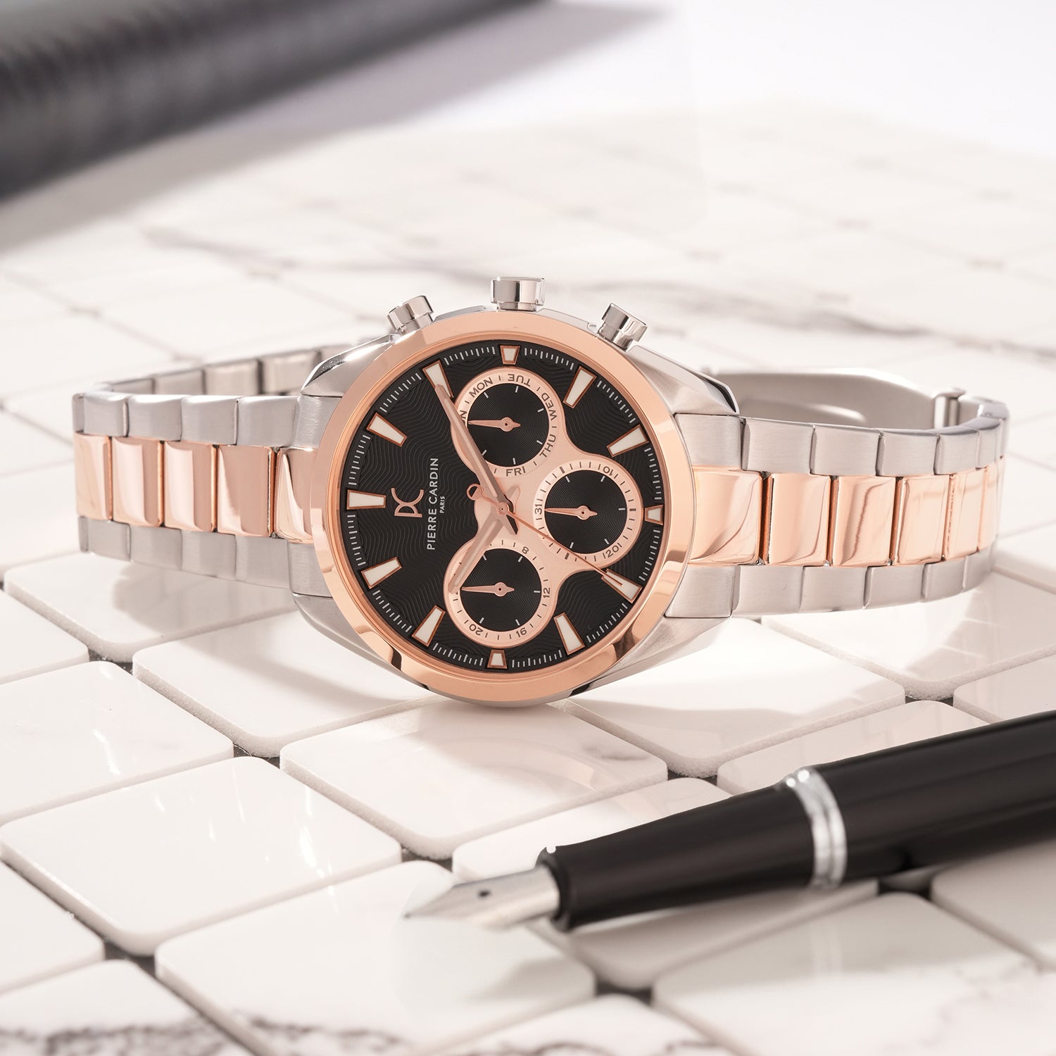 Imperium Astra Mens 40mm - Twotone Rose Gold and Silver with Twotone Rose Gold and Silver Metal Strap offers a distinct design identity and refined detailing tailored for its signature look. This 40mm timepiece features a Black/rose gold dial powered by a Quartz movement from Japan. Encased in Twotone Rose Gold and Silver with a Twotone Rose Gold and Silver Metal Strap, it blends durability with refined elegance. Perfect for those who appreciate craftsmanship and everyday versatility, this watch is a modern statement piece that balances functionality and timeless appeal.