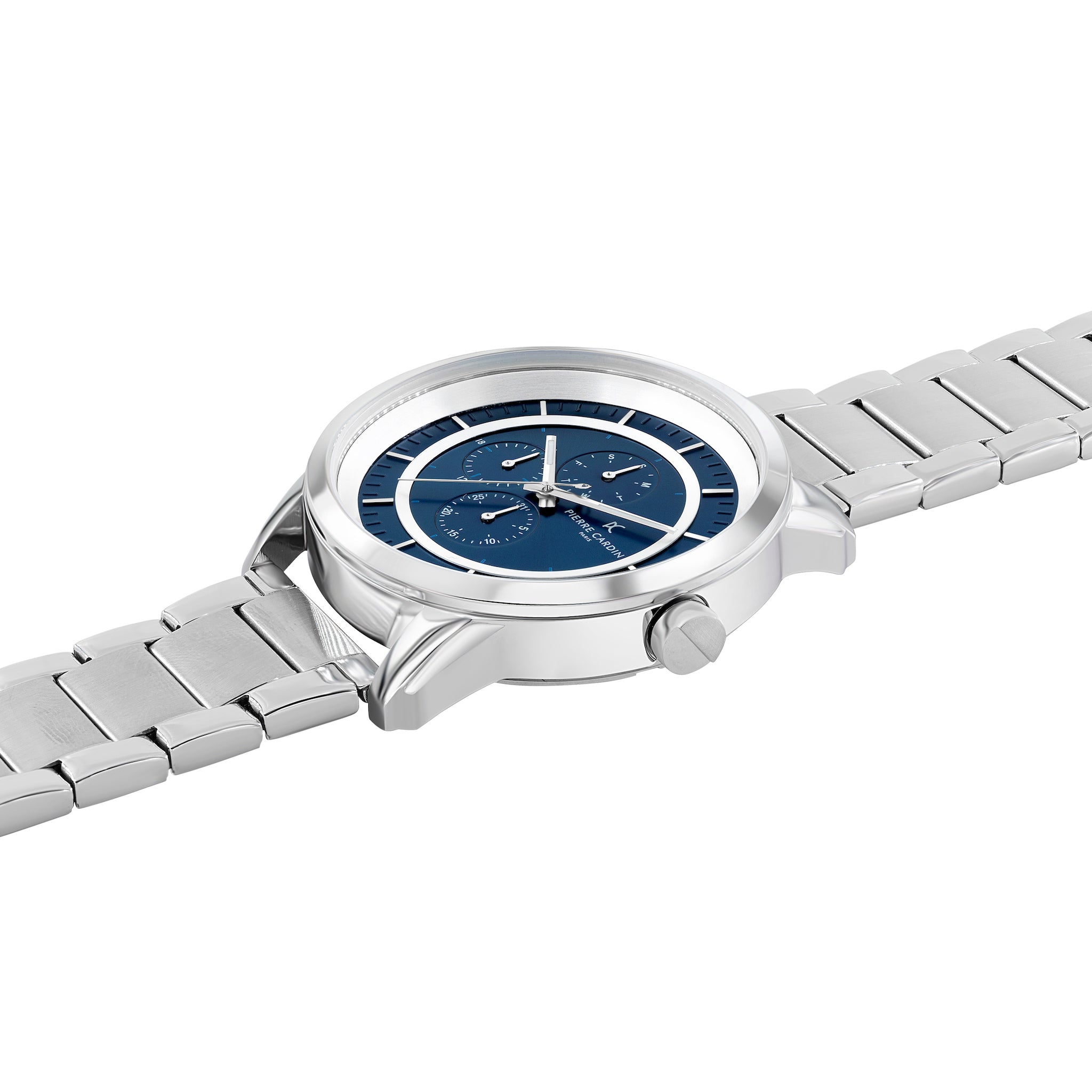 The Pierre Cardin Les Halles multi function watch for men is a stylish and practical timepiece with a sophisticated design. It features a silver case and a silver metal links strap that provide a comfortable fit and a classic look. The blue dial adds a pop of color and visual interest to the watch, making it a standout accessory.