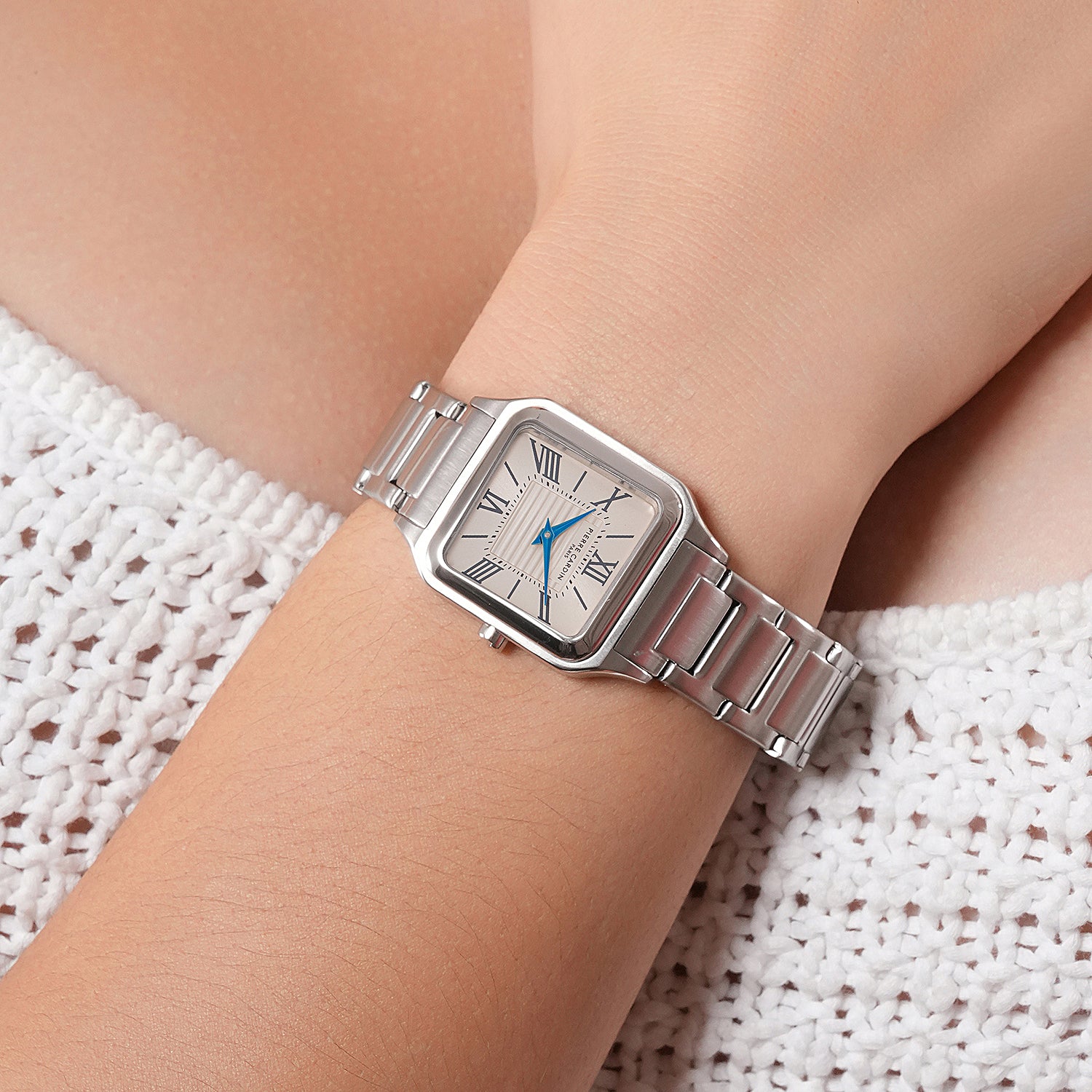 Ménilmontant Carré Womens’ Square Watch - Silver Case, Champagne Dial with Silver Metal Strap