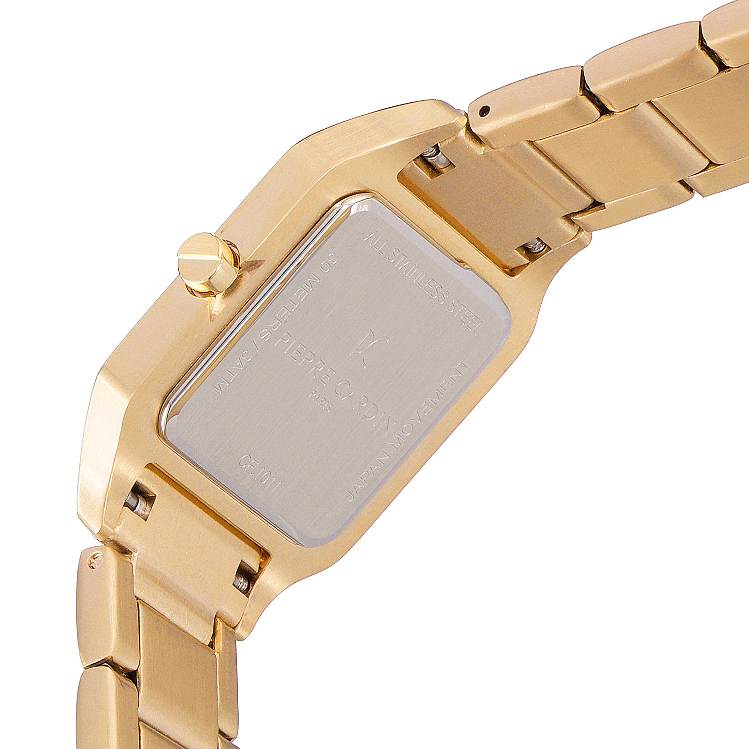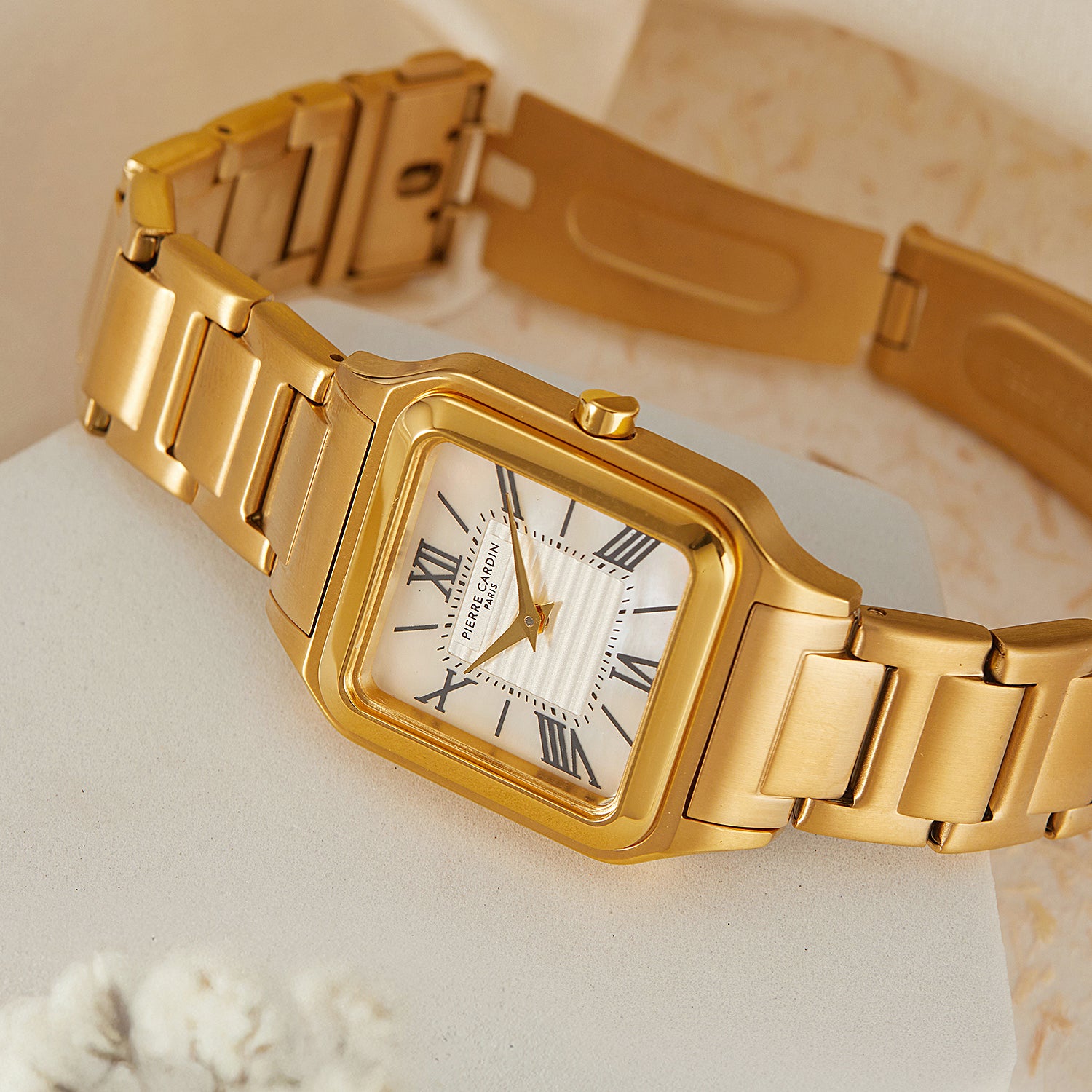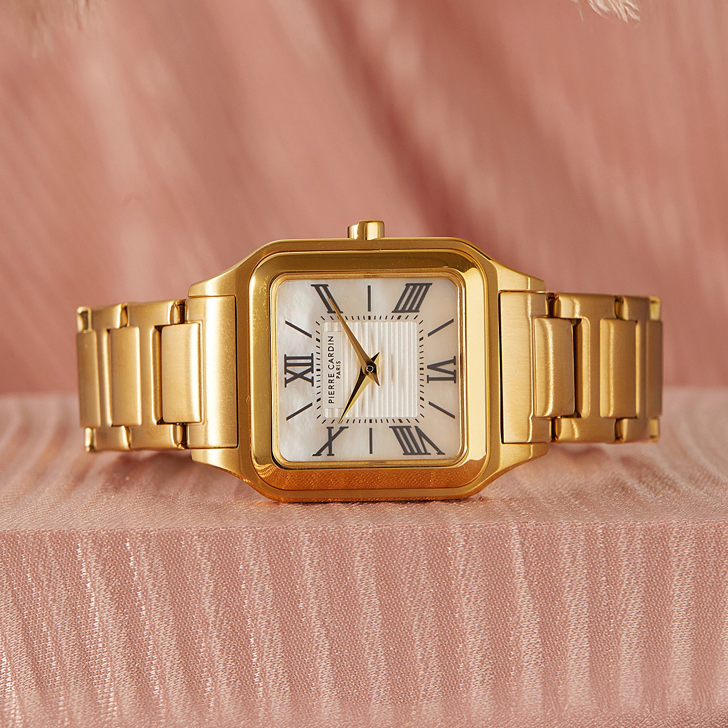 The Ménilmontant Carré women’s watch by Pierre Cardin combines classic sophistication with a contemporary edge. This elegant square-shaped timepiece, measuring 38 x 27.5 mm, features a radiant gold case and a champagne dial highlighted by delicate center lines and refined Roman numerals. Powered by a precise two-hand quartz movement, it is complemented by a luxurious gold metal strap, offering timeless style and versatility. Designed for the modern woman, the Ménilmontant Carré watch is perfect for any occasion, showcasing Pierre Cardin’s dedication to Parisian elegance and exceptional craftsmanship.