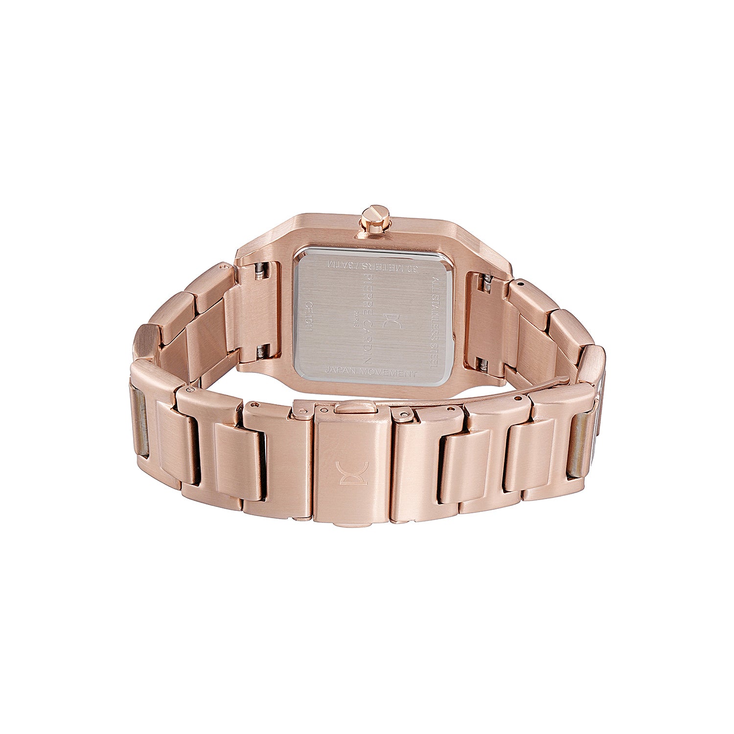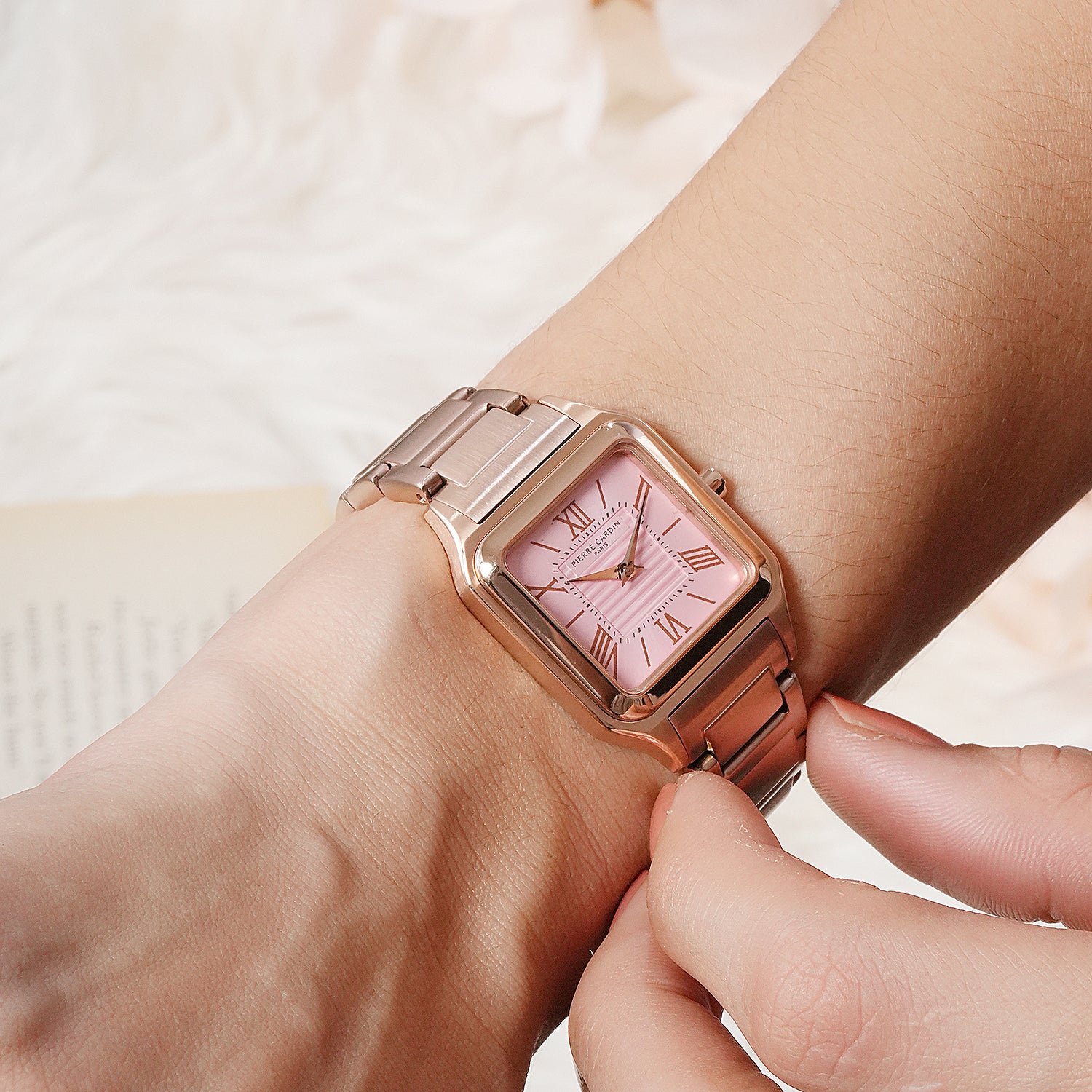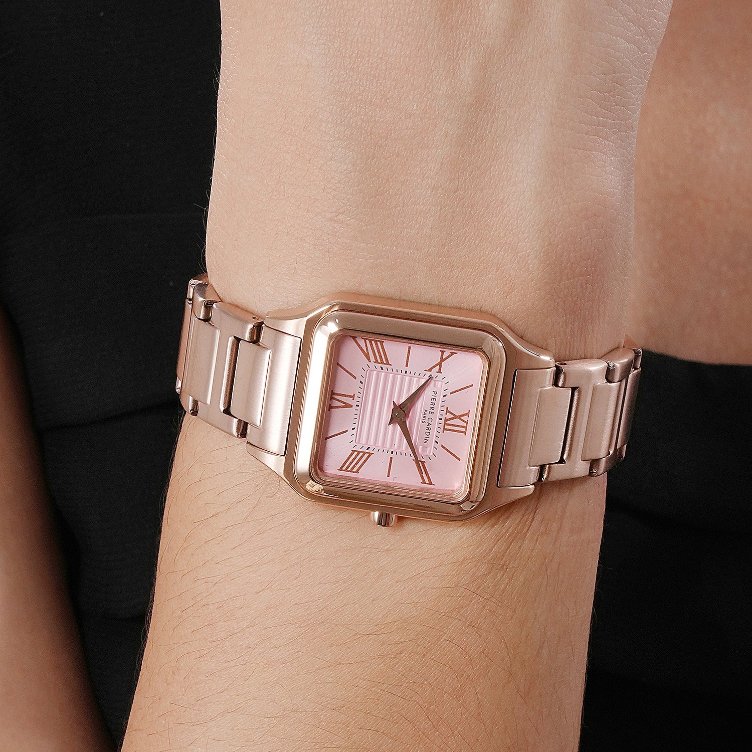 The Ménilmontant Carré women’s watch by Pierre Cardin embodies timeless sophistication with a touch of feminine charm. This square-shaped timepiece, measuring 38 x 27.5 mm, features a radiant rose gold case paired with a delicate pale pink dial adorned with elegant center lines and classic Roman numerals. Powered by a precise two-hand quartz movement, it is complemented by a luxurious rose gold metal strap, creating a refined and versatile look. Perfect for the modern woman, the Ménilmontant Carré watch showcases Pierre Cardin’s dedication to Parisian elegance and exceptional craftsmanship.
