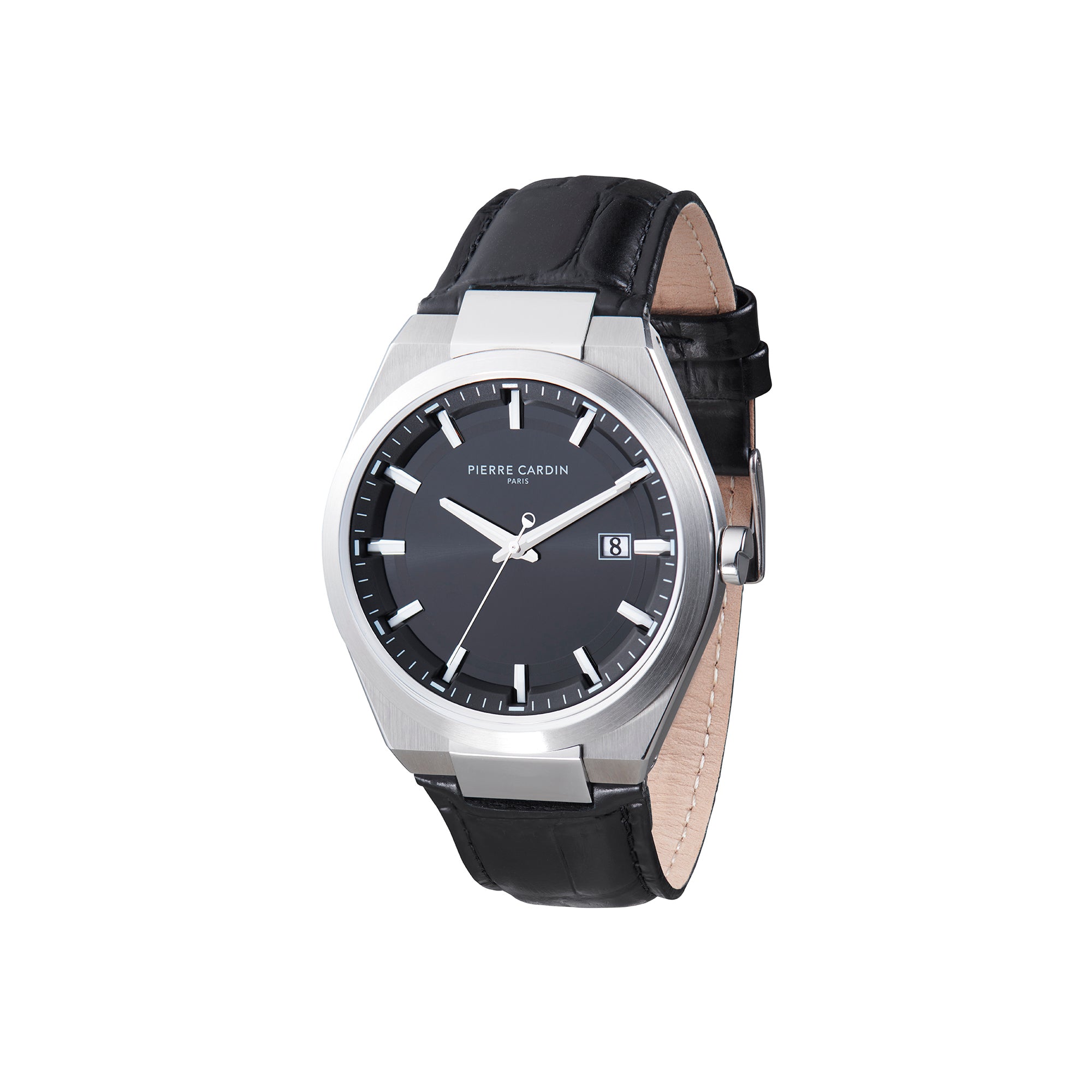Batignolles Robust Stainless Steel watch with Black Dial with Black Leather Strap