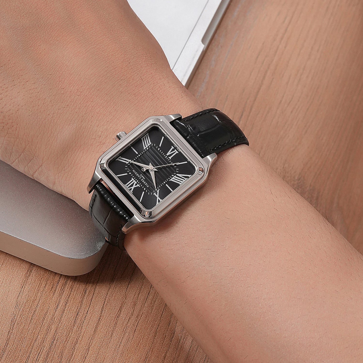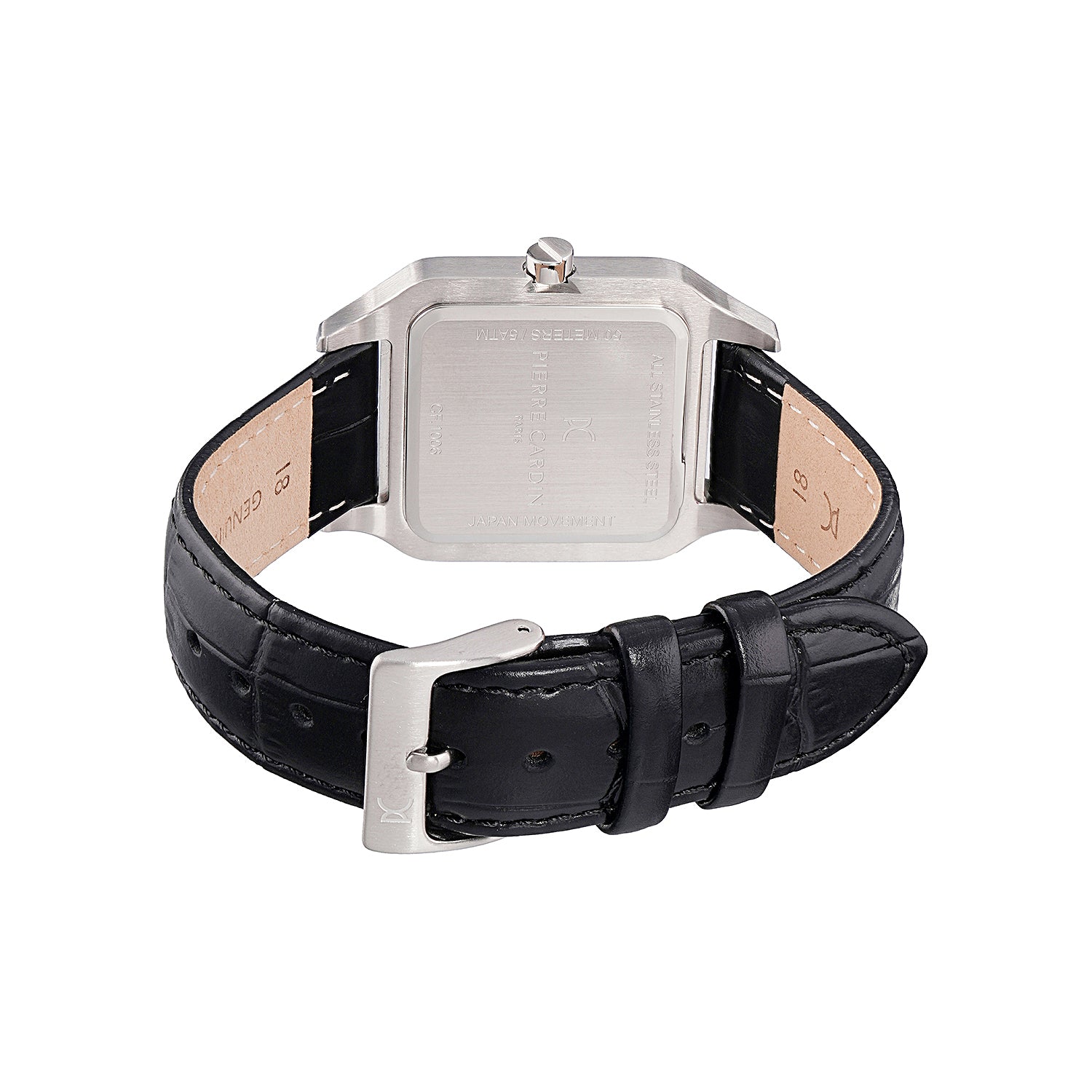 Introducing the Ménilmontant Carré men’s watch, a distinctive addition to Pierre Cardin’s latest collection that combines bold design with refined elegance. This square-shaped timepiece features a polished silver case, a sophisticated black dial, and a classic black leather strap. Crafted for the modern man who values unique style and quality, the Ménilmontant Carré watch is perfect for making a statement while complementing any attire. A blend of Parisian charm and contemporary craftsmanship, this watch is an exceptional choice for those who appreciate timeless sophistication.