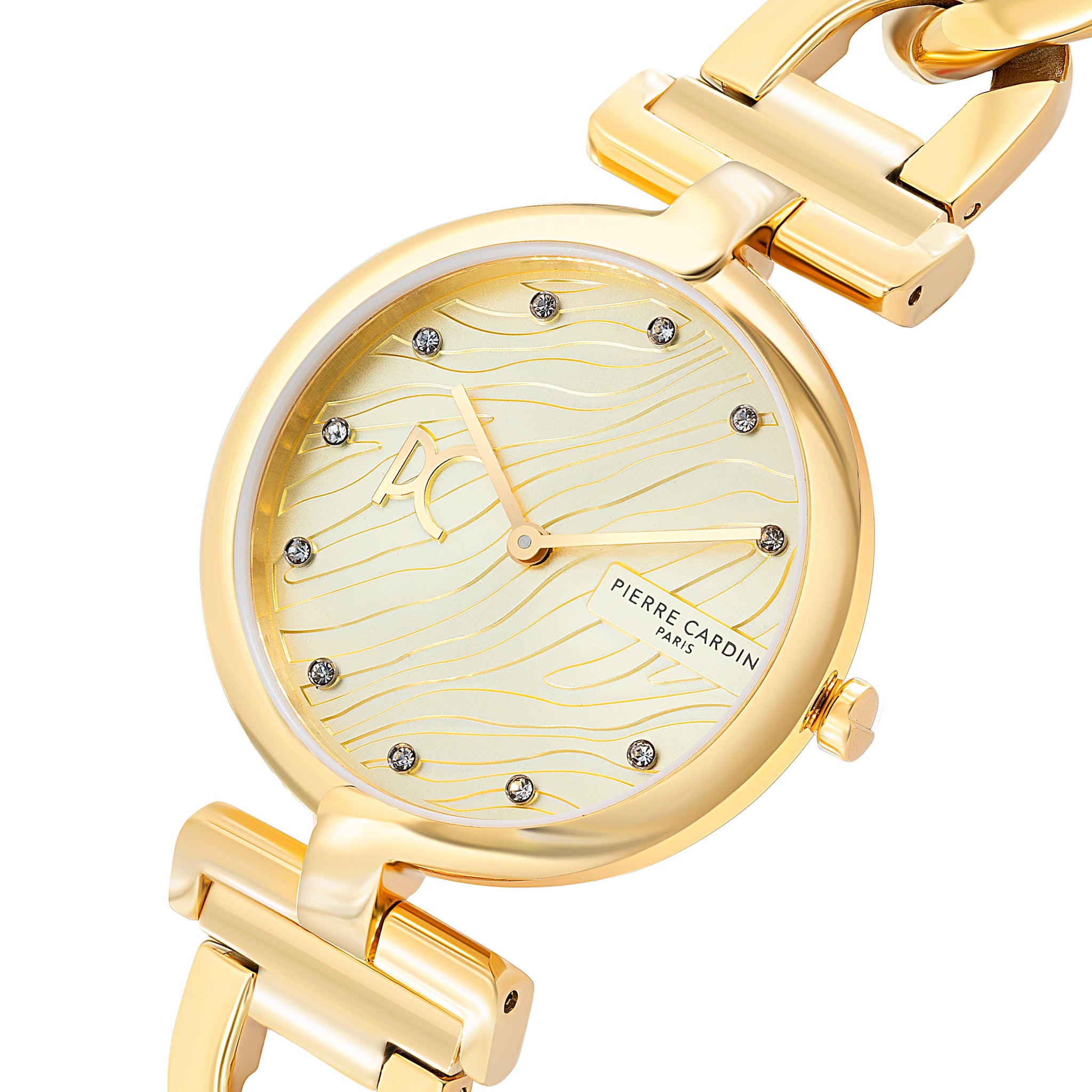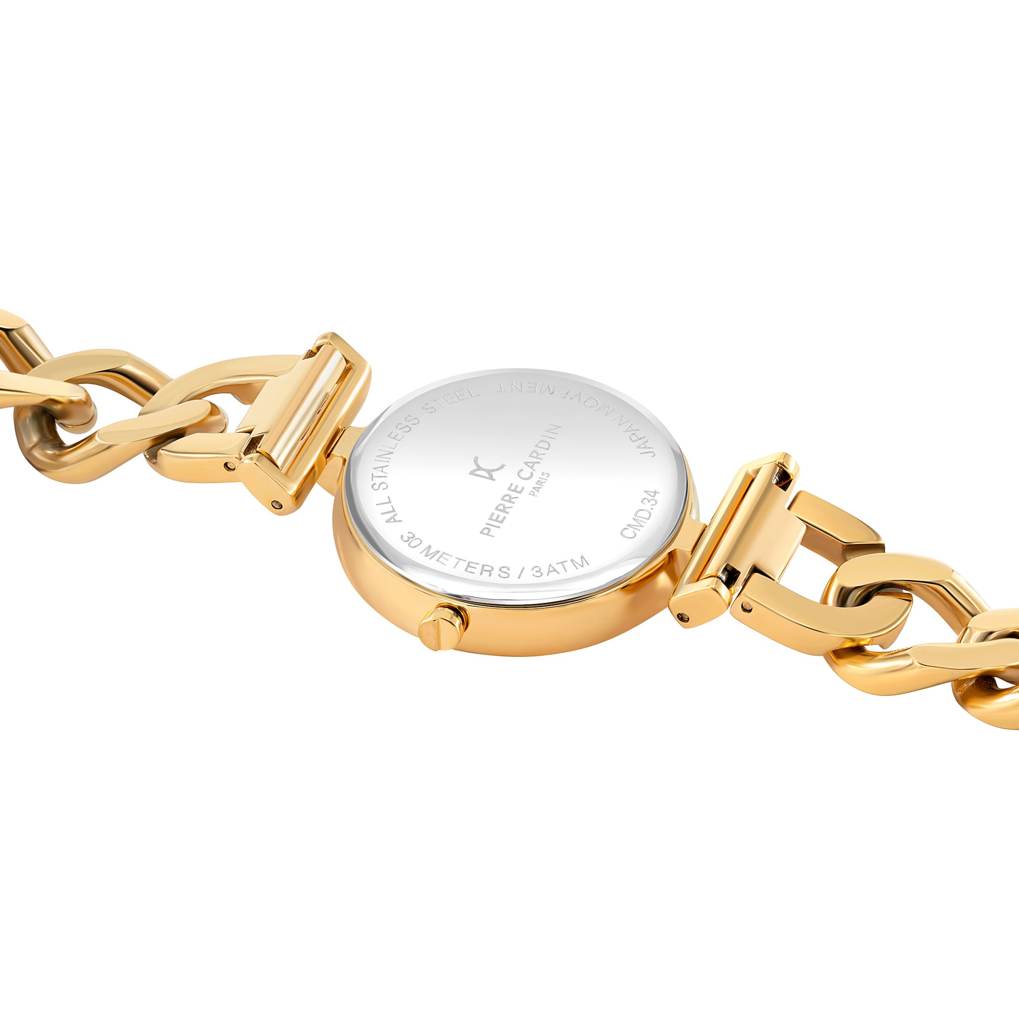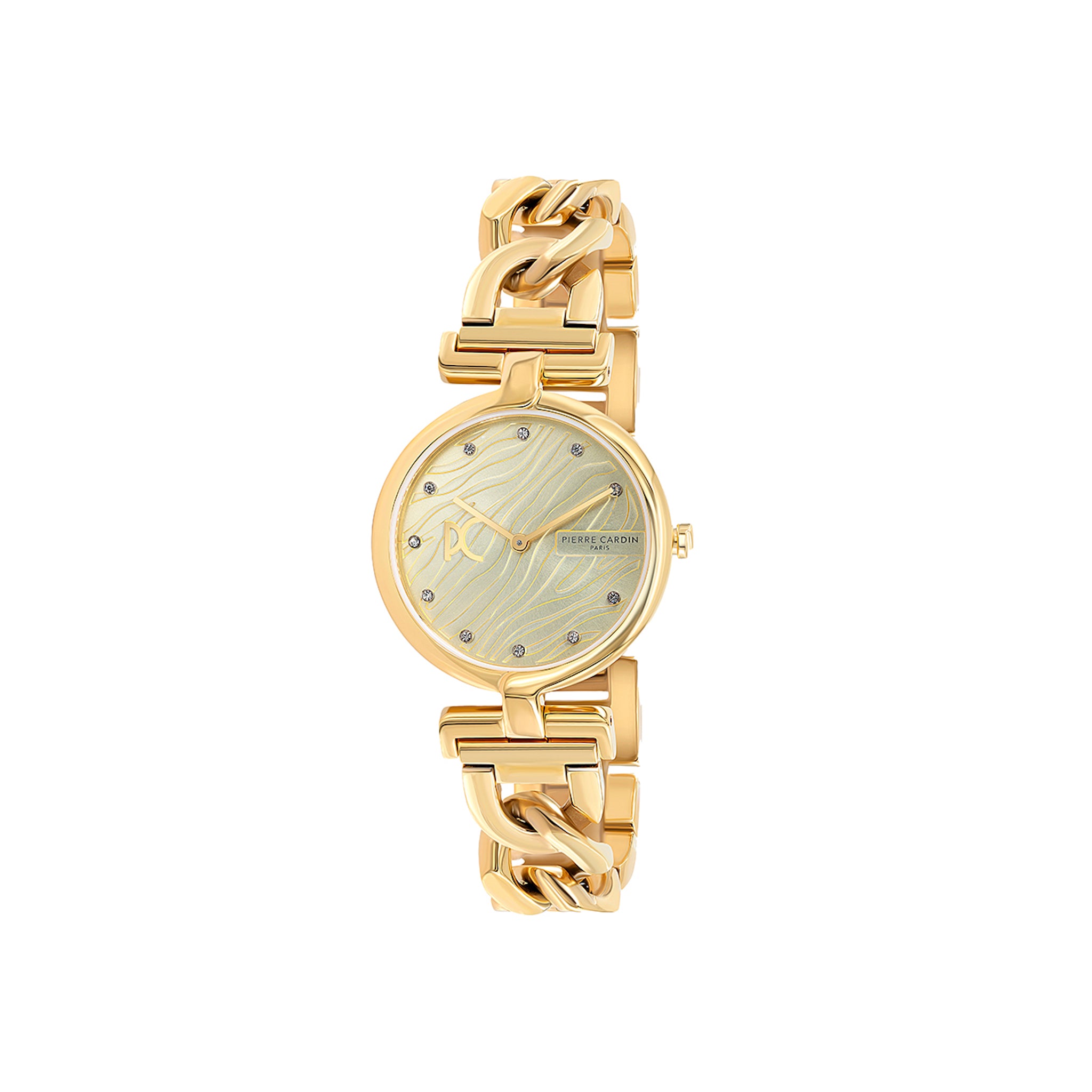 Flawless and radiant the Madeleine patterned dial gold chain metal link strap watch delivers an unforgettable impact with its wonderful modern design. The elegant metal strap combined with a bold medium-sized dial and subtle fluidic design of the gold case renders this watch unforgettable. Featuring patterned dial finished with minimalist watch indices and hands, ensure effortlessly graceful monochrome look.