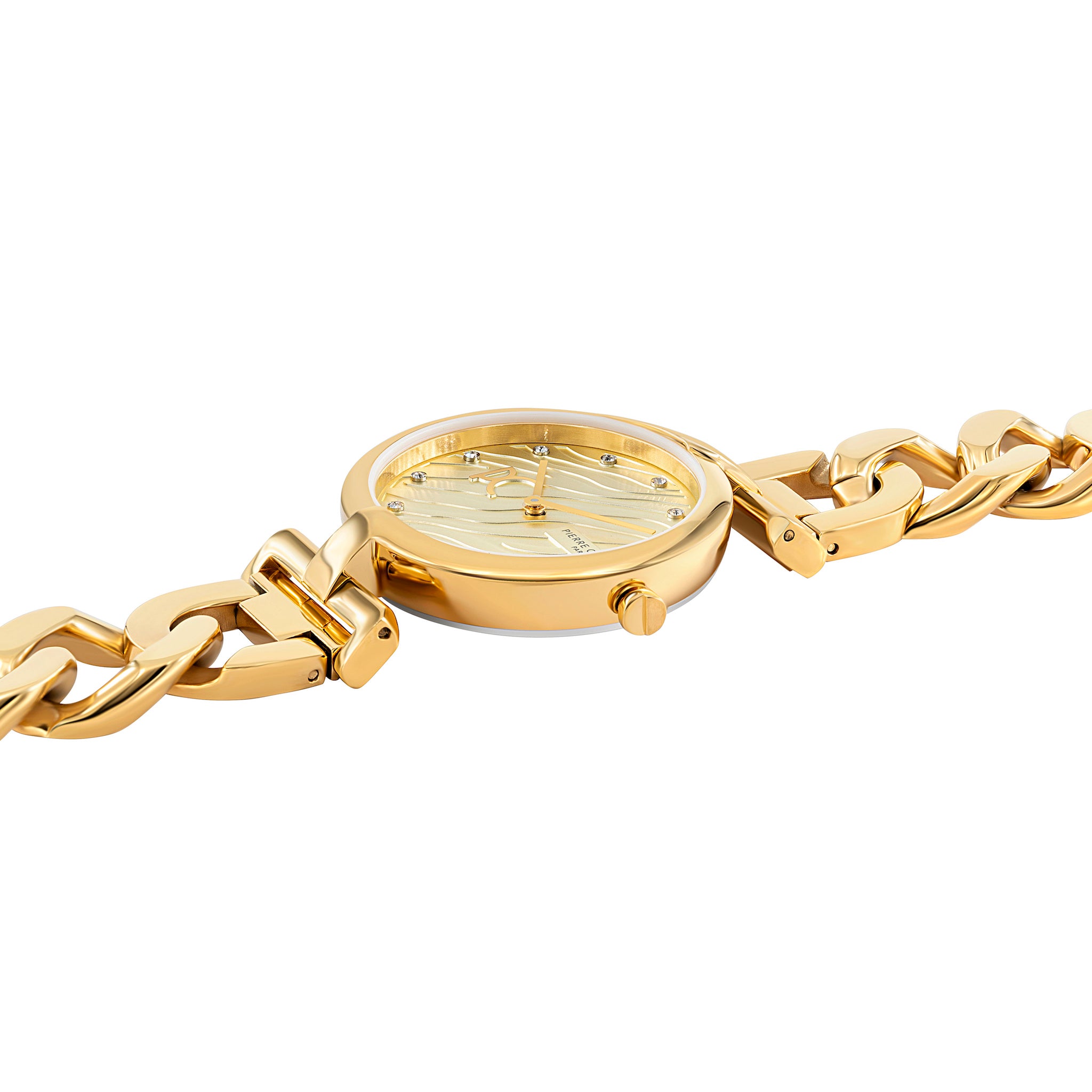 Madeleine Patterned Dial Gold Chain Link Metal Band Watch