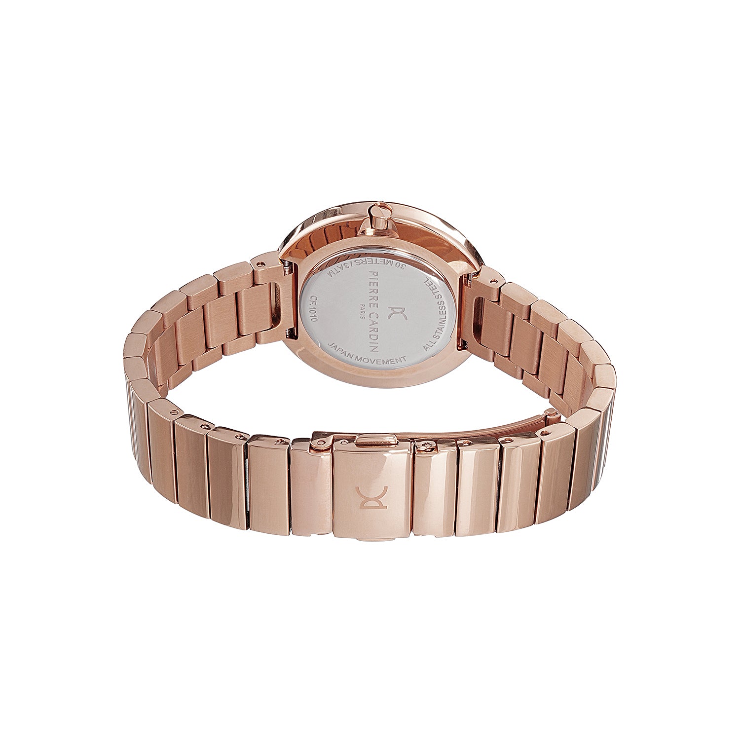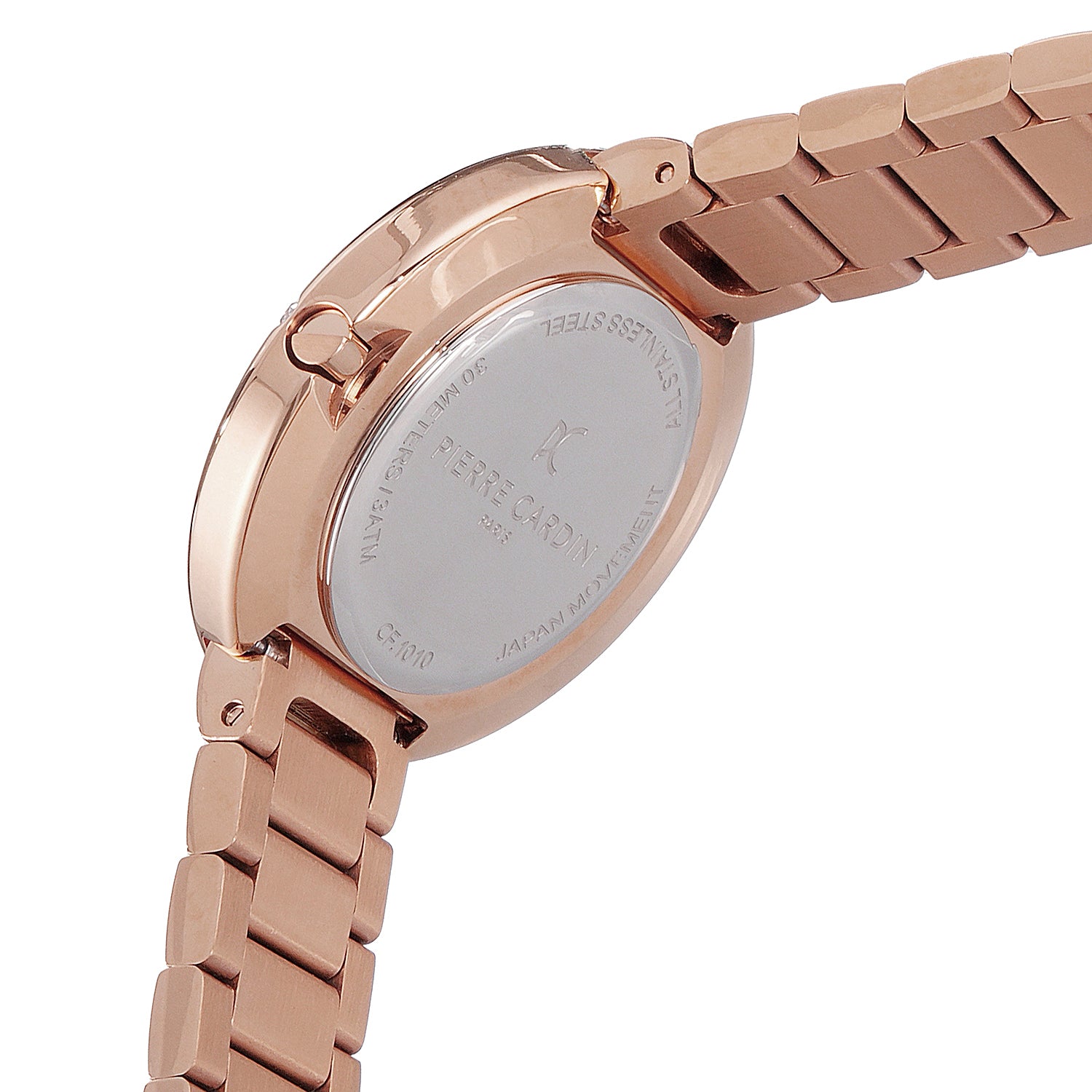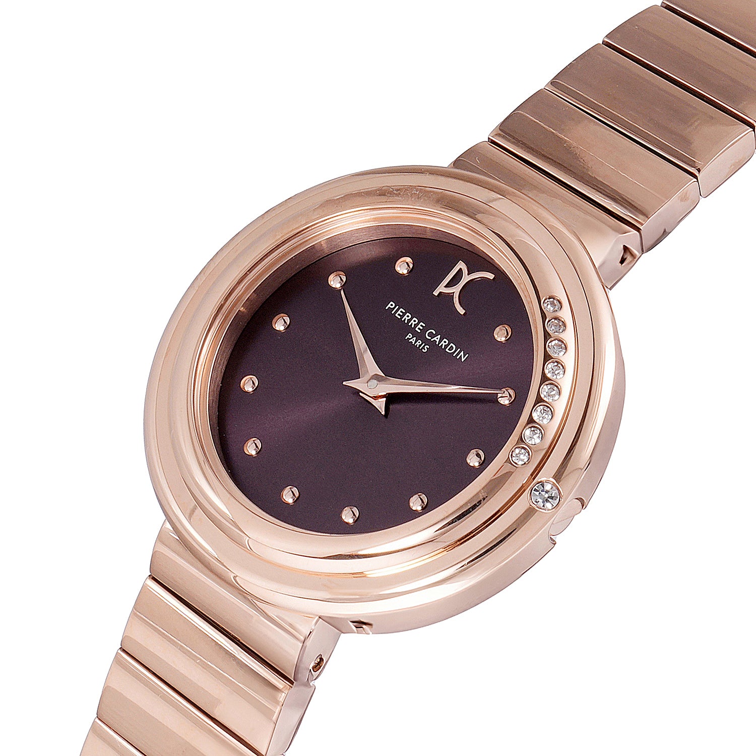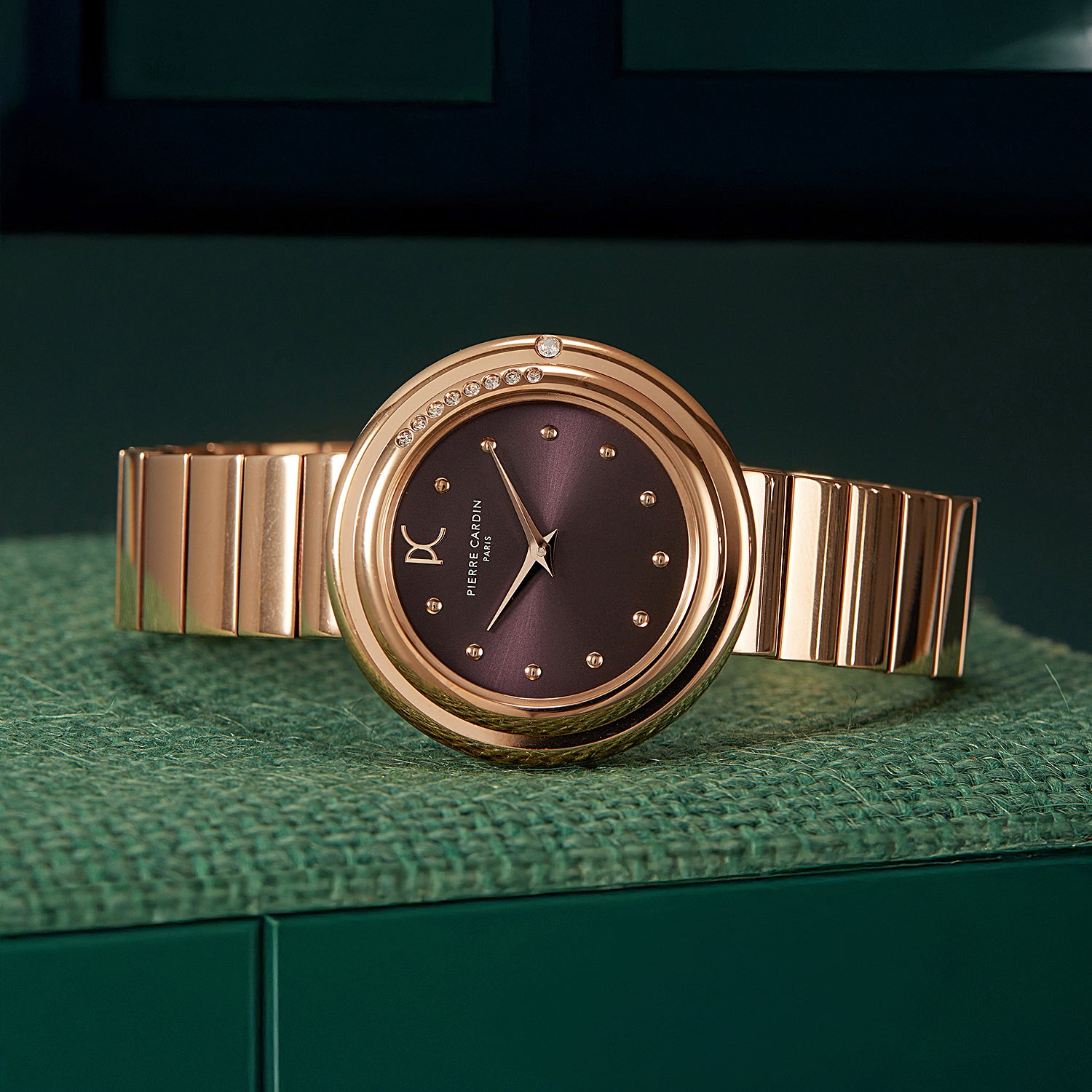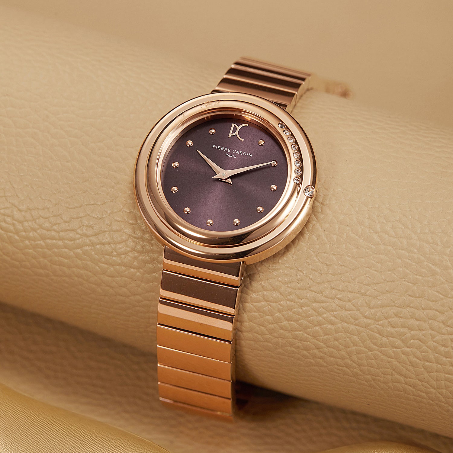 The Passy Météore collection by Pierre Cardin exudes sophistication with a touch of bold elegance. This exquisite 32mm ladies’ watch features a luxurious rose gold case, a crystal-adorned bezel, and a rich plum dial accented with sparkling crystals. Its unique metal link strap adds a modern flair, while the hidden crown creates a clean, seamless design. Powered by a precise two-hand quartz movement, the Passy Météore watch is a perfect blend of Parisian charm and contemporary style, ideal for any occasion.