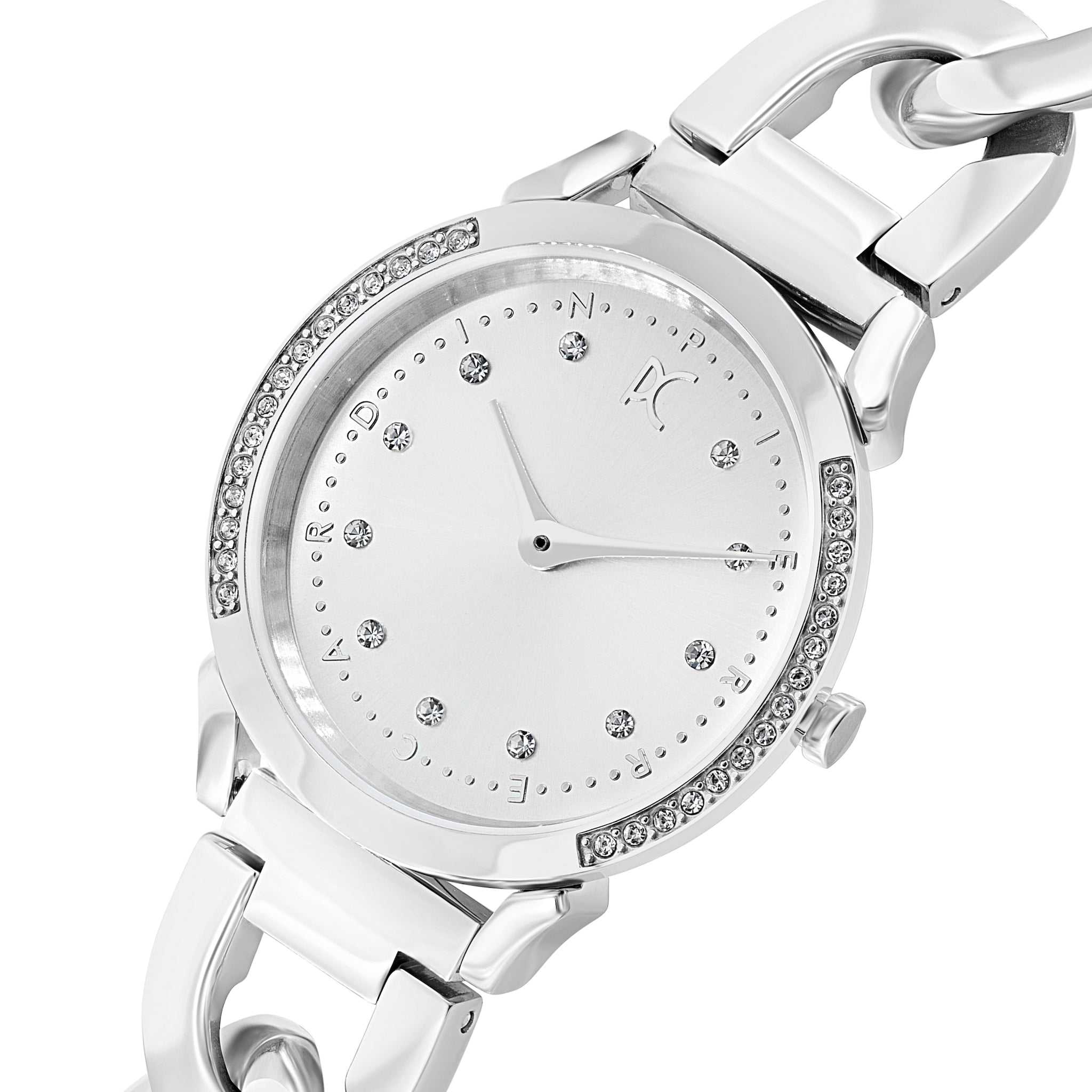 The Pigalle stainless steel chain link strap watch is the perfect heritage tribute to the iconic style of French designer, Pierre Cardin, as well as the fashionable inspiration of the famous Pigalle district. Designed with a bold silver tone stainless steel chain link metal strap, a striking polished silver tone case and a silver dial with crystals and silver tone watch hands, this on-trend women’s timepiece is destined to become a fashion statement accessory.