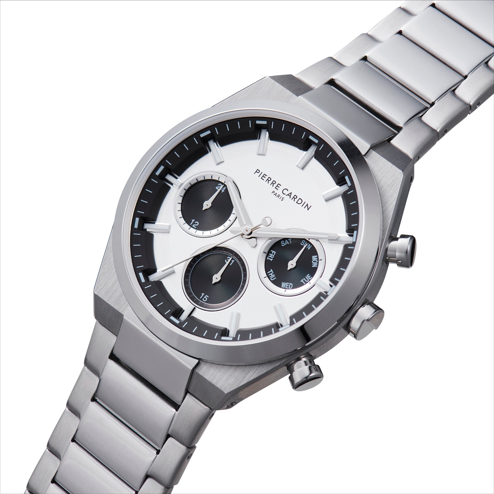 Batignolles Influential Multifunction watch with White Panda Dial with a Metal Links Strap