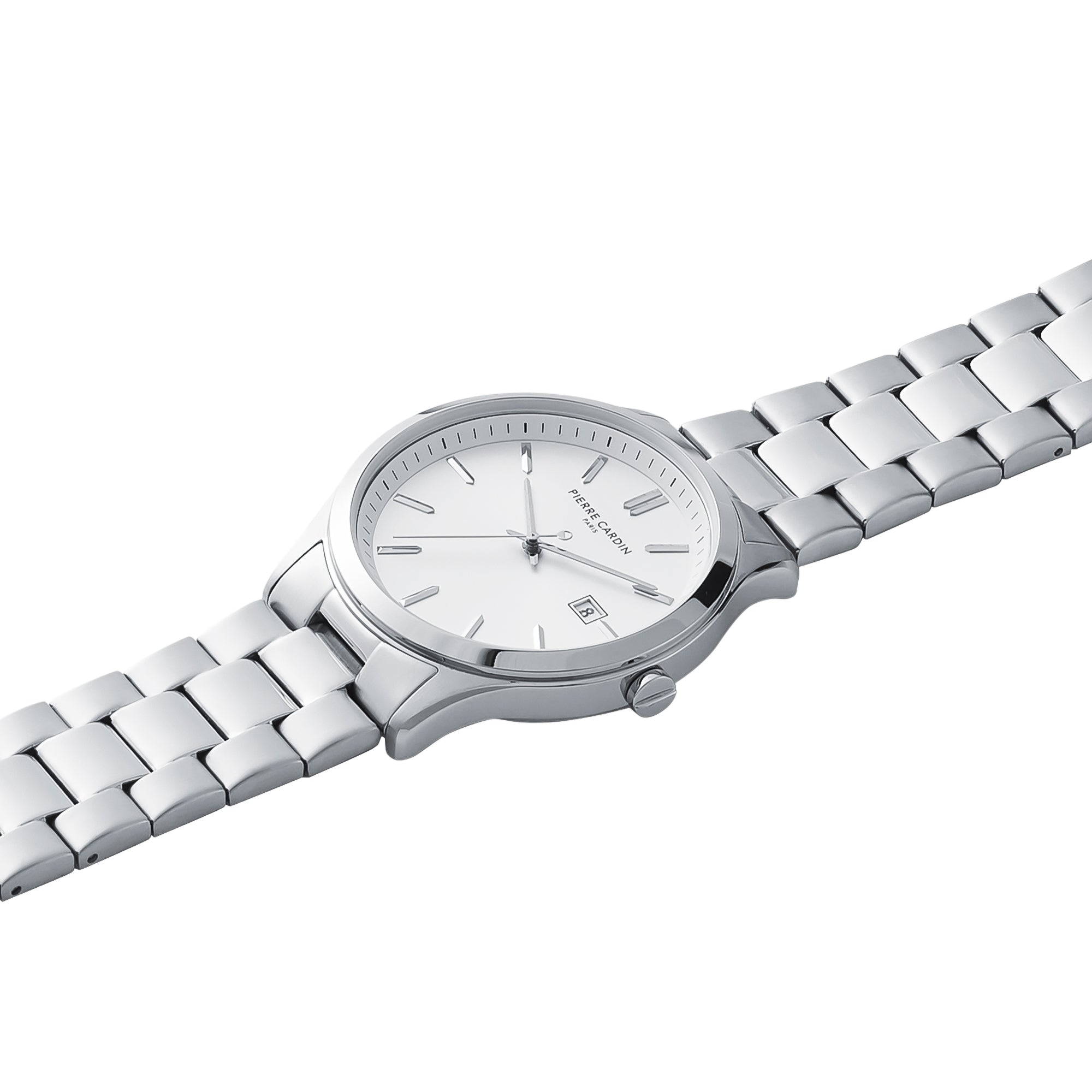 Épinettes Essential Stainless Steel Watch with Silver Dial and Metal Links Strap