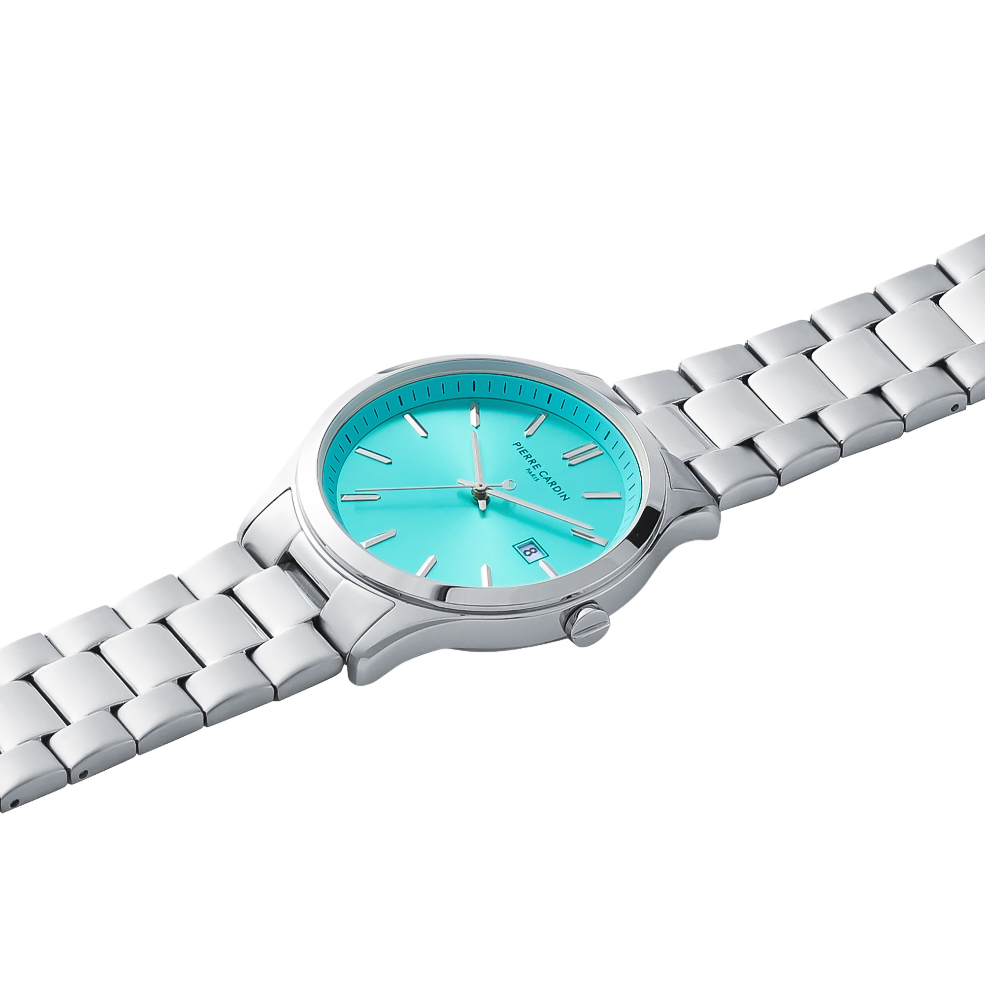 Épinettes Essential Stainless Steel Watch with Tiffany Blue Dial and Metal Links Strap