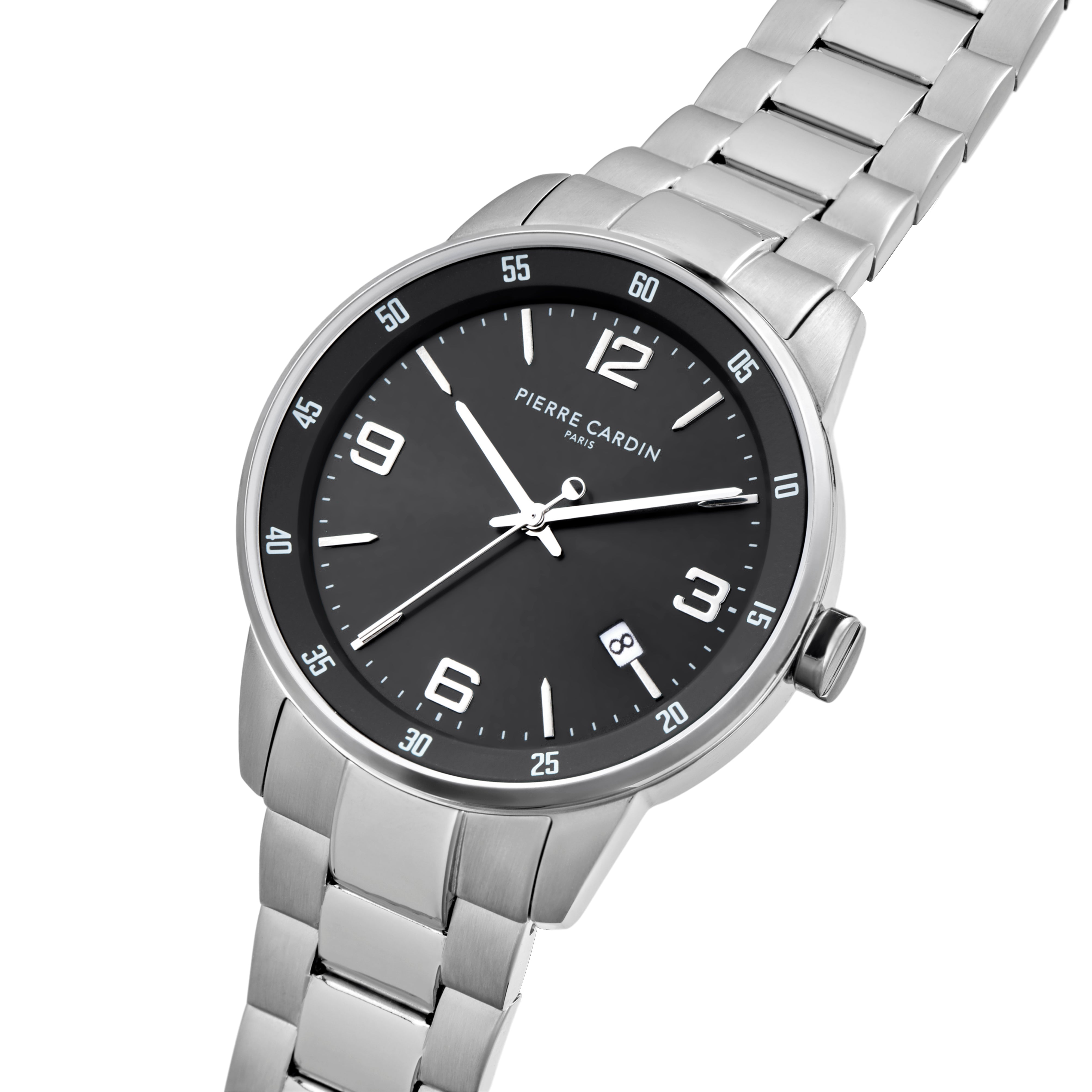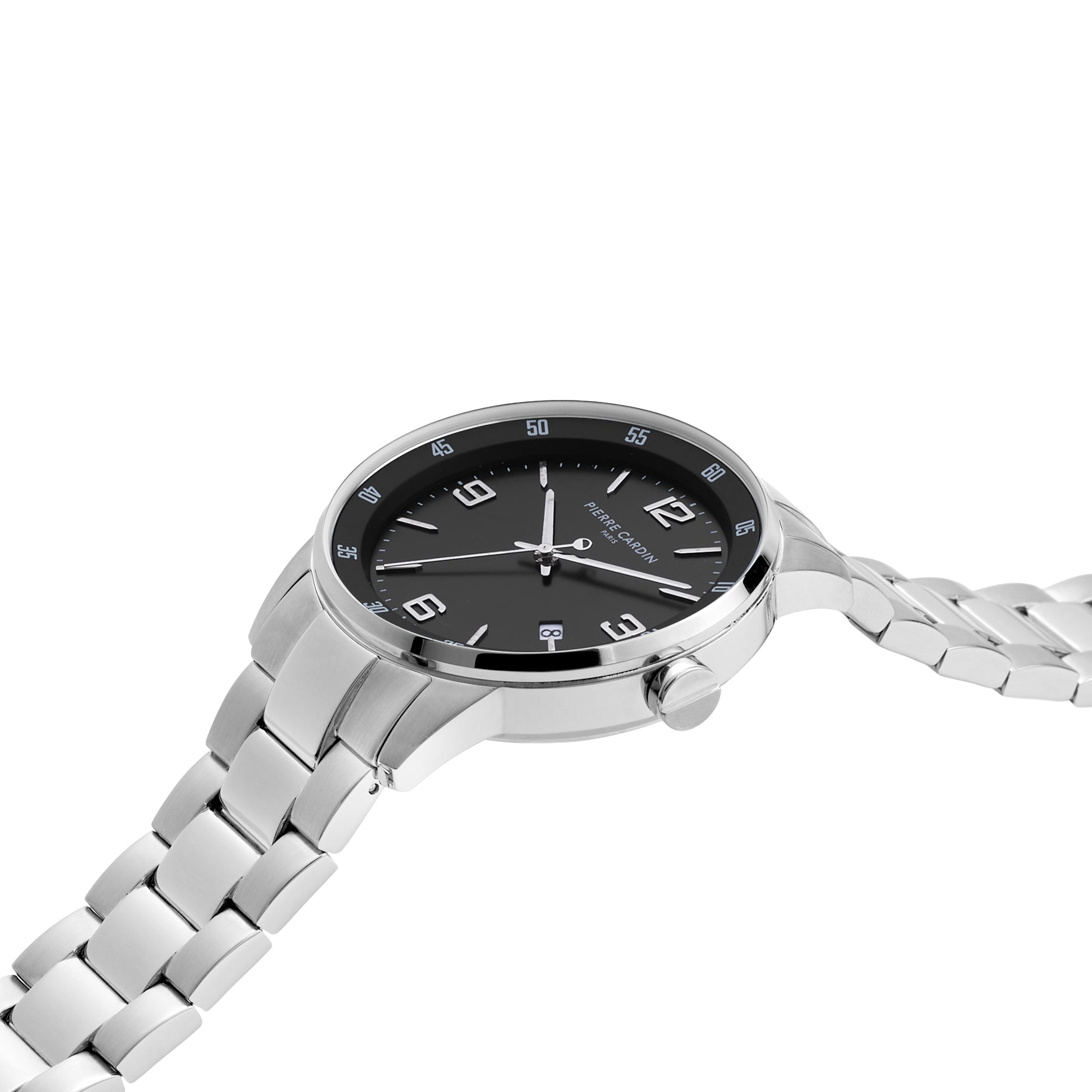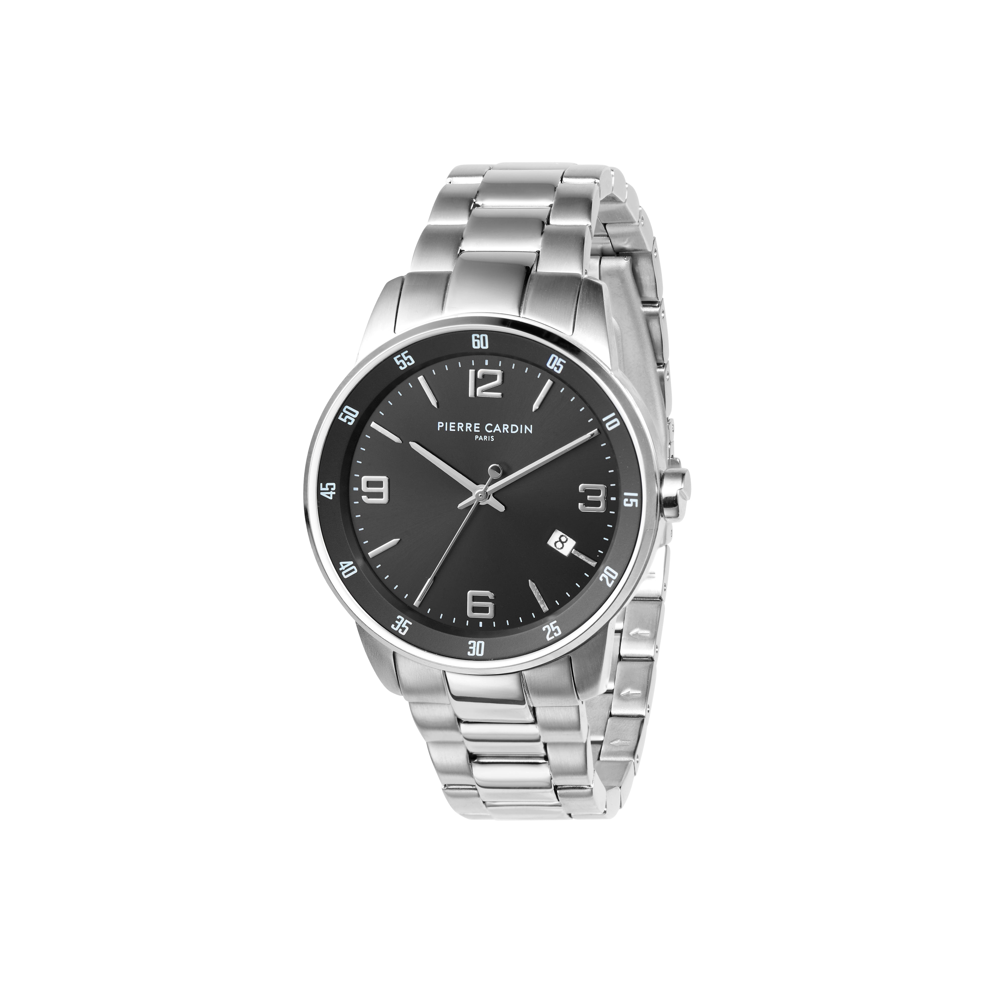 The Montrouge Opulent metal link watch for men is a statement piece that stays close to Pierre Cardin’s iconic design inspired by the cosmopolitan style of the Montrouge district. The dial features a minimal 3 hand movement with date feature, The polished Silver Stainless steel watch case offers to complement a metal links strap, a fine addition to all your outfits night or day.