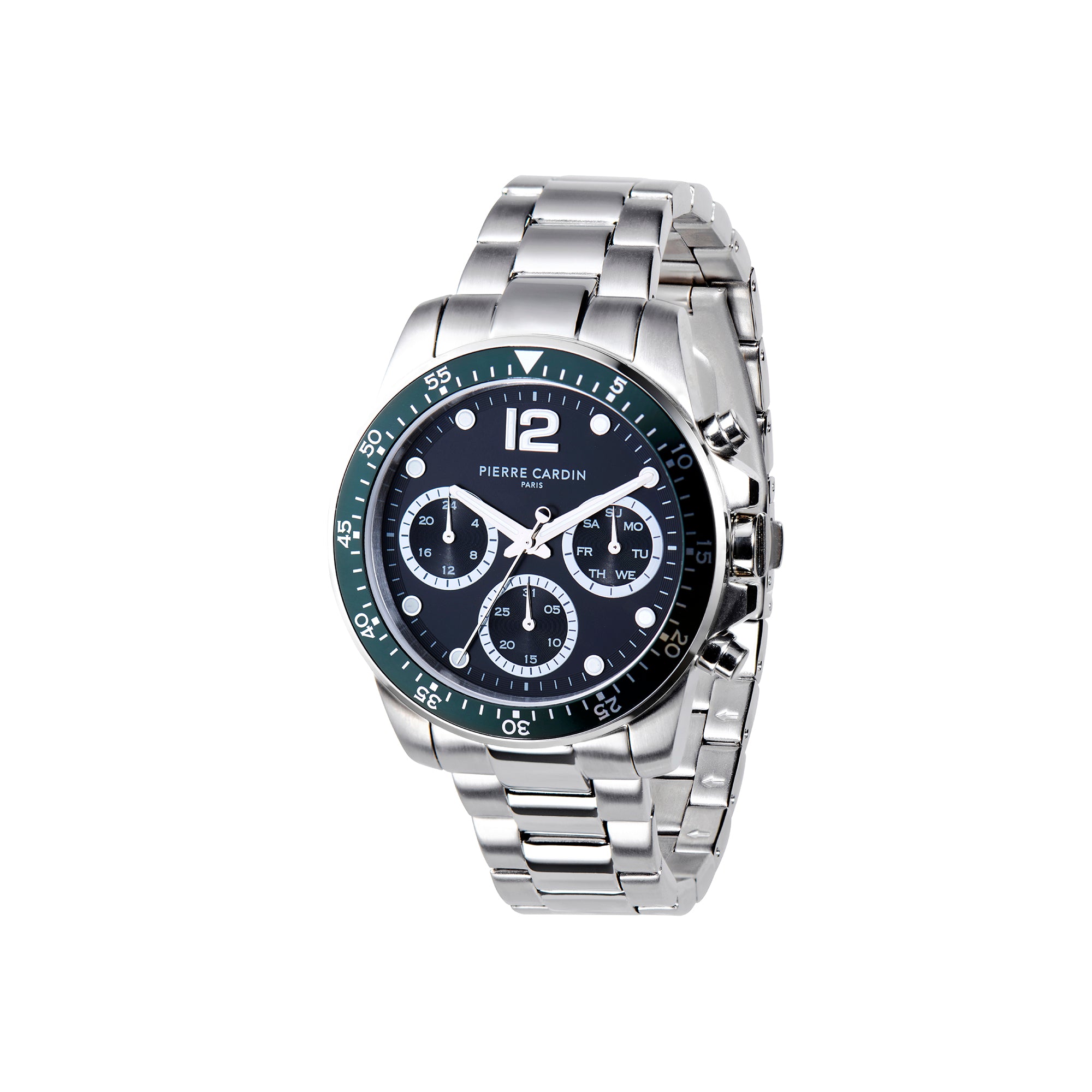 Nation Swank Multifunction watch with Black Dial and Green Bezel with a Metal Links Strap