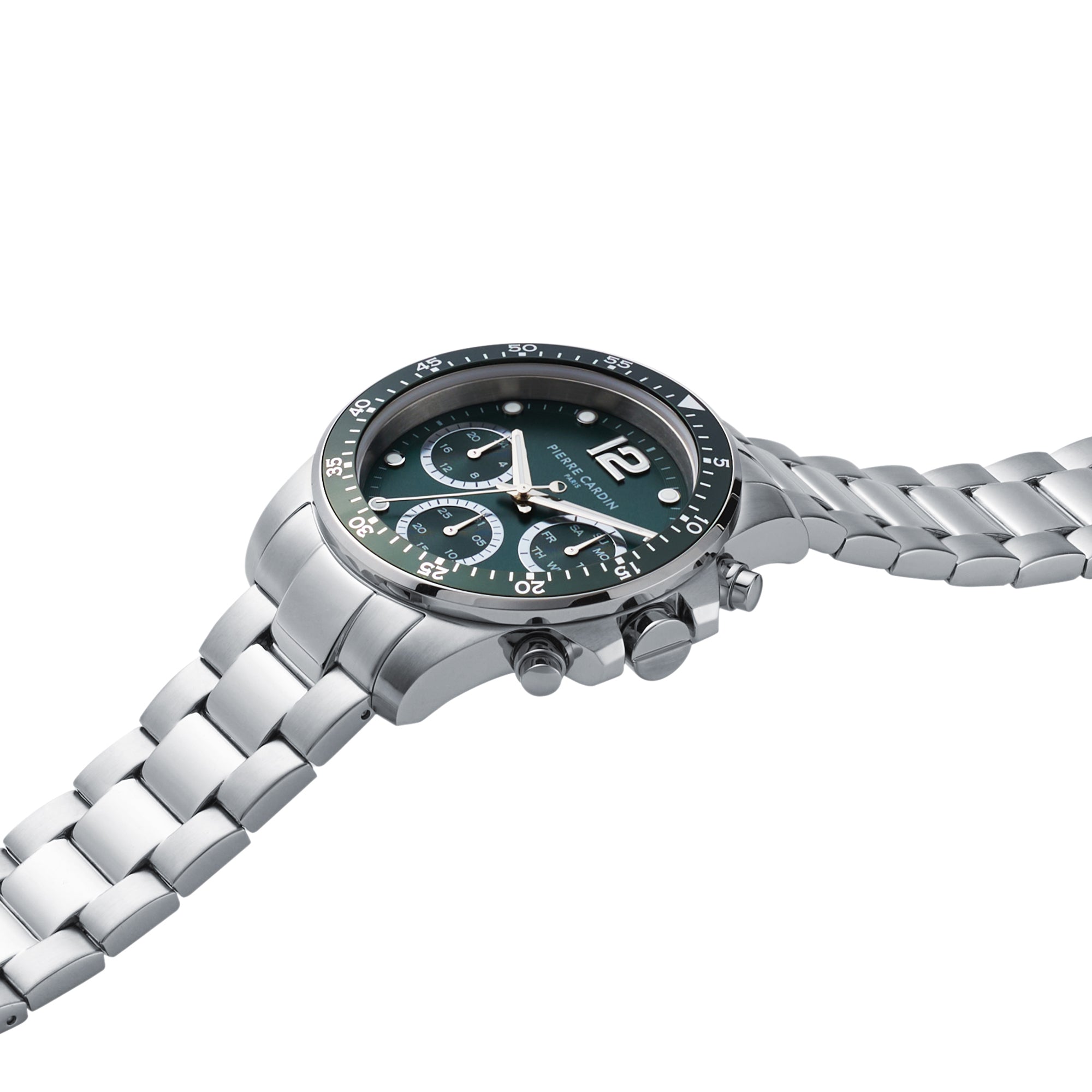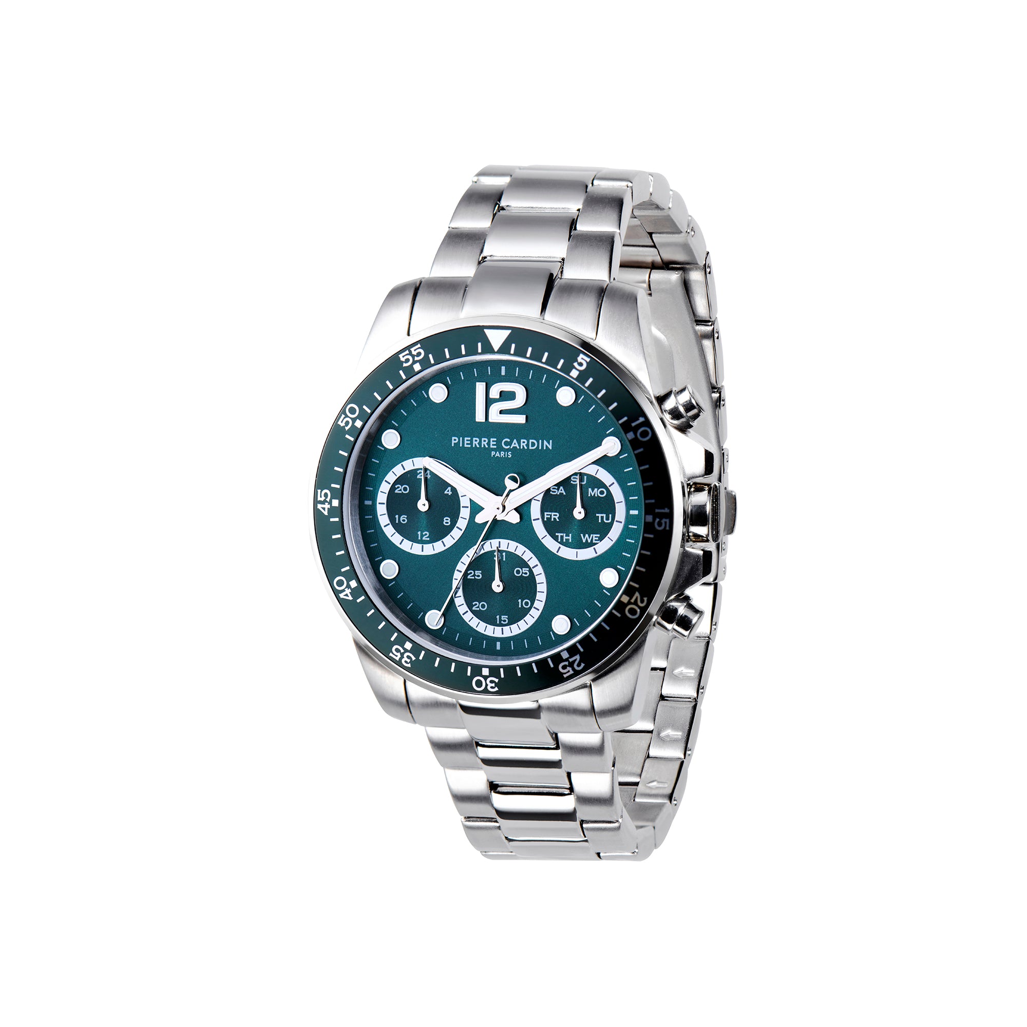 Nation Swank Multifunction watch with Green Dial and Green Bezel with a Metal Links Strap