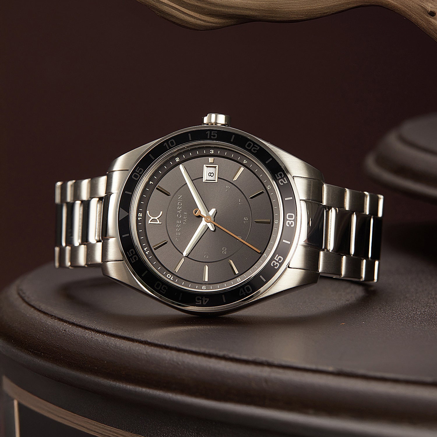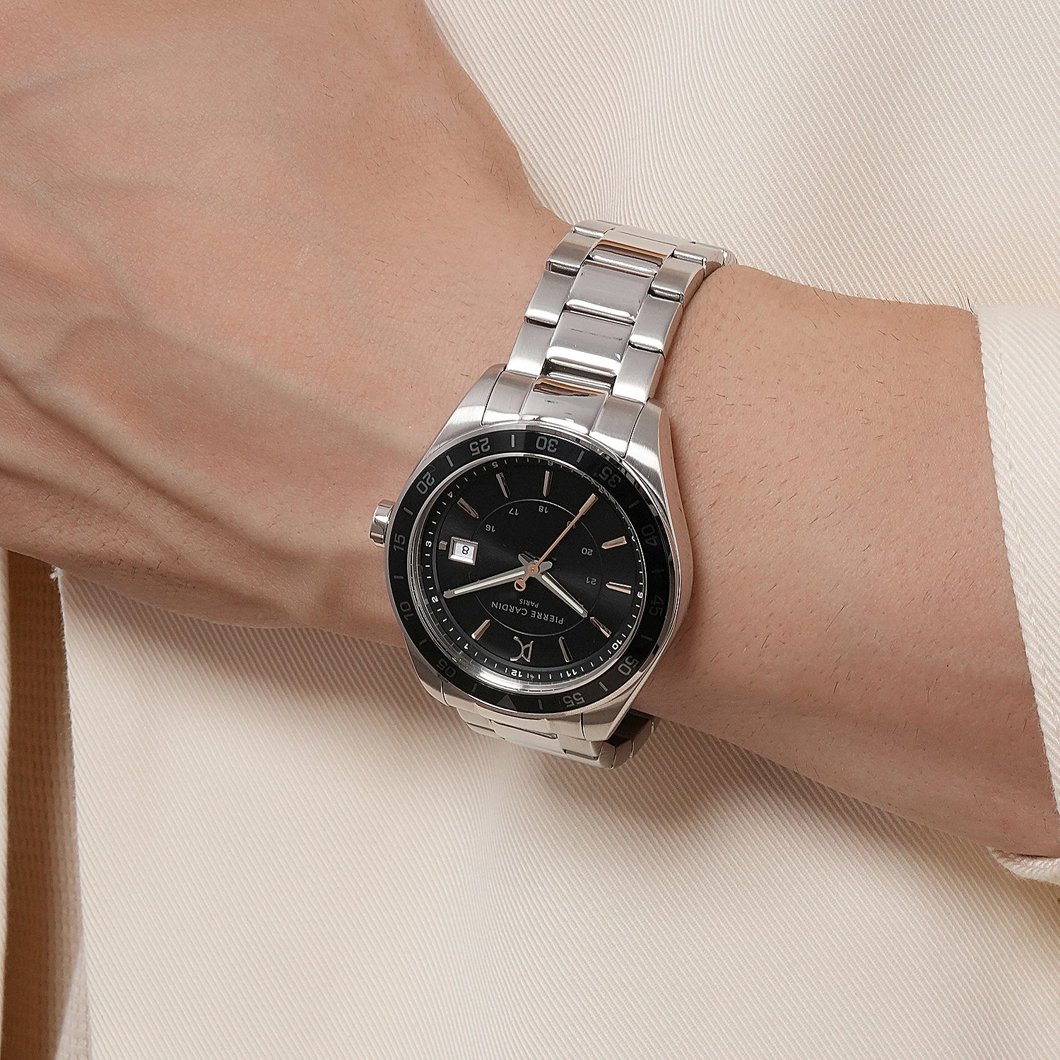 The Nation Verre men’s watch exudes a sleek and sophisticated look, featuring a 42mm silver case, bold black dial, and matching black bezel. Paired with a durable silver metal strap, this timepiece is both stylish and versatile. Powered by a precise 3-hand quartz movement with a date function, it’s designed for the modern man who values functionality and elegance. Ideal for any occasion, from active days to refined outings, the Nation Verre watch is a perfect blend of sporty appeal and timeless style.