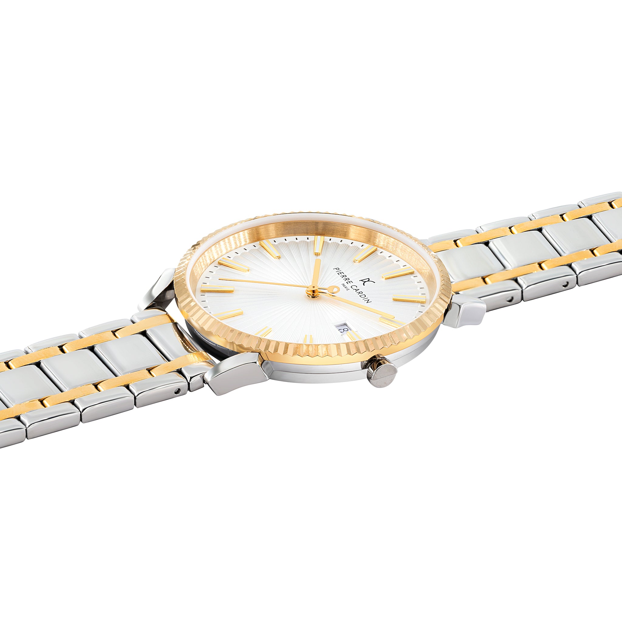 Pigalle Two Tone Metal Link Watch in Gold and Silver with Fluted Bezel and Silver Dial