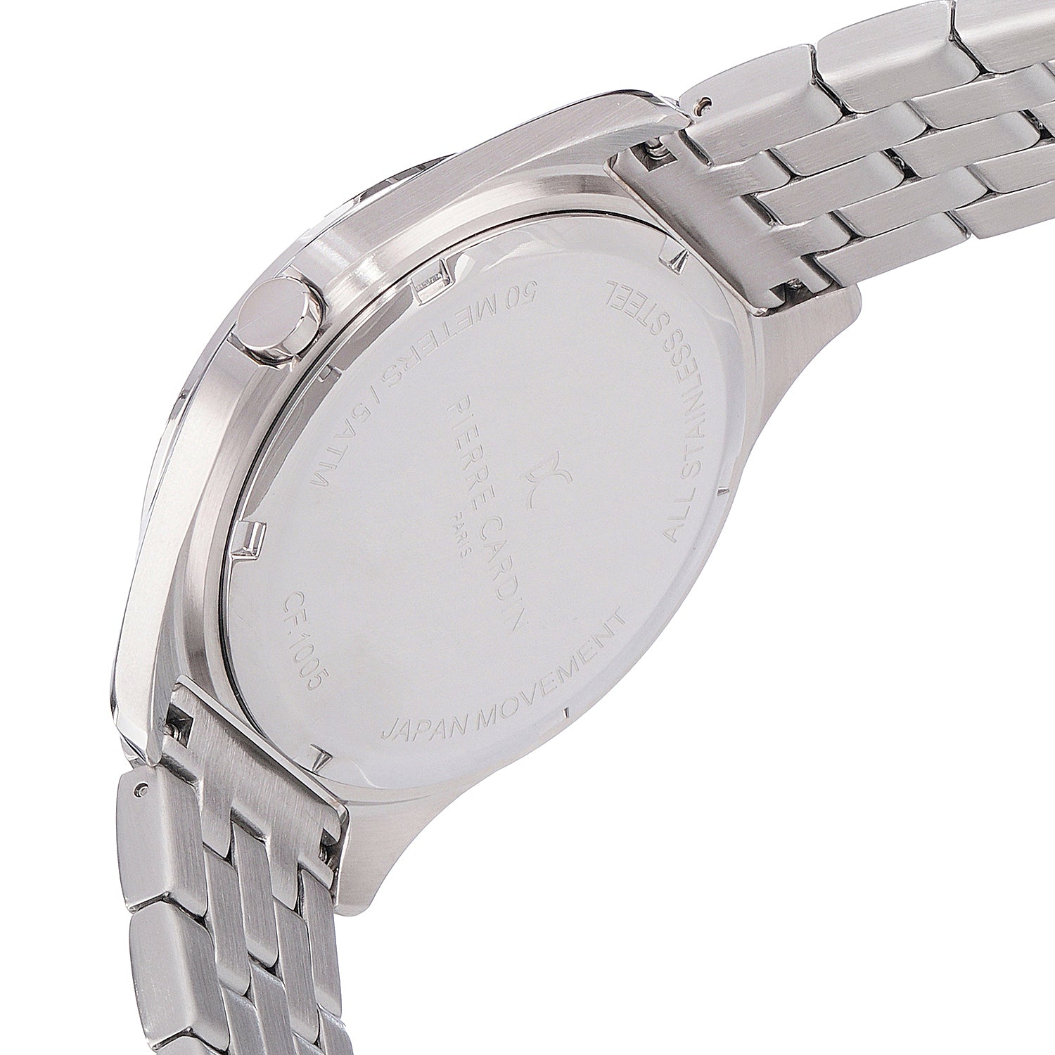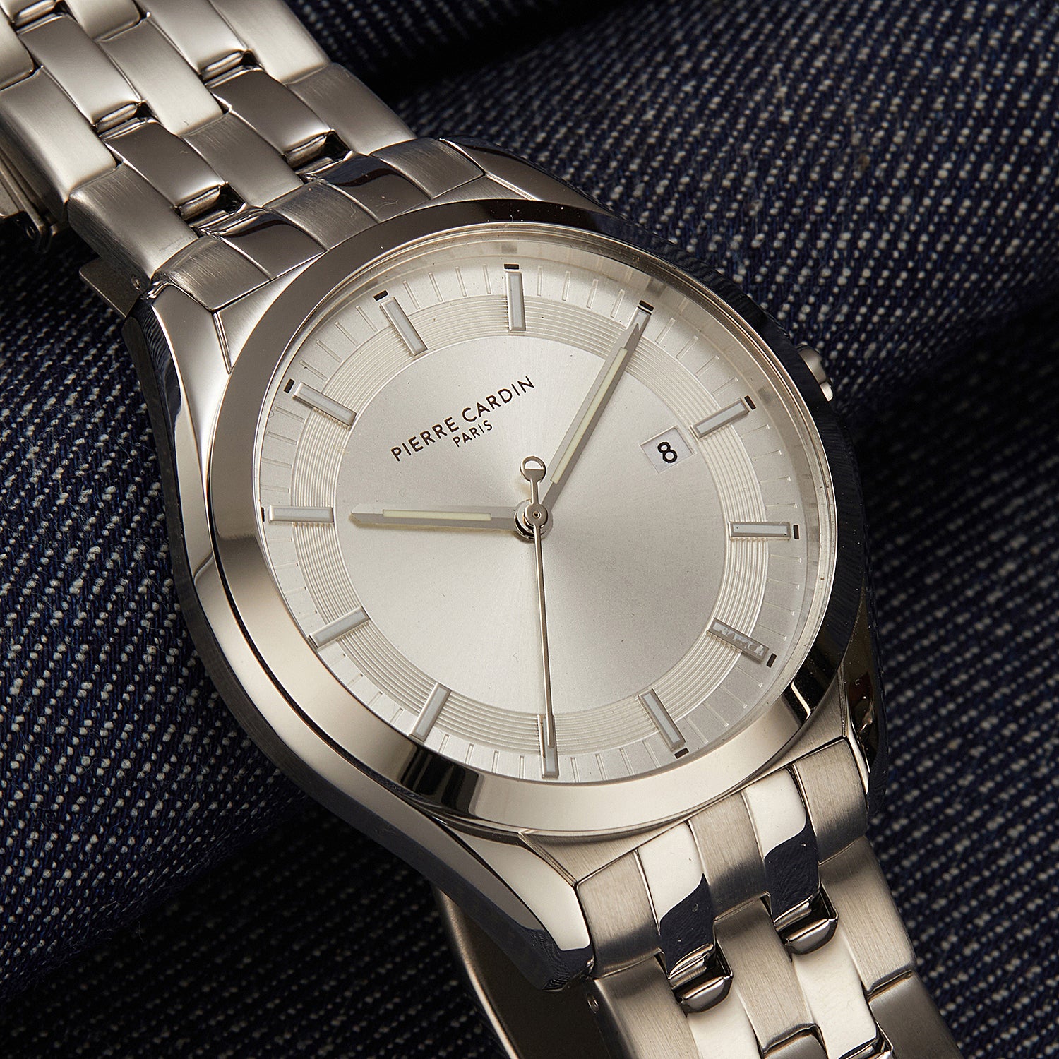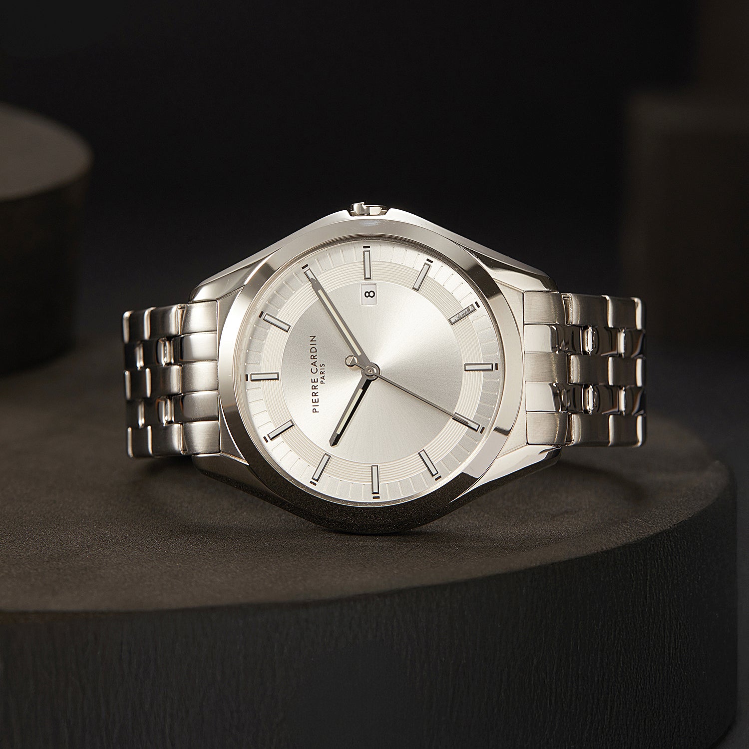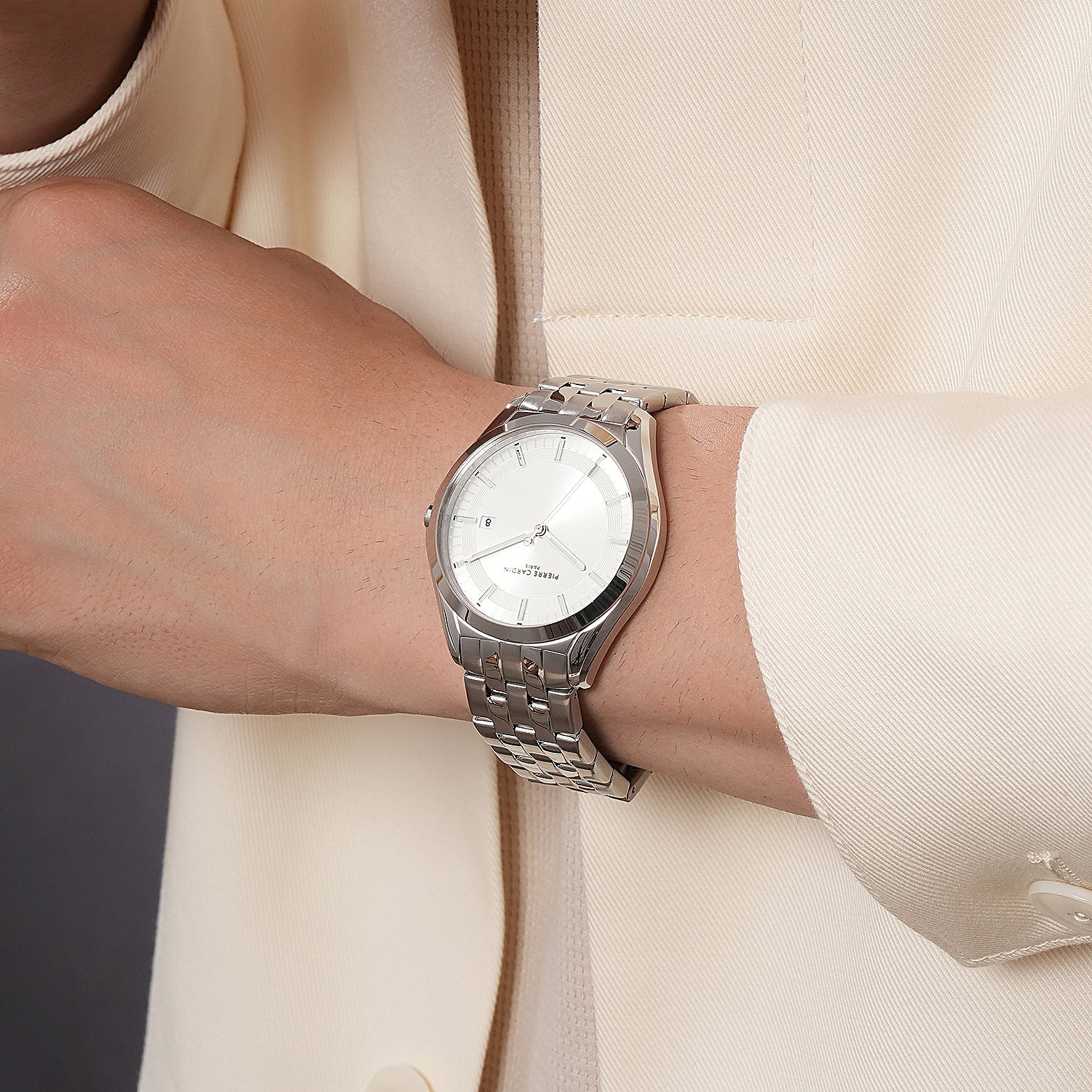 The Vaugirard Aréne men’s watch by Pierre Cardin is a perfect example of minimalist elegance, featuring a polished 42mm silver case, matching silver dial, and sleek silver metal strap. This timepiece is designed for the modern gentleman who appreciates refined, understated style. With its monochromatic look and timeless appeal, the Vaugirard Aréne watch adds a touch of sophistication to any outfit, making it a versatile choice for both formal and casual occasions. Crafted with precision, this watch reflects Pierre Cardin’s dedication to quality and classic design.