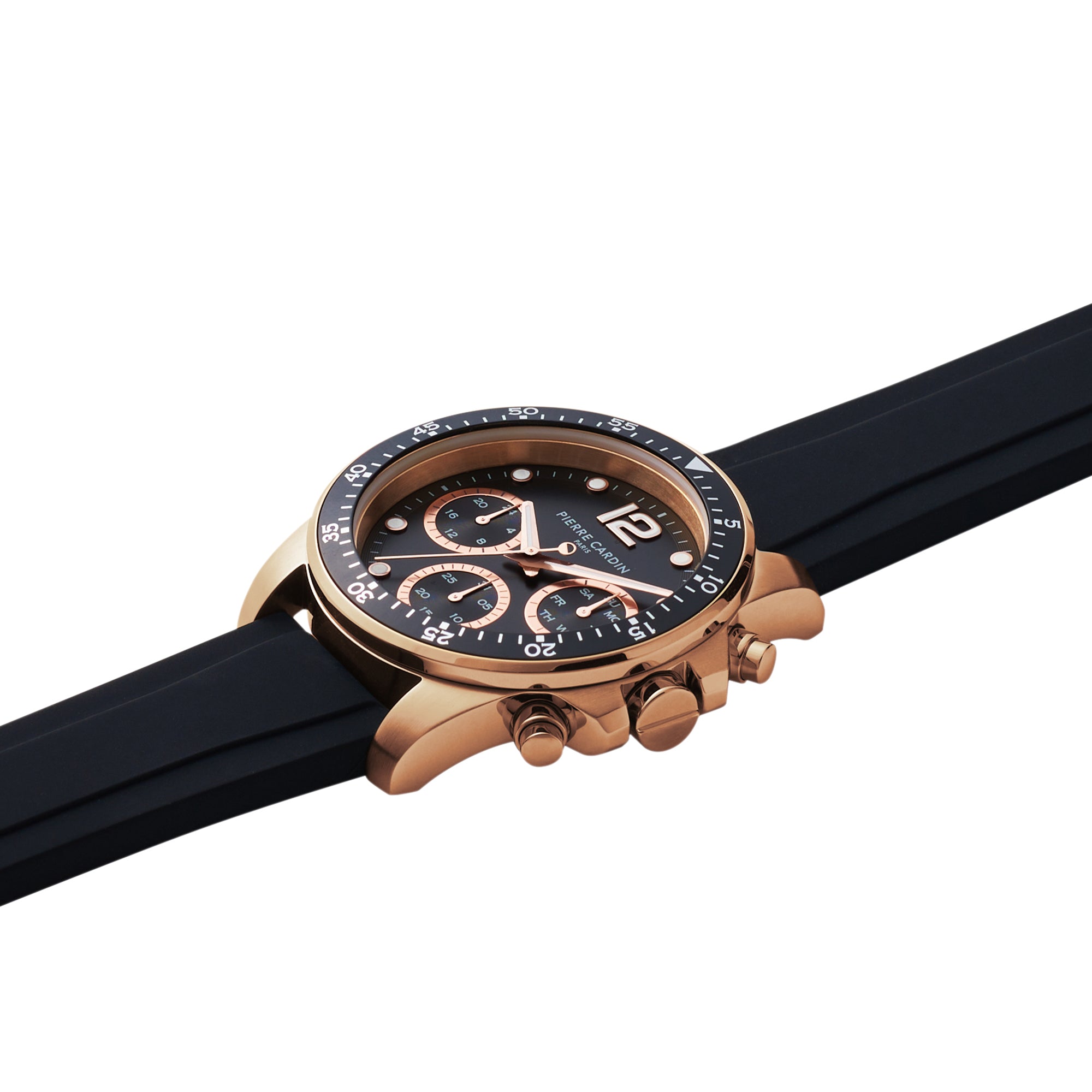 Nation Swank Multifunction Rose Gold watch with Black Dial with Black Bezel with a Rubber Strap