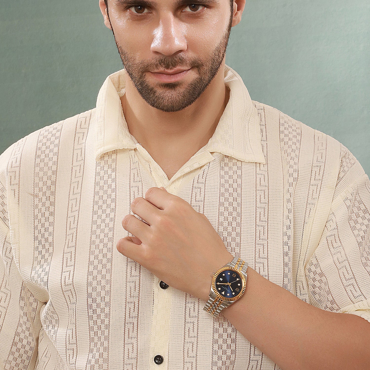 Opéra Timbre Men’s Watch - Two-Tone Gold & Silver Case, Blue Dial with Gold Markers and Stainless Steel Jubilee Strap