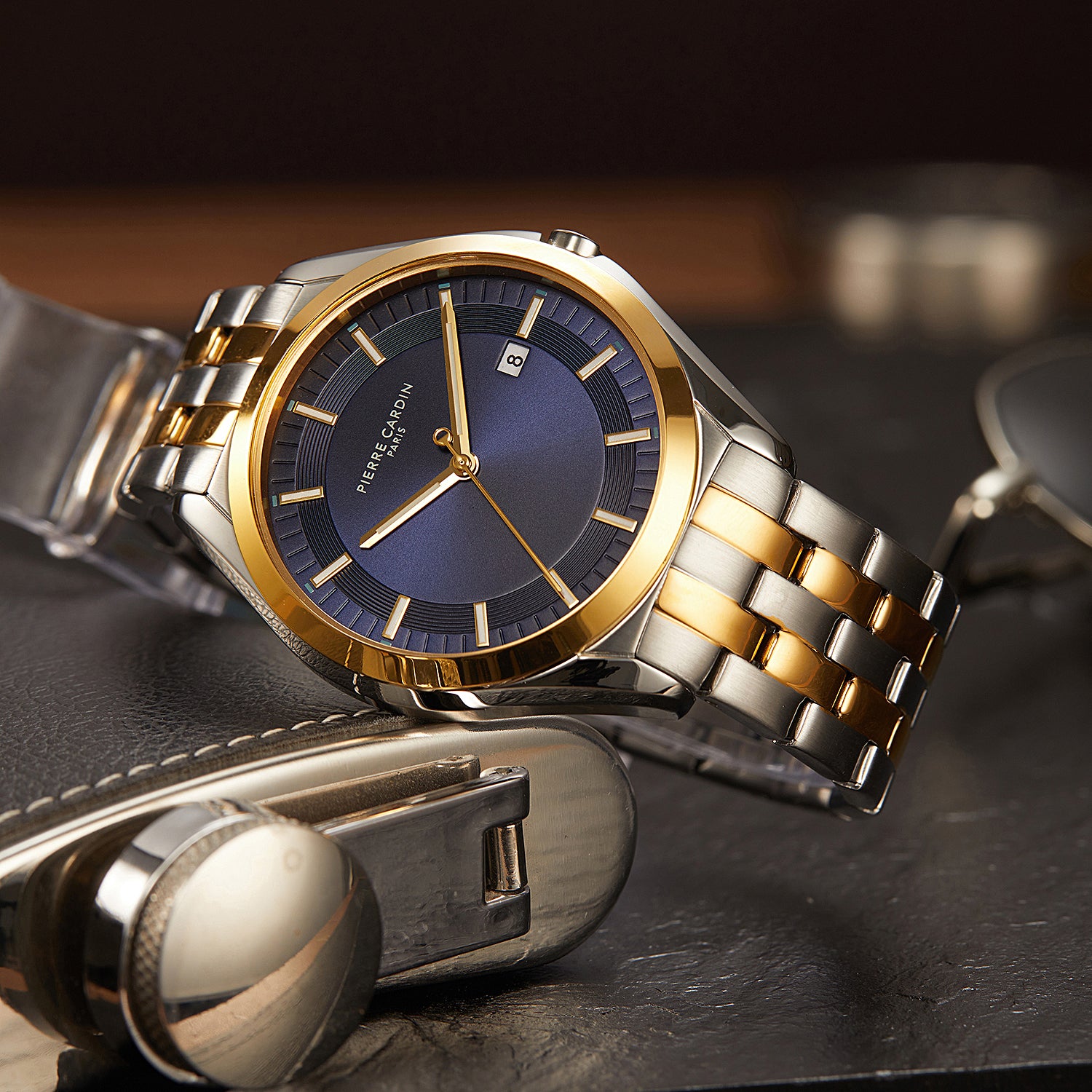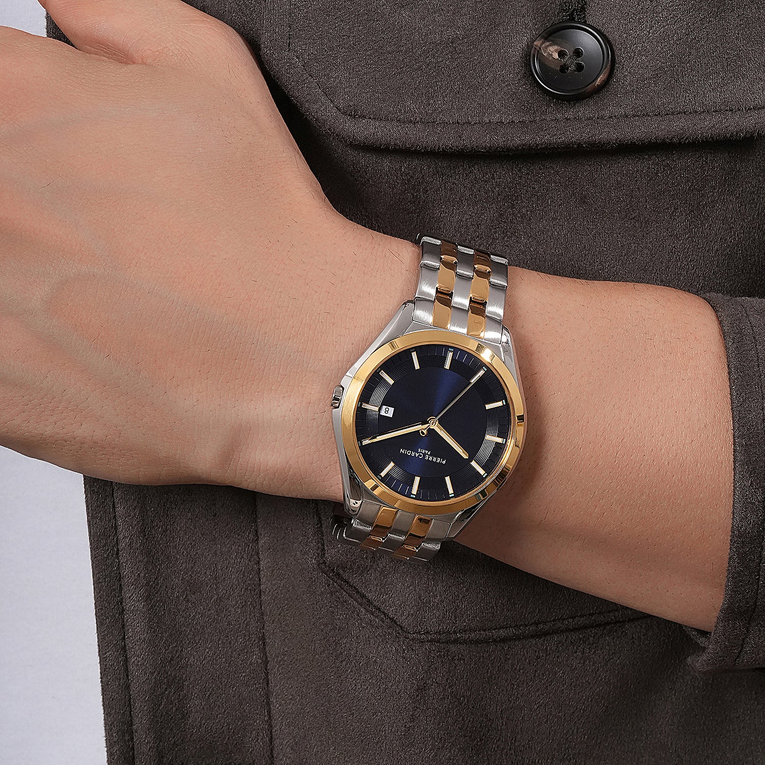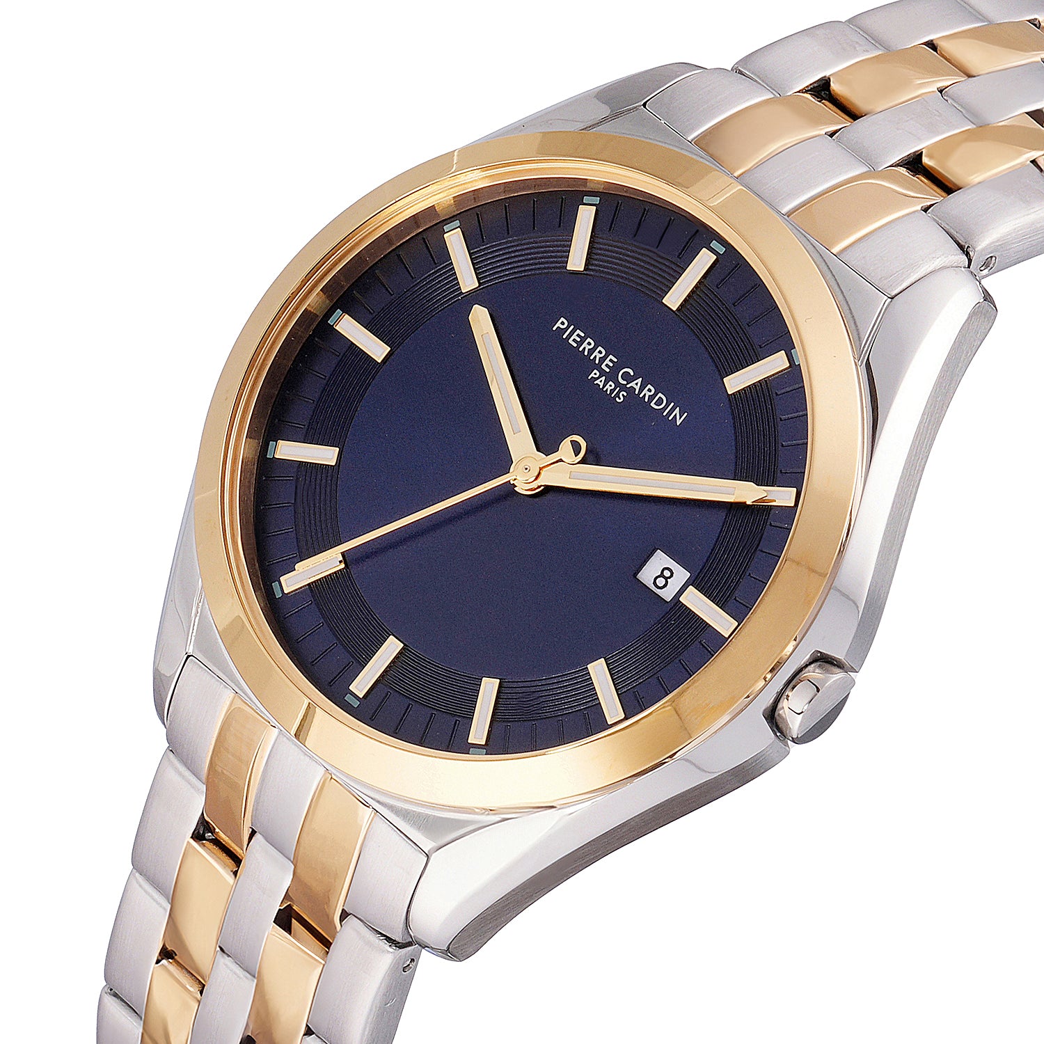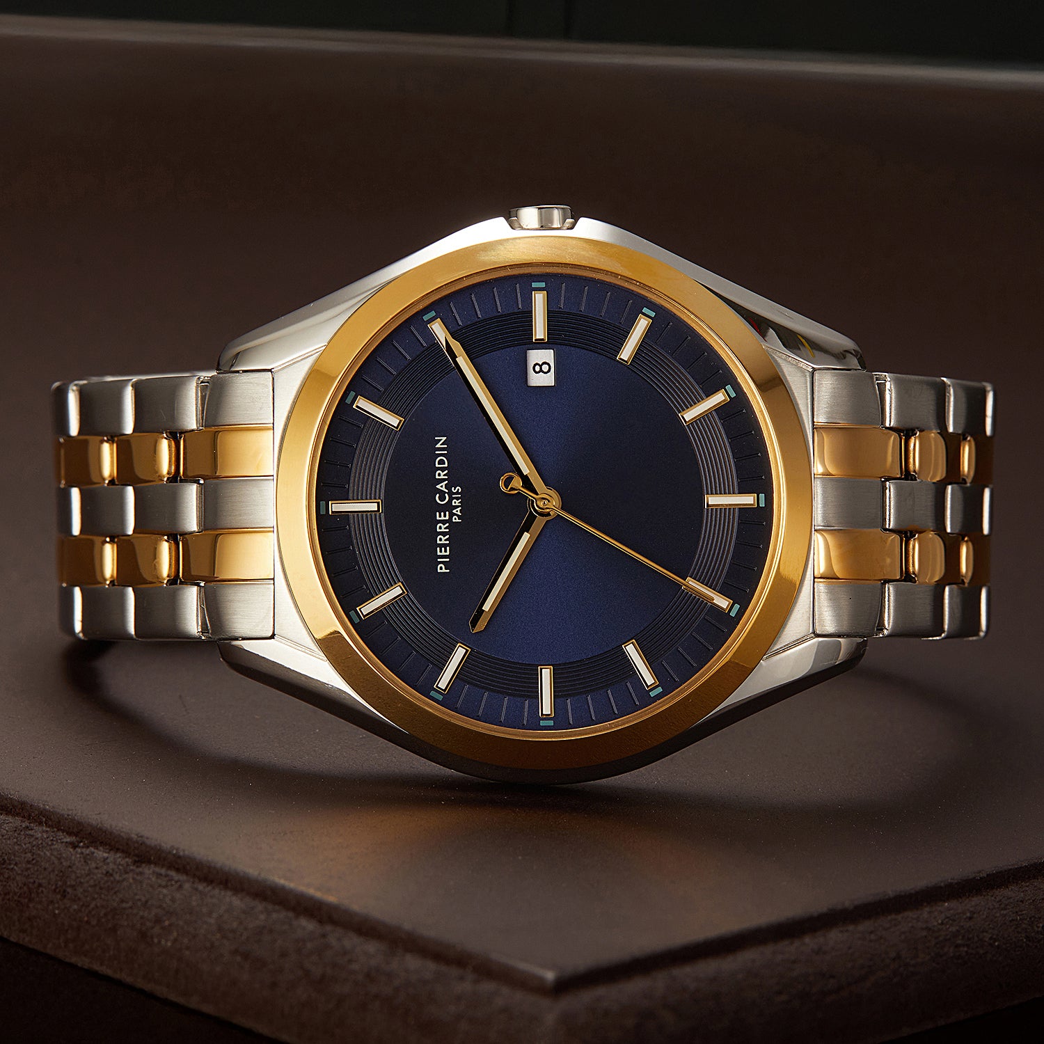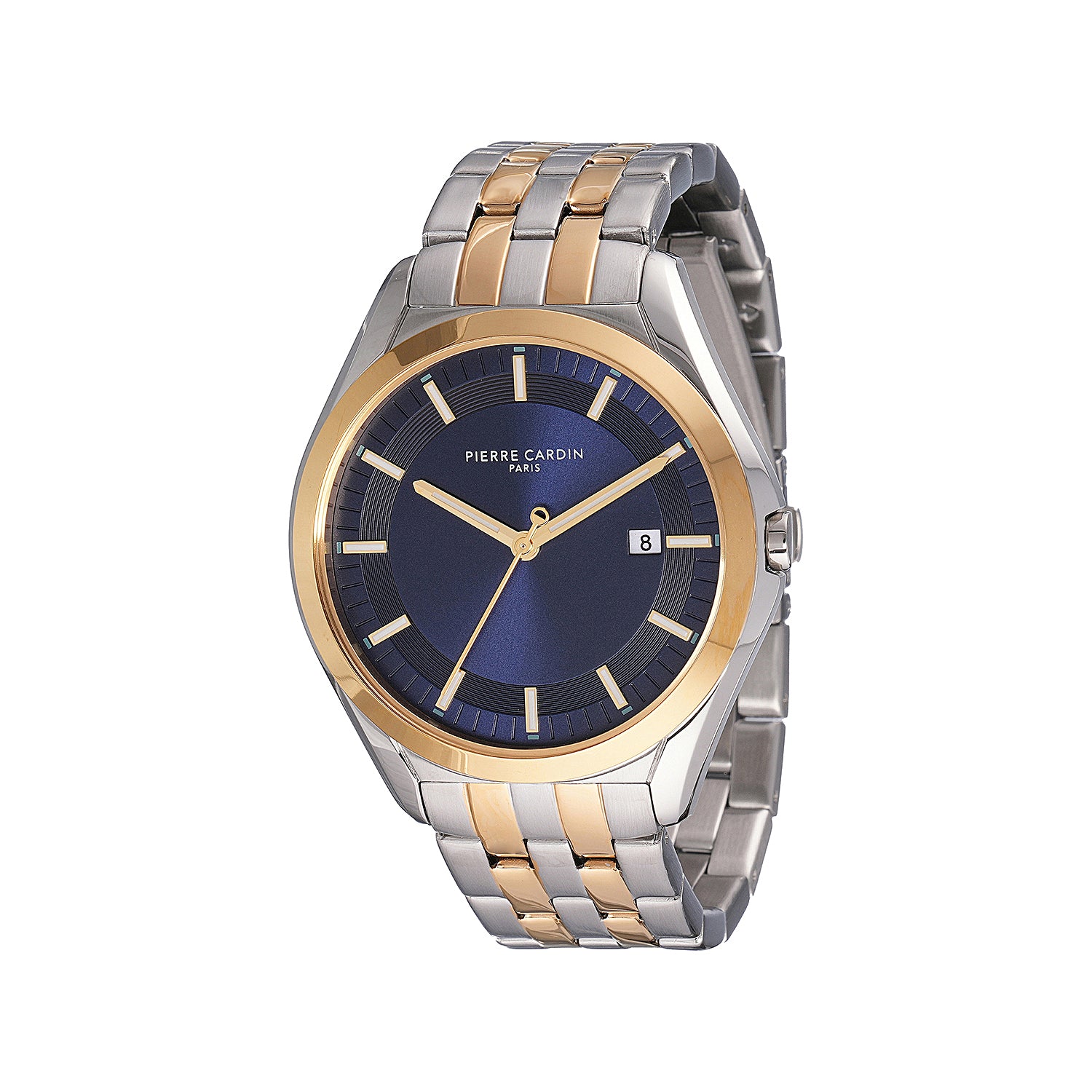 The Vaugirard Aréne men’s watch by Pierre Cardin combines elegance with contemporary style, featuring a striking two-tone case in gold and silver with a rich blue dial. Paired with a polished silver metal strap, this 42mm timepiece is designed to make a statement while maintaining a timeless appeal. Ideal for the modern gentleman, the Vaugirard Aréne watch showcases quality craftsmanship and sophisticated design, making it the perfect accessory for both formal and casual occasions.