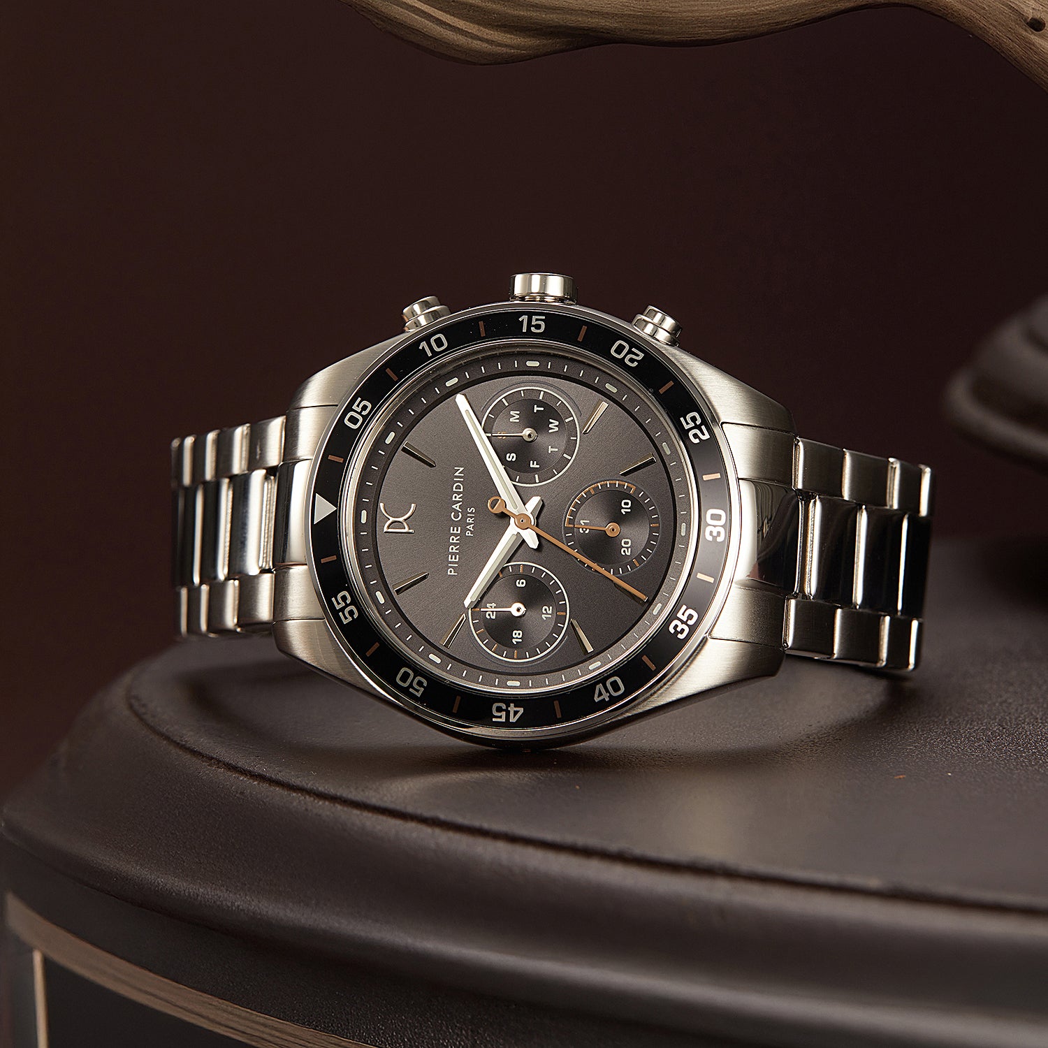 The Nation Cristal men’s watch exudes a refined, modern style, featuring a 42mm silver case, sleek black dial, and bold black bezel. Paired with a durable silver metal strap, this timepiece is as versatile as it is stylish. Equipped with a multifunction movement, it includes day, date, and 24-hour sub-dials, making it both functional and fashionable. Perfect for the discerning gentleman, the Nation Cristal watch combines quality craftsmanship with a timeless design that suits any occasion.